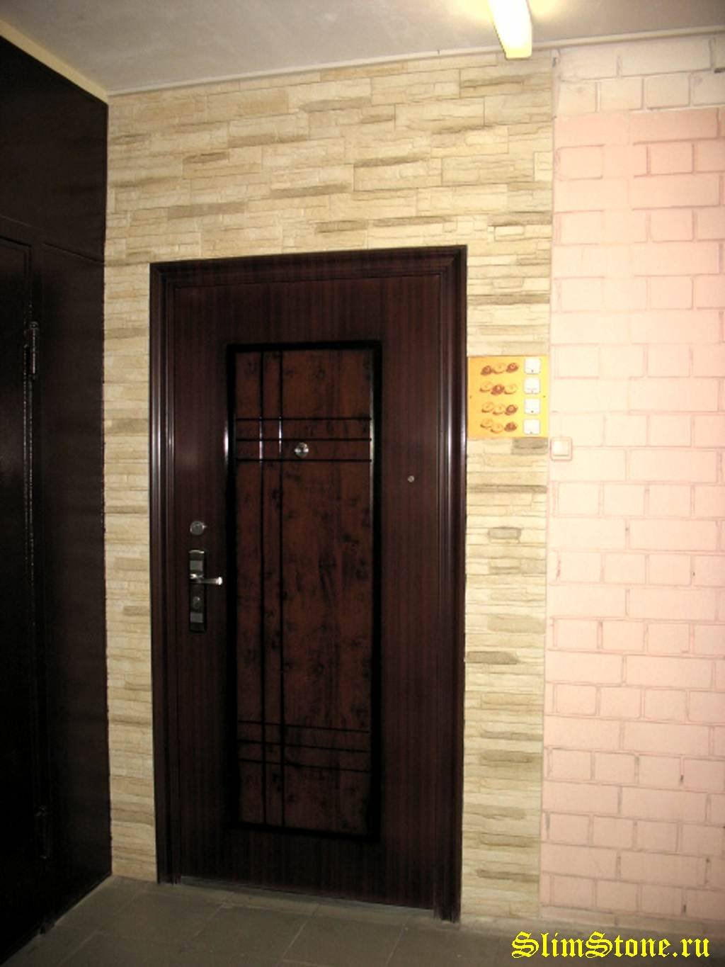 Отделка входной двери камнем