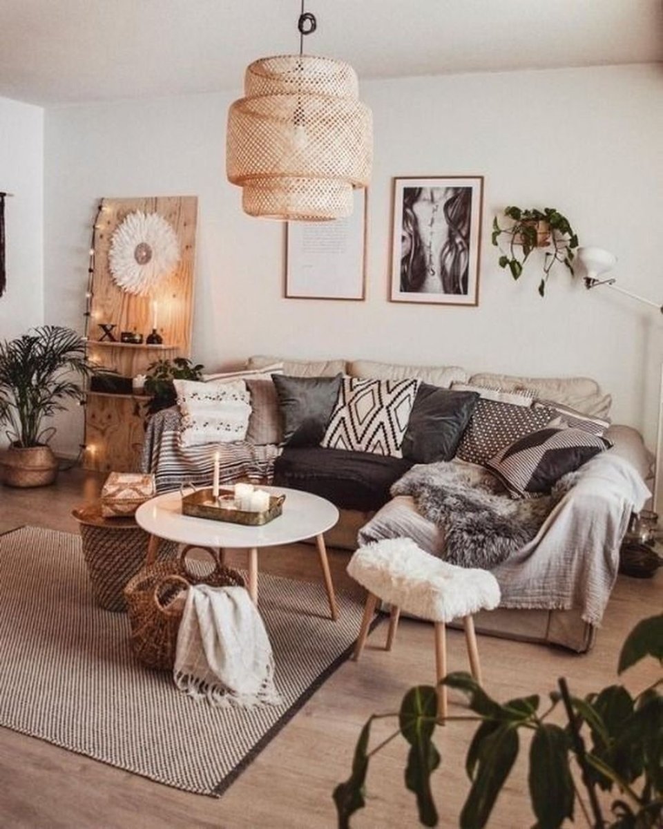 Сканди бохо интерьер гостиной