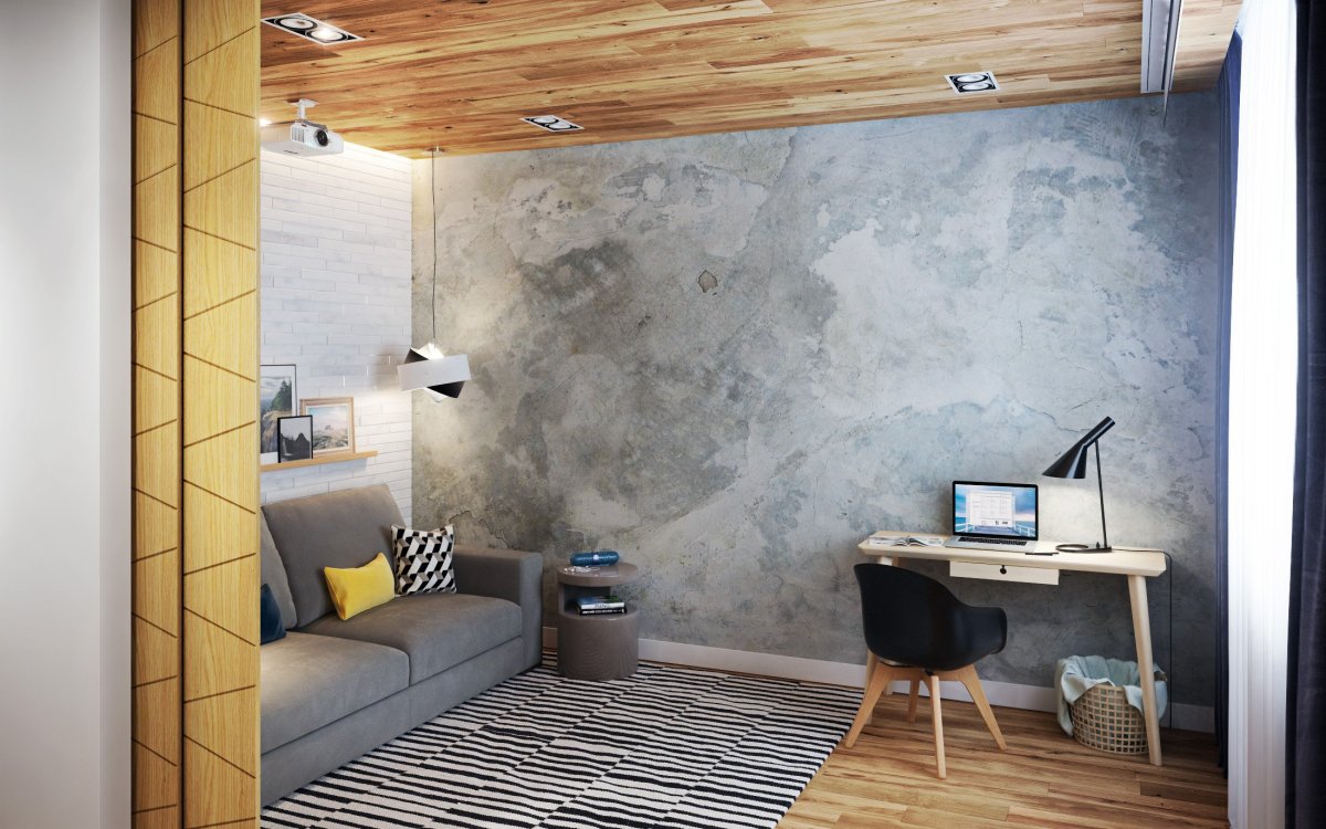 Бетон и дерево в интерьере