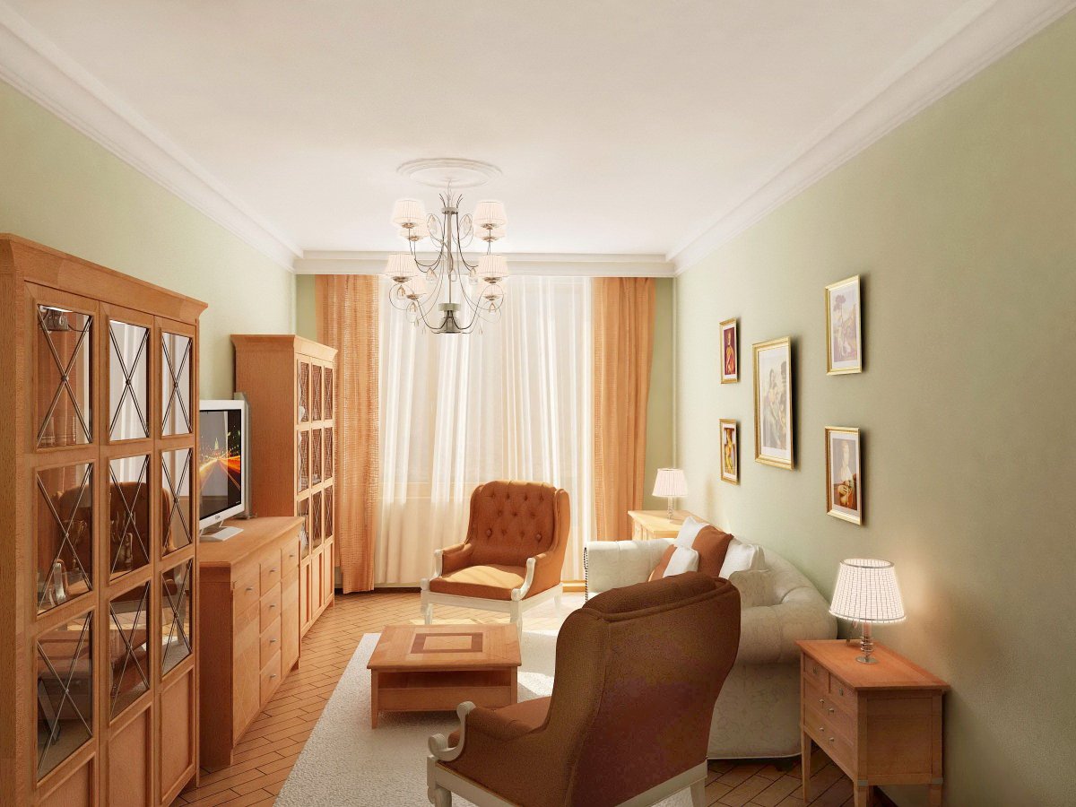 Интерьер узкой комнаты