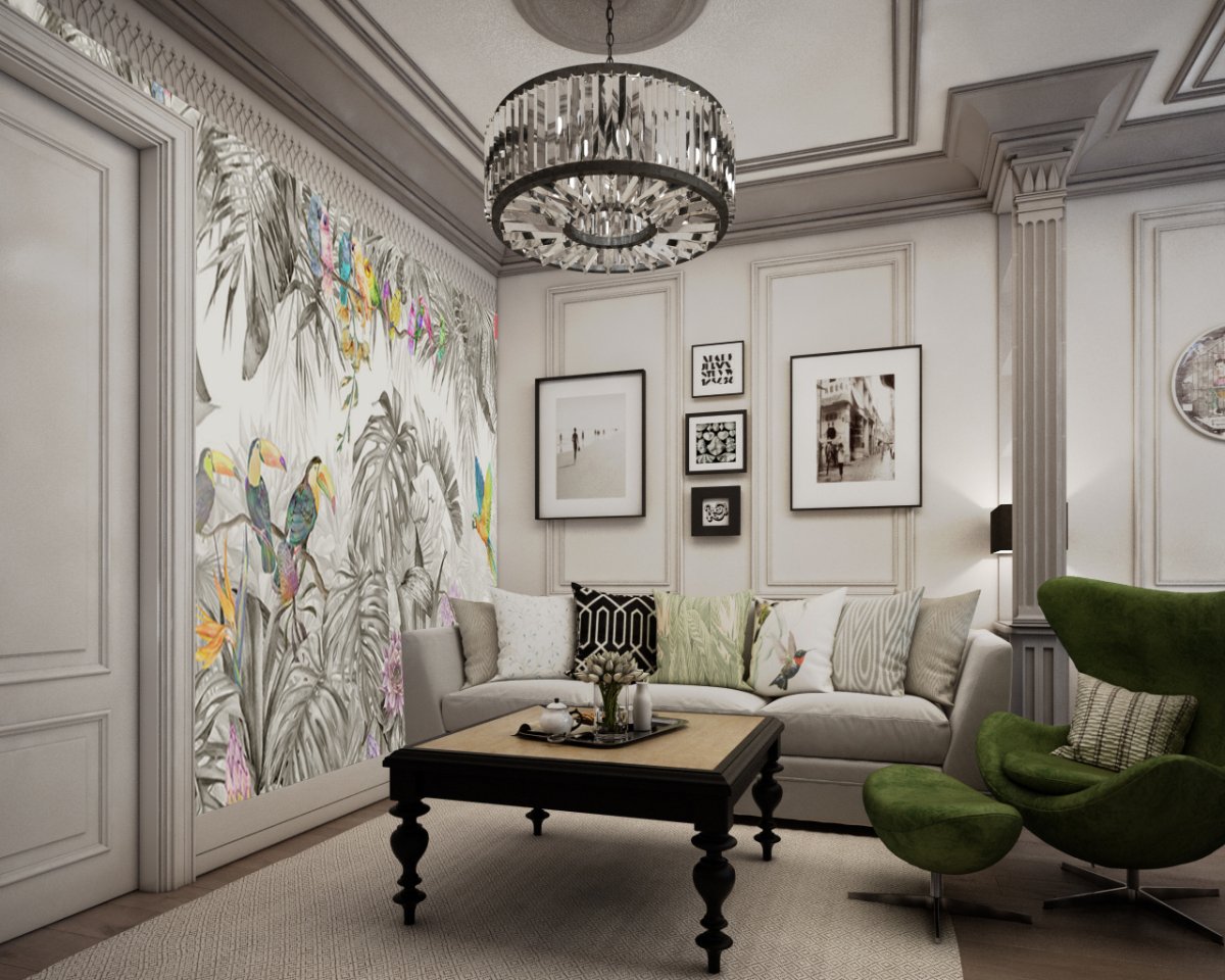 Линкруста в интерьере гостиной в стиле Неоклассика