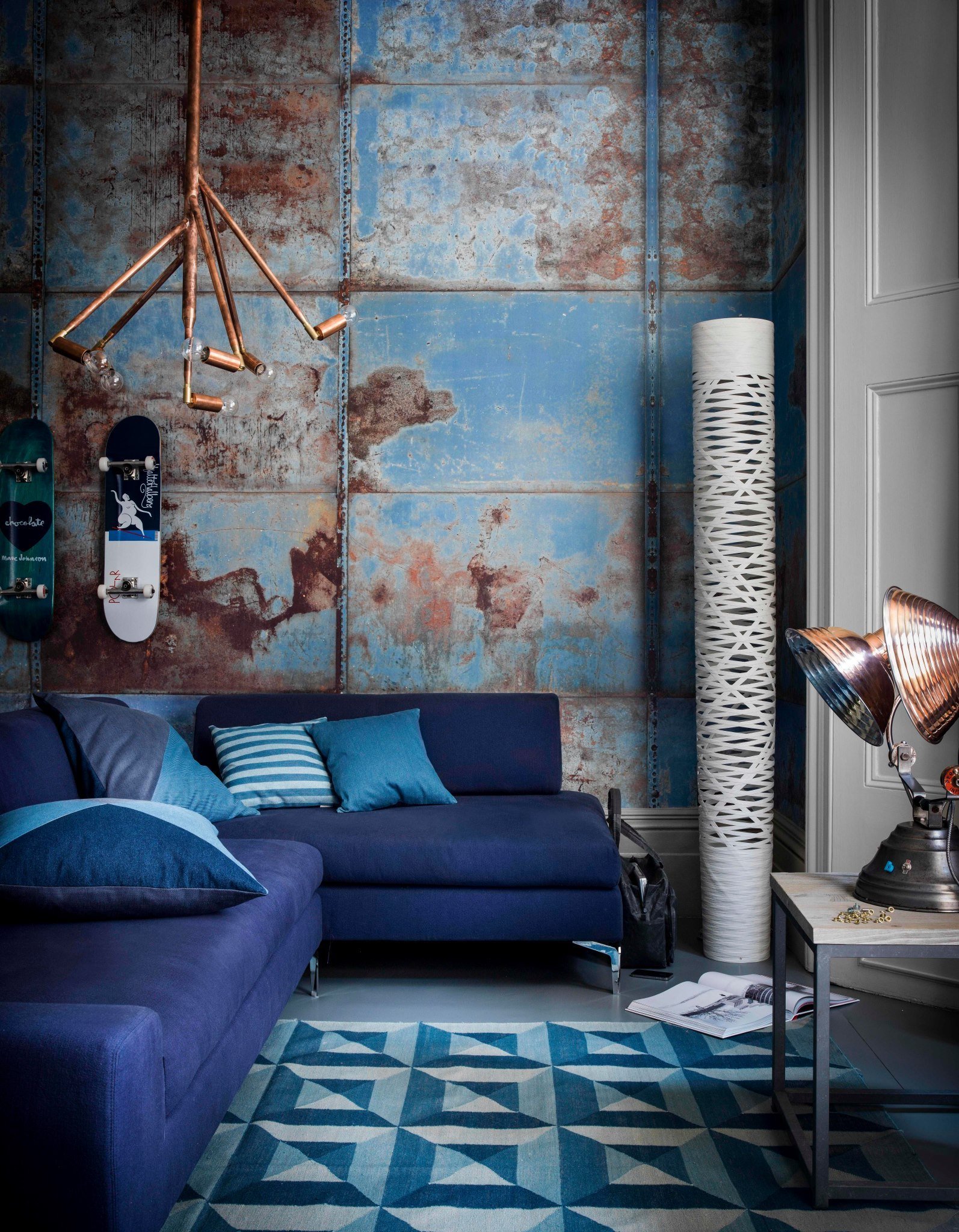Синий цвет в интерьере лофт