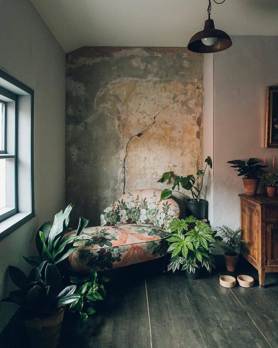 Обшарпанные стены в интерьере