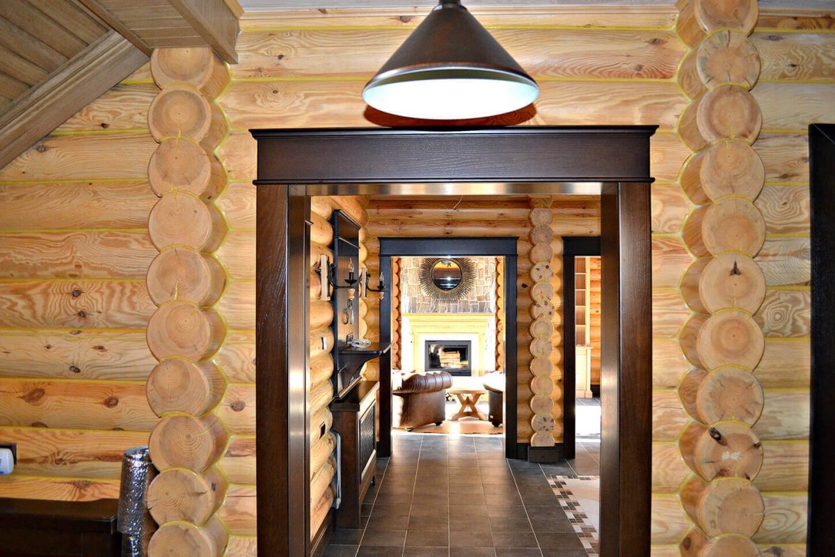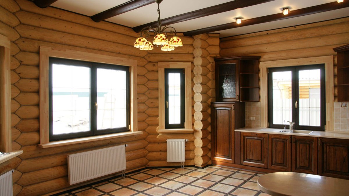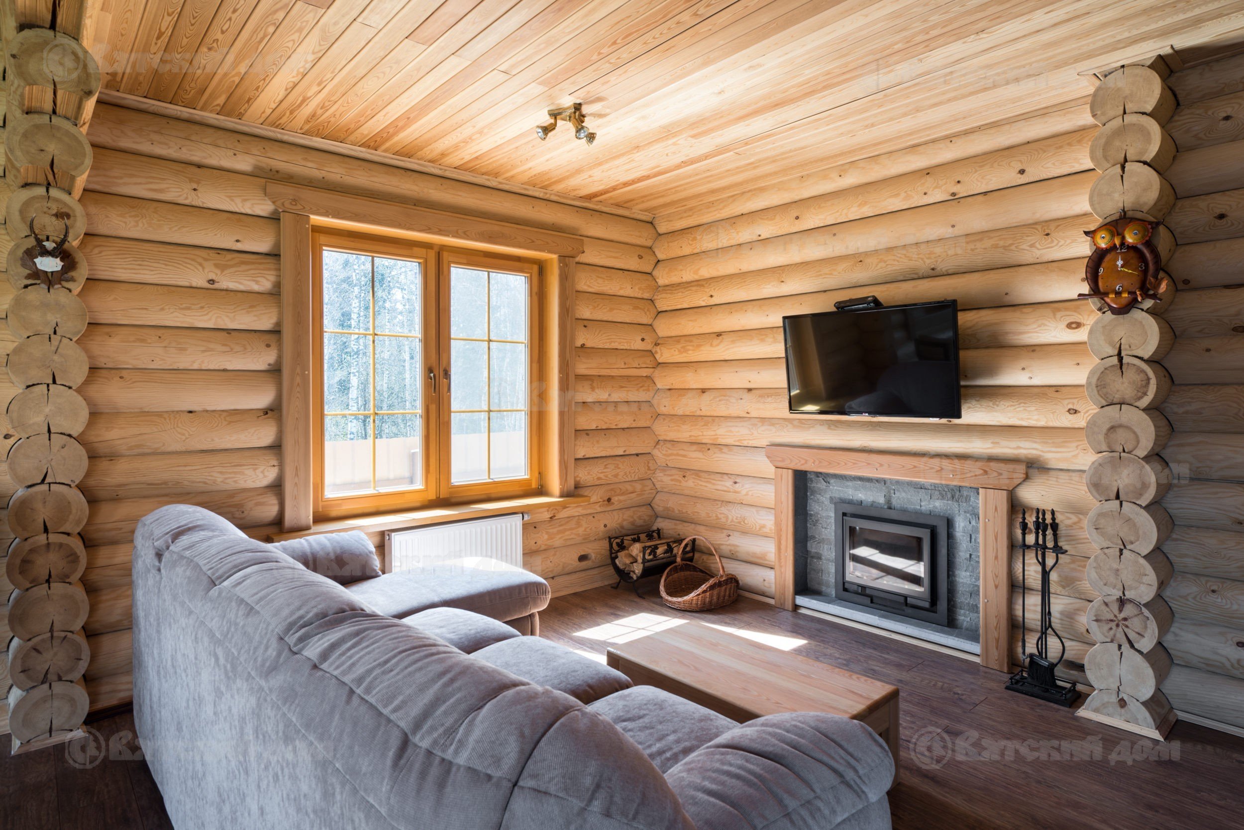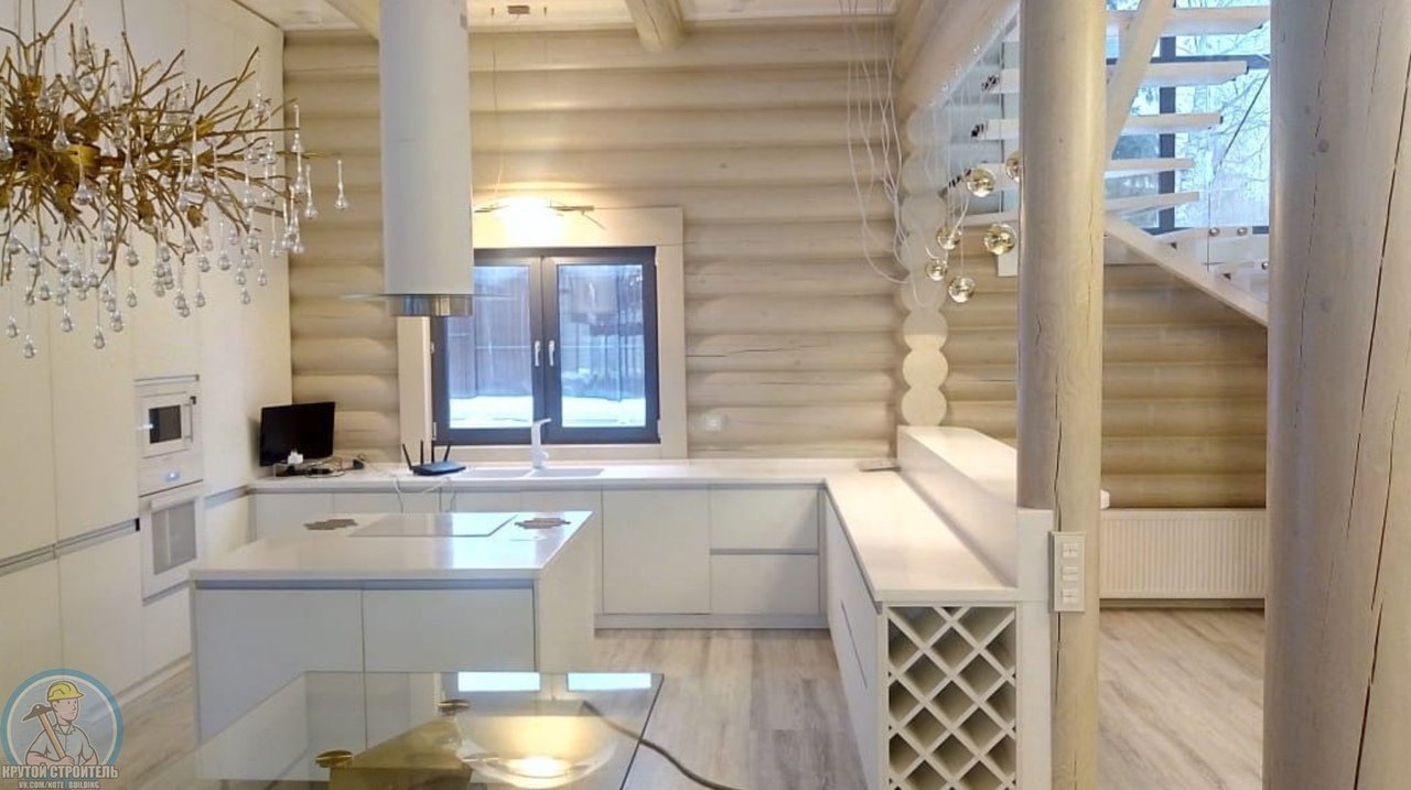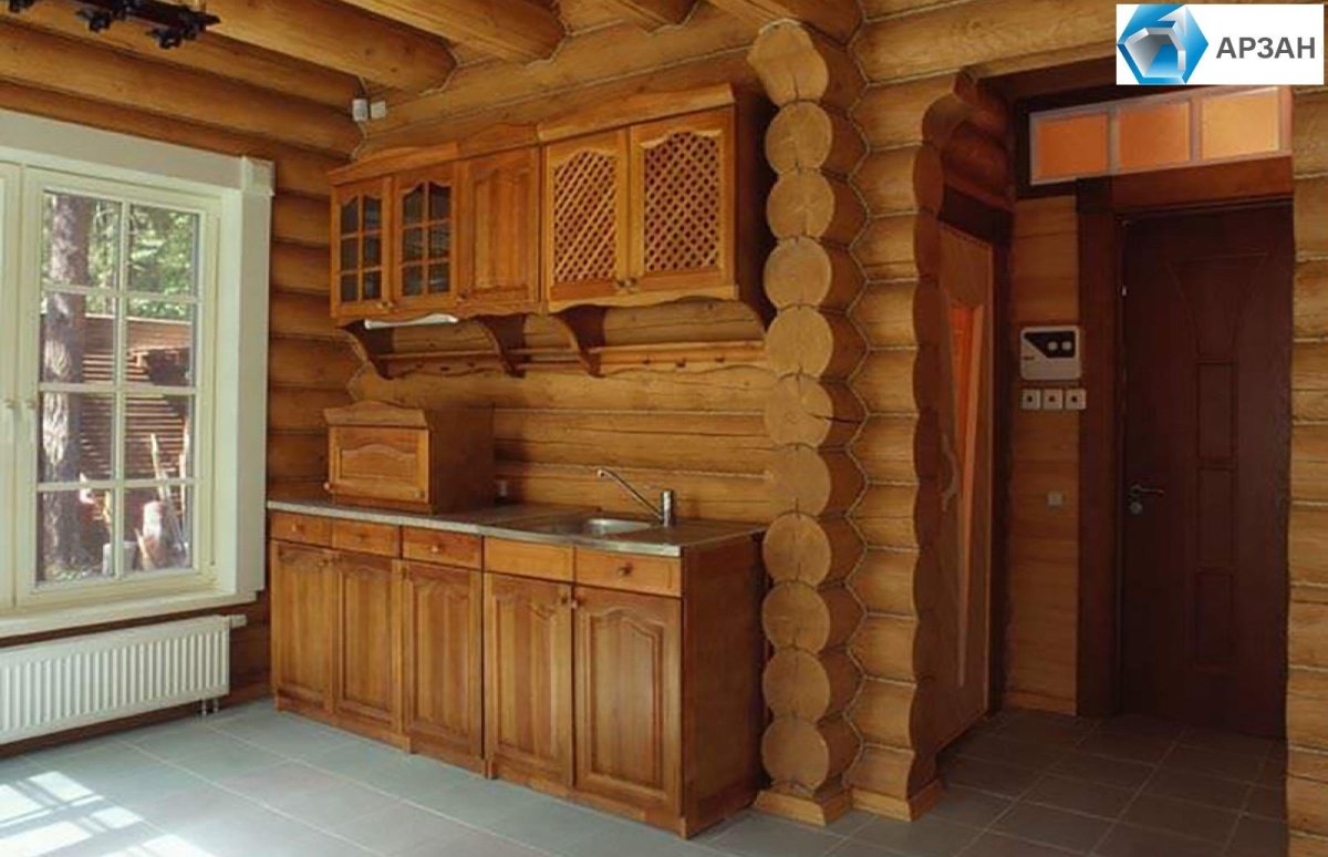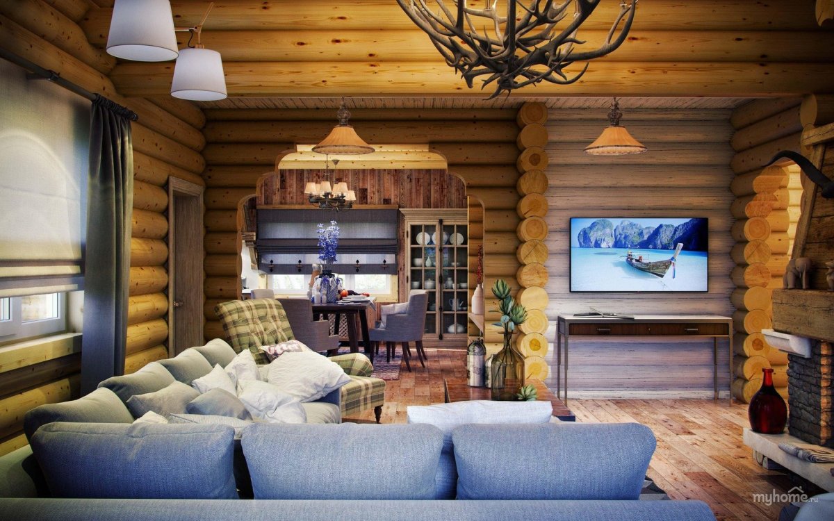 Дом из оцилиндрованного бревна интерьер кухня гостиная