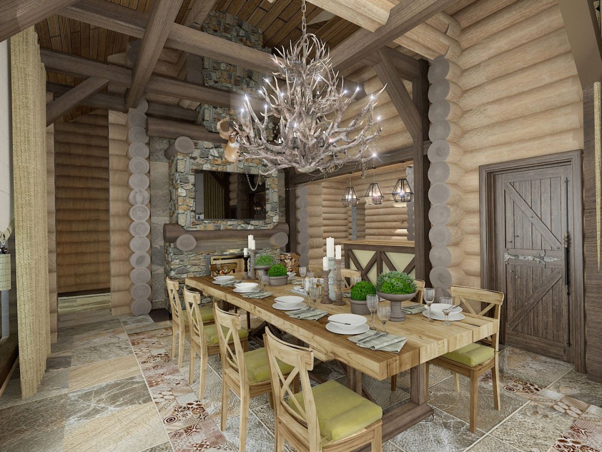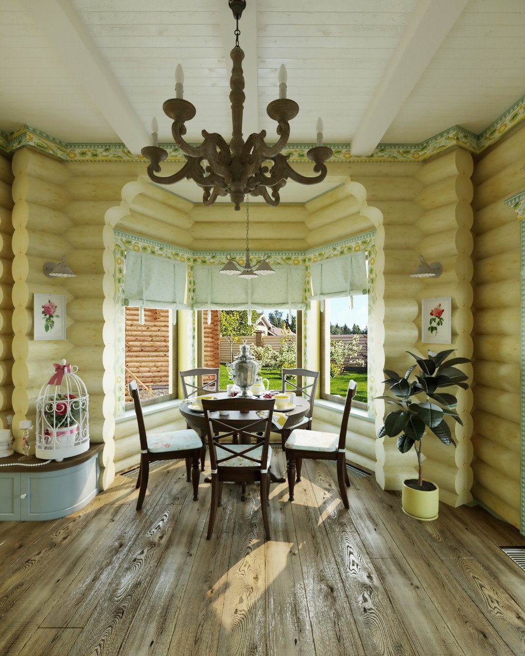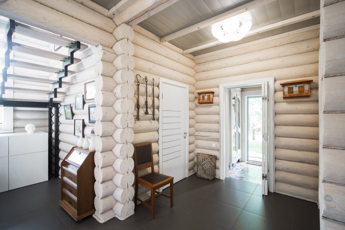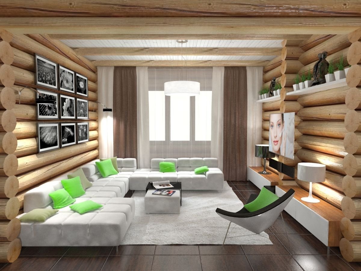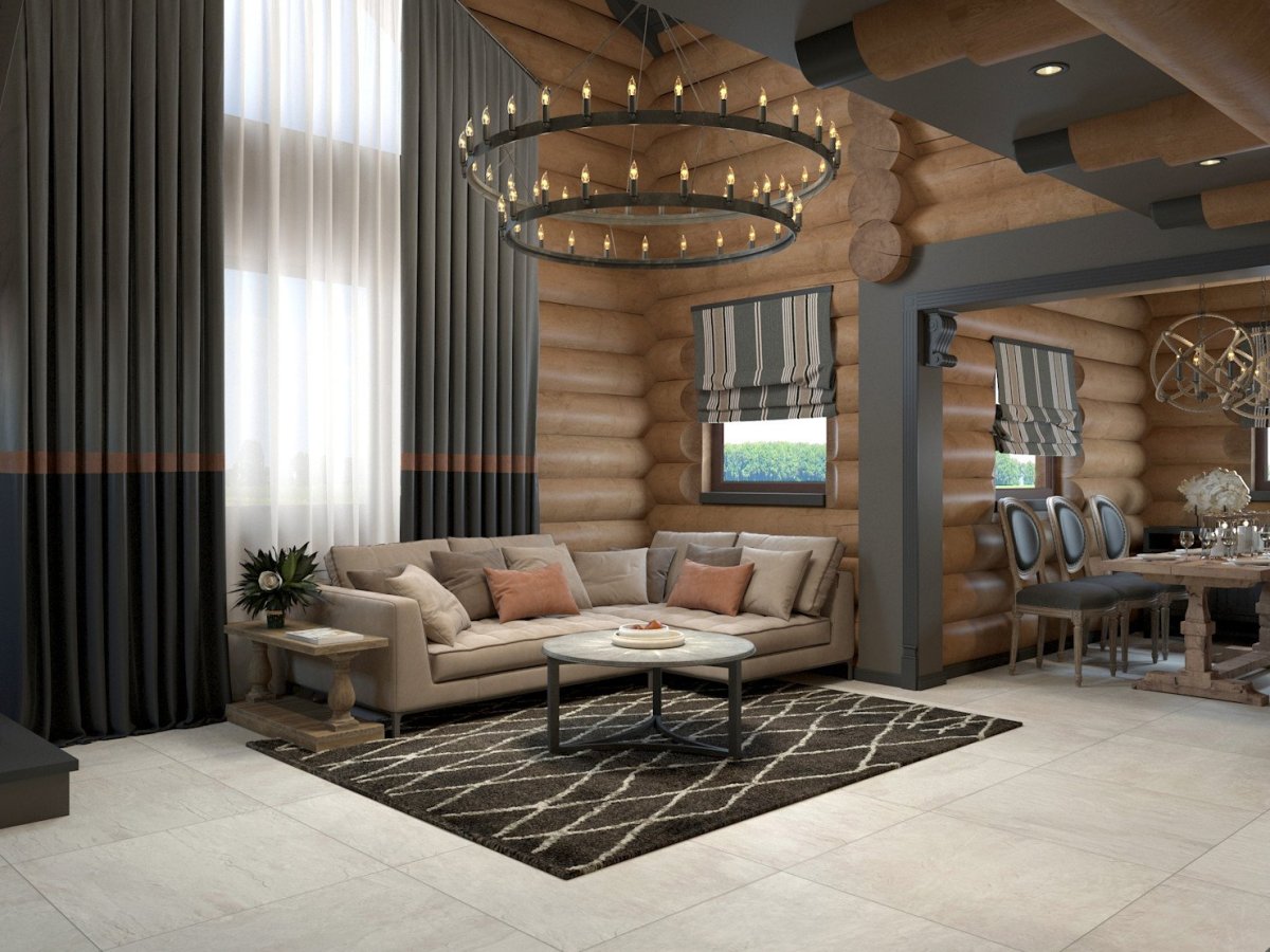 Дом из оцилиндрованного бревна интерьер кухня гостиная
