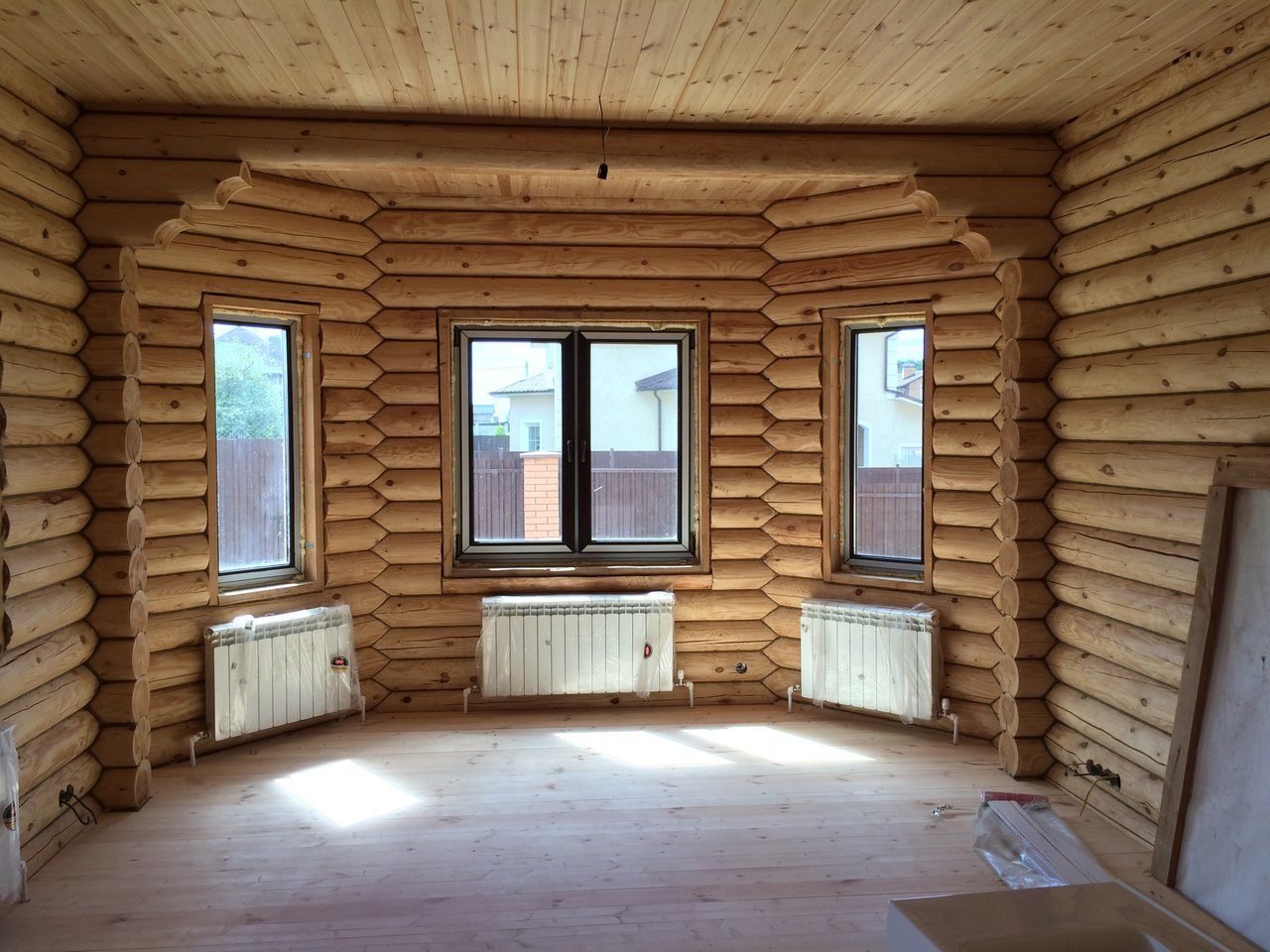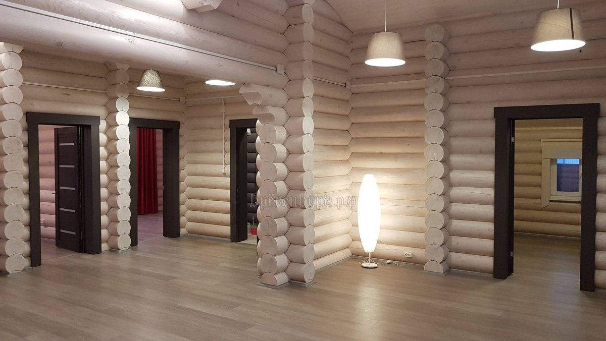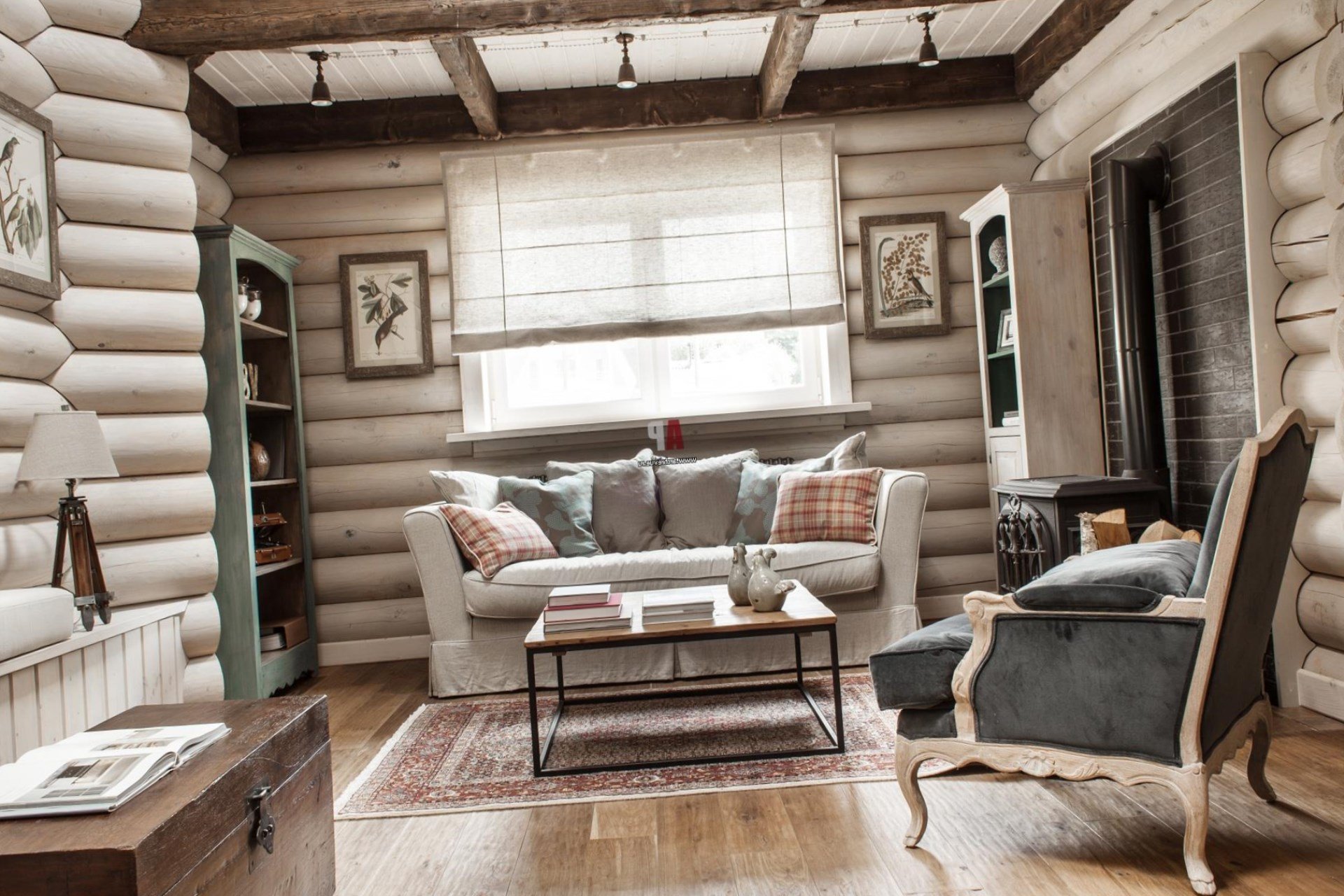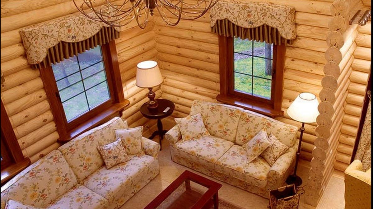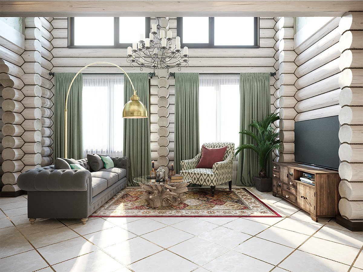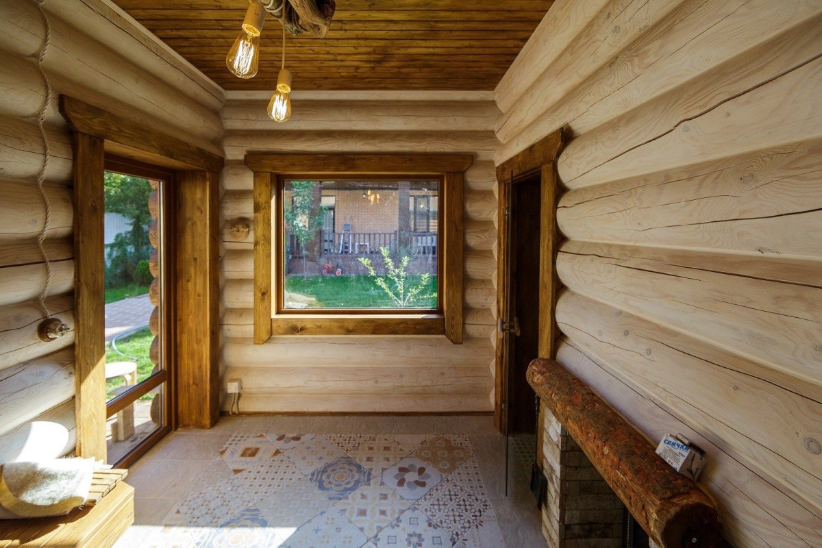 Дом из оцилиндрованного бревна интерьер кухня гостиная
