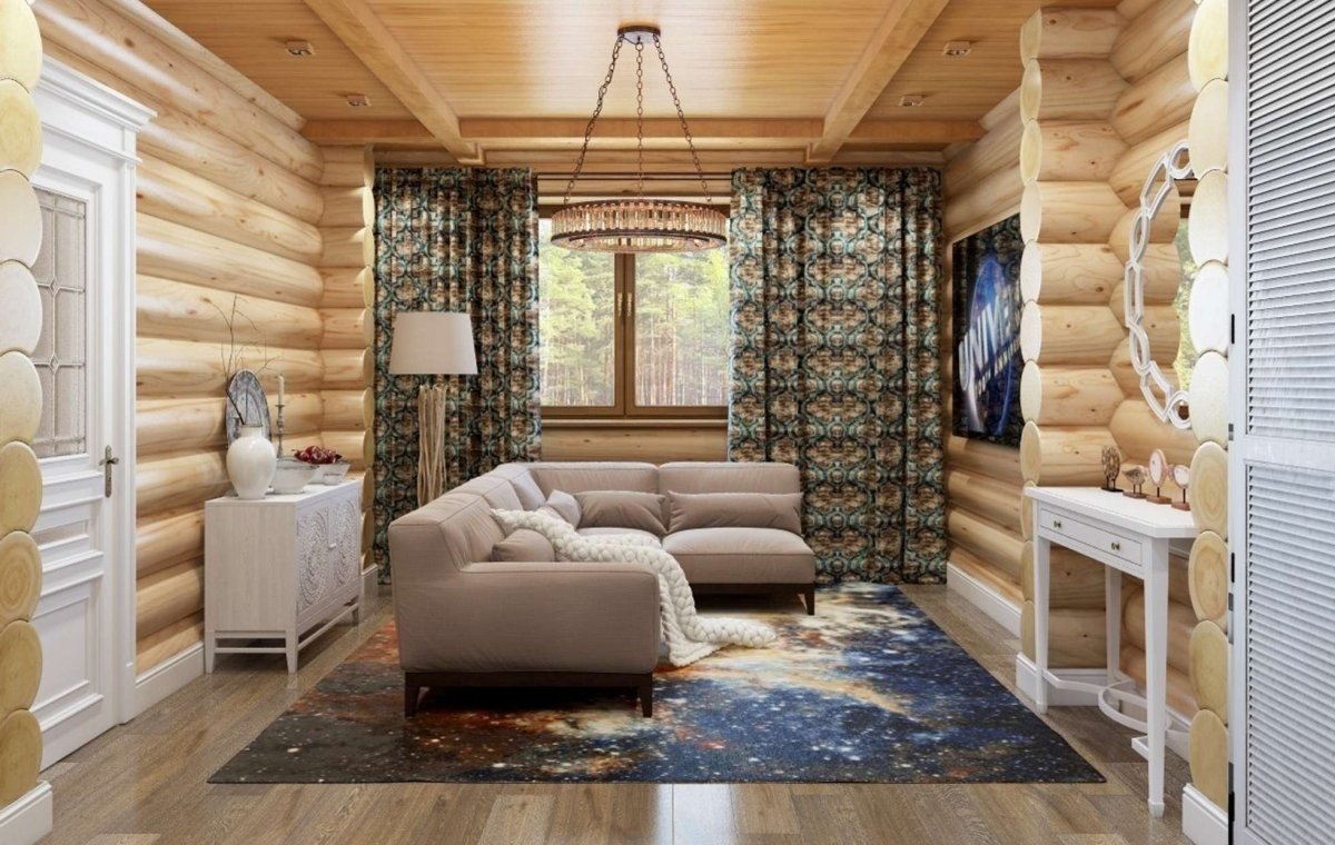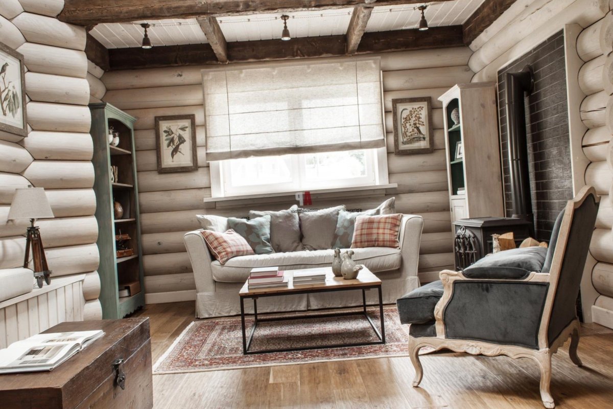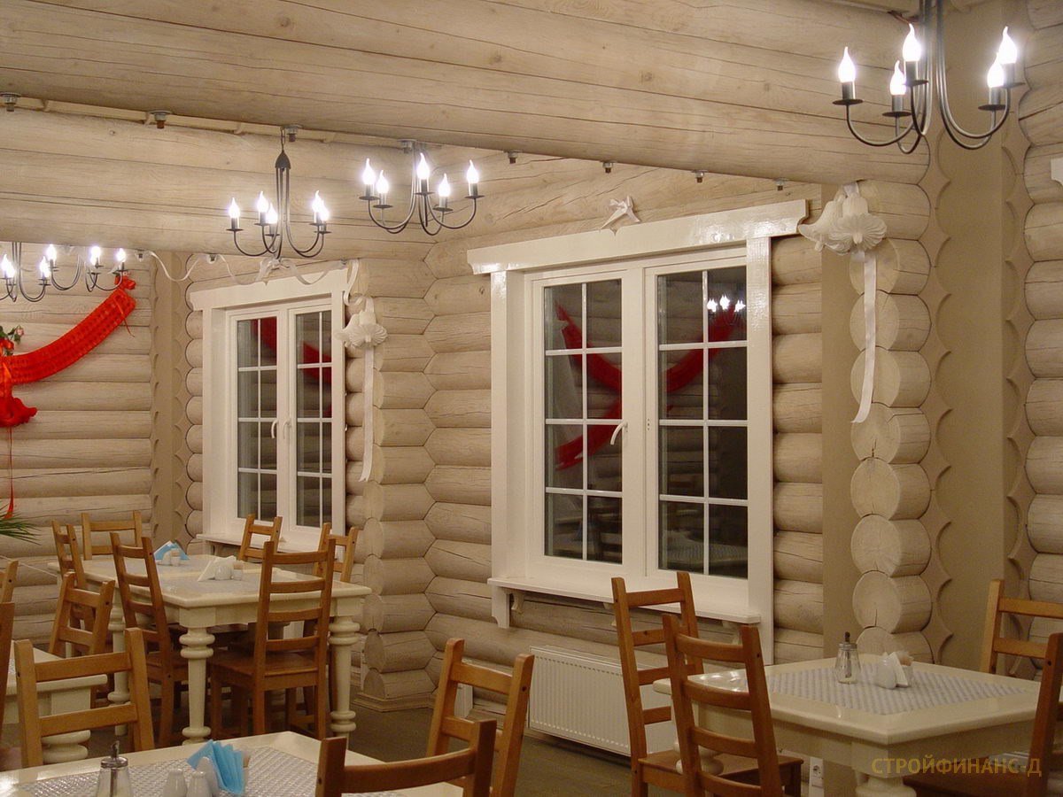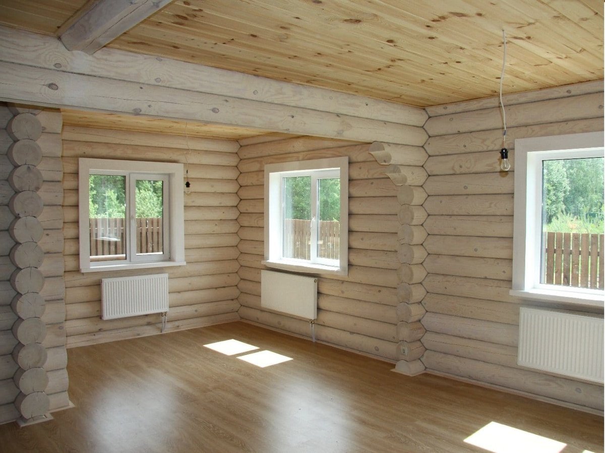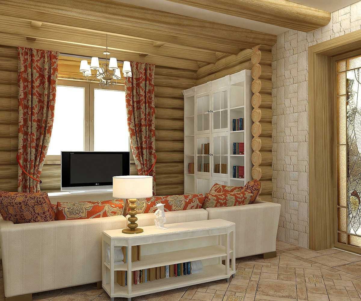Дом из оцилиндрованного бревна интерьер кухня гостиная