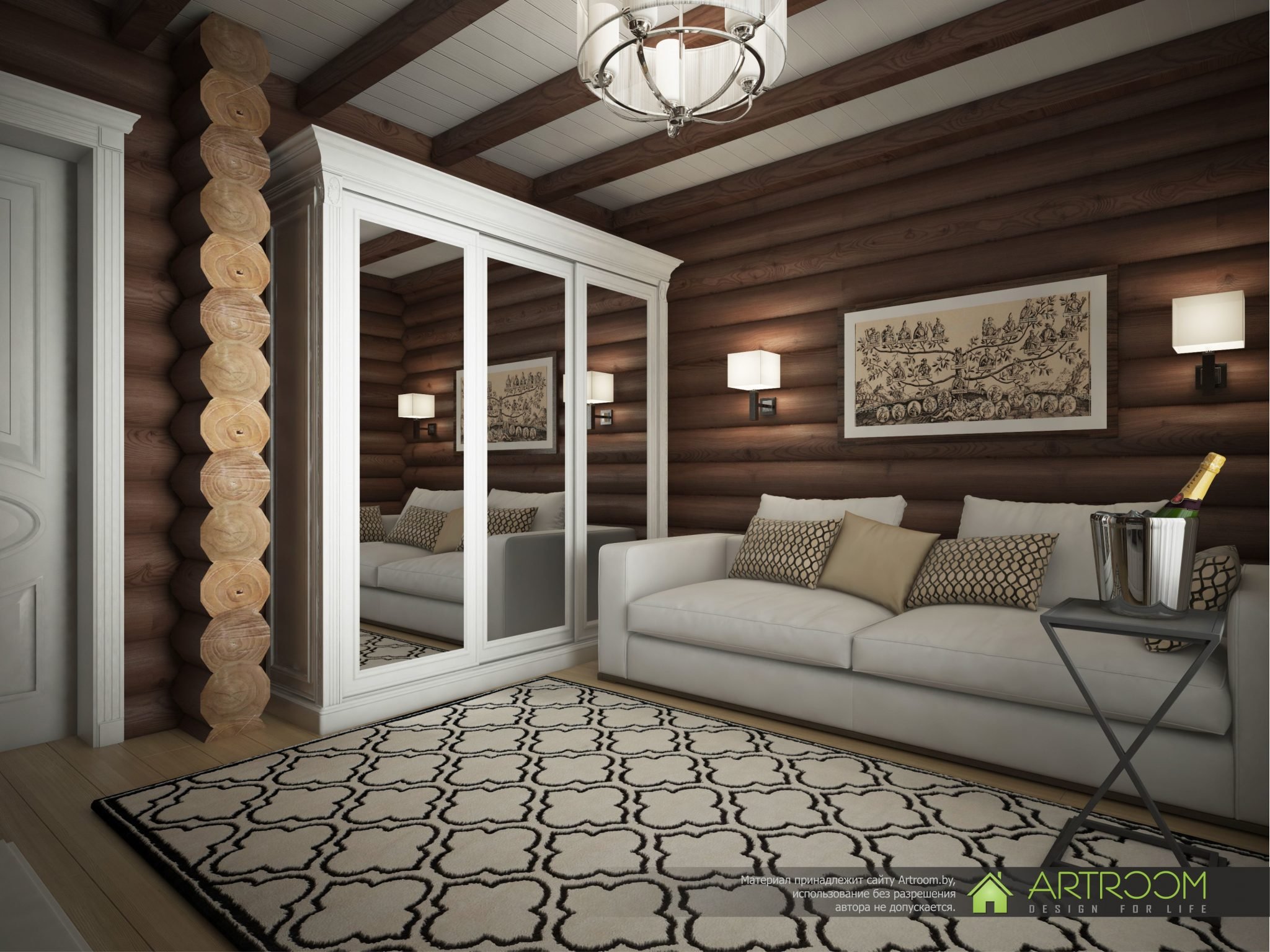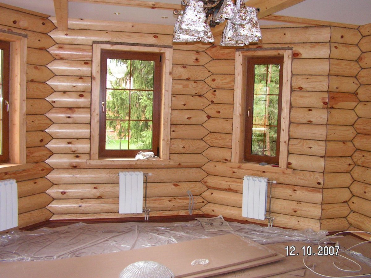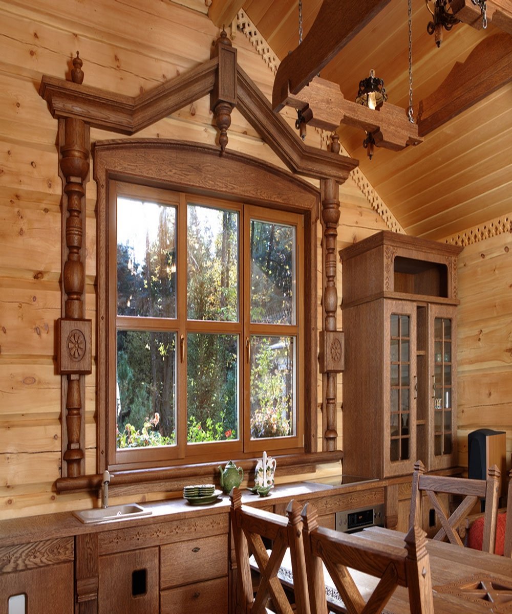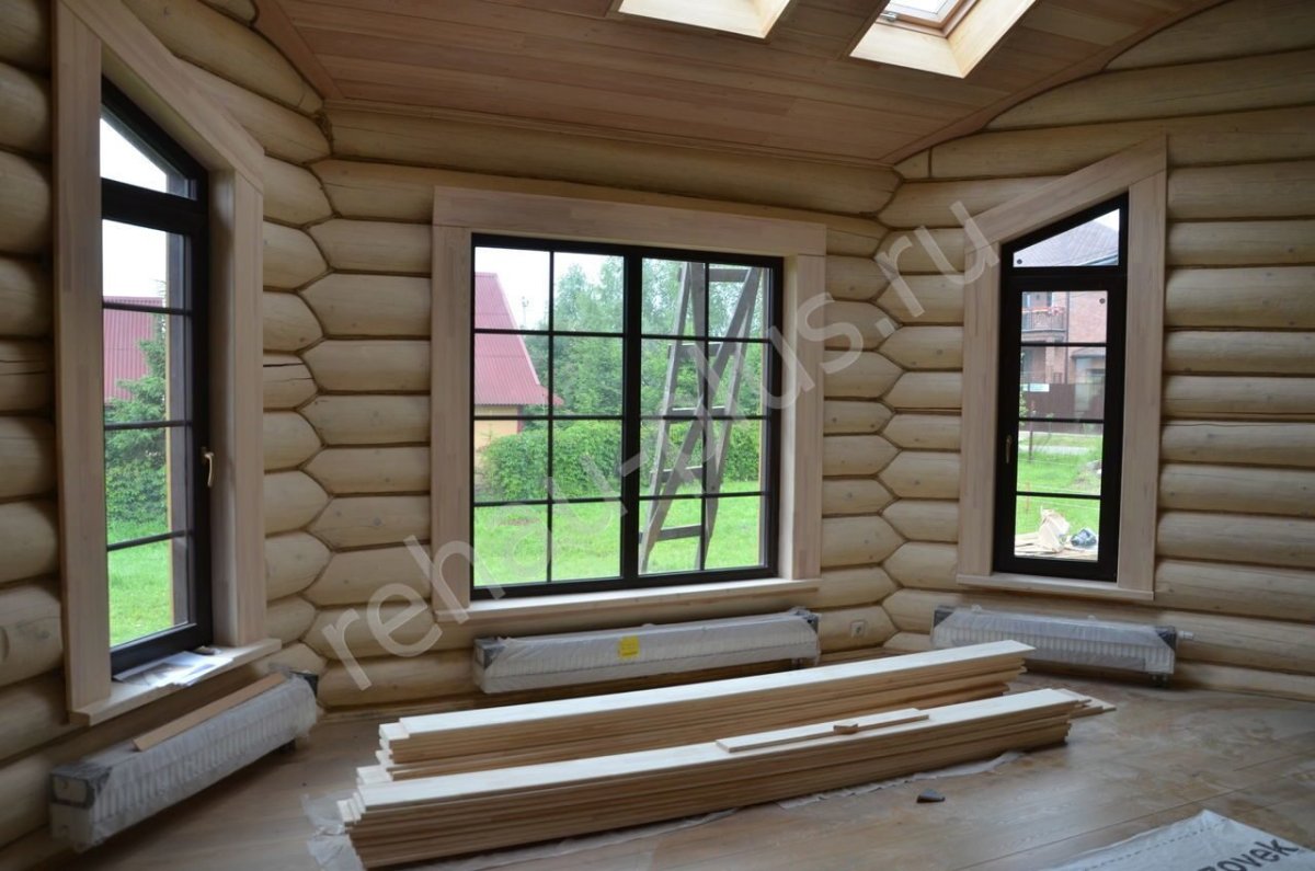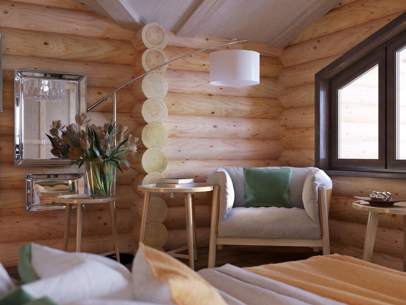 Дом из оцилиндрованного бревна интерьер кухня гостиная