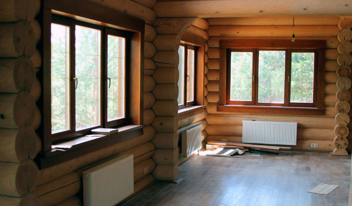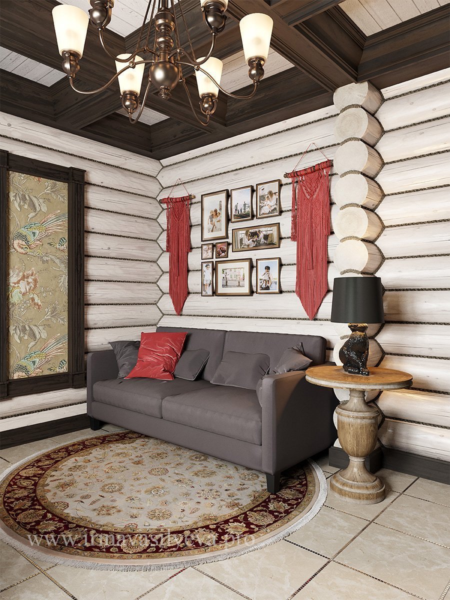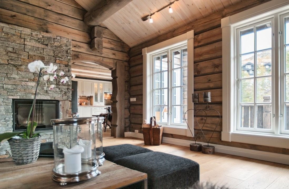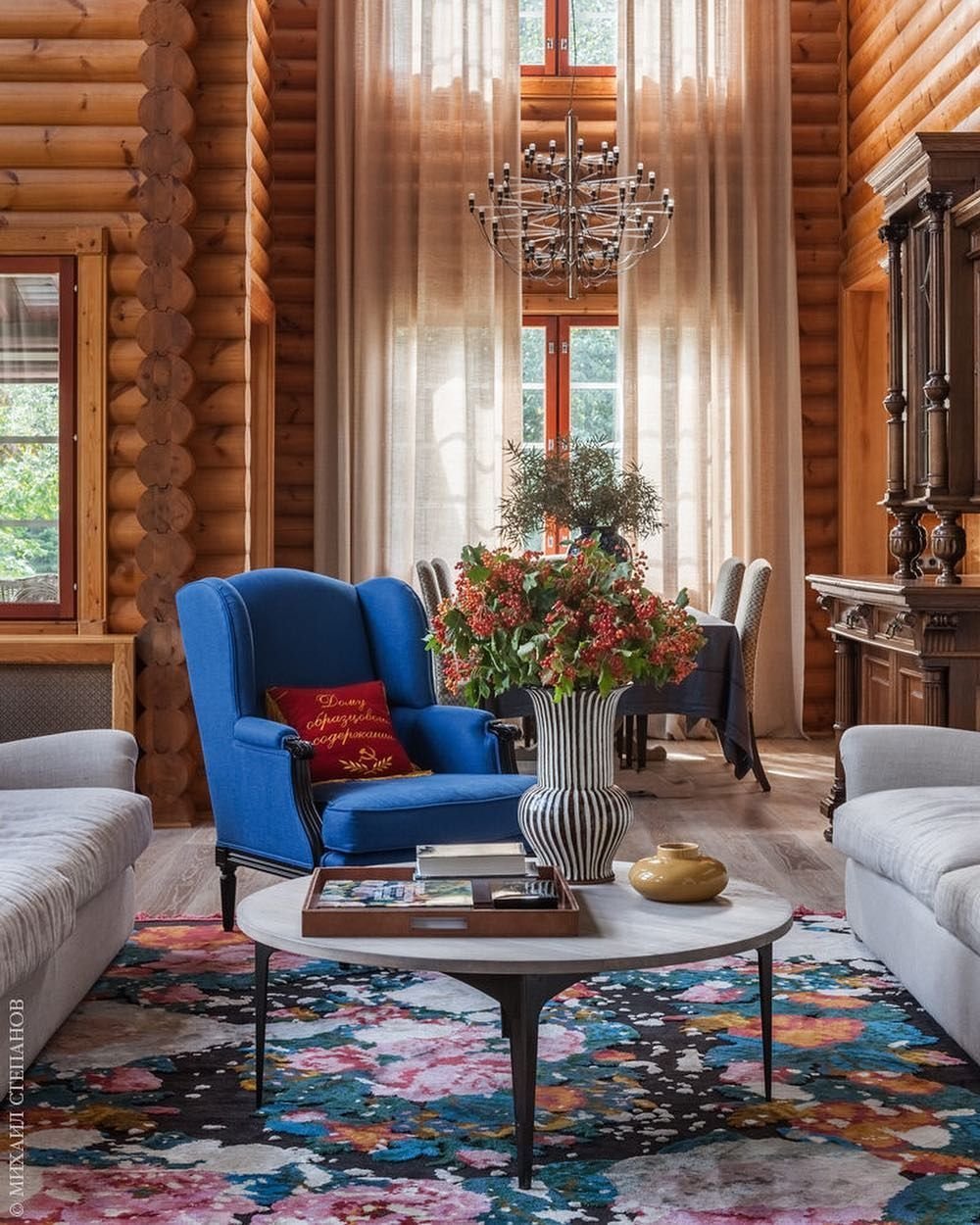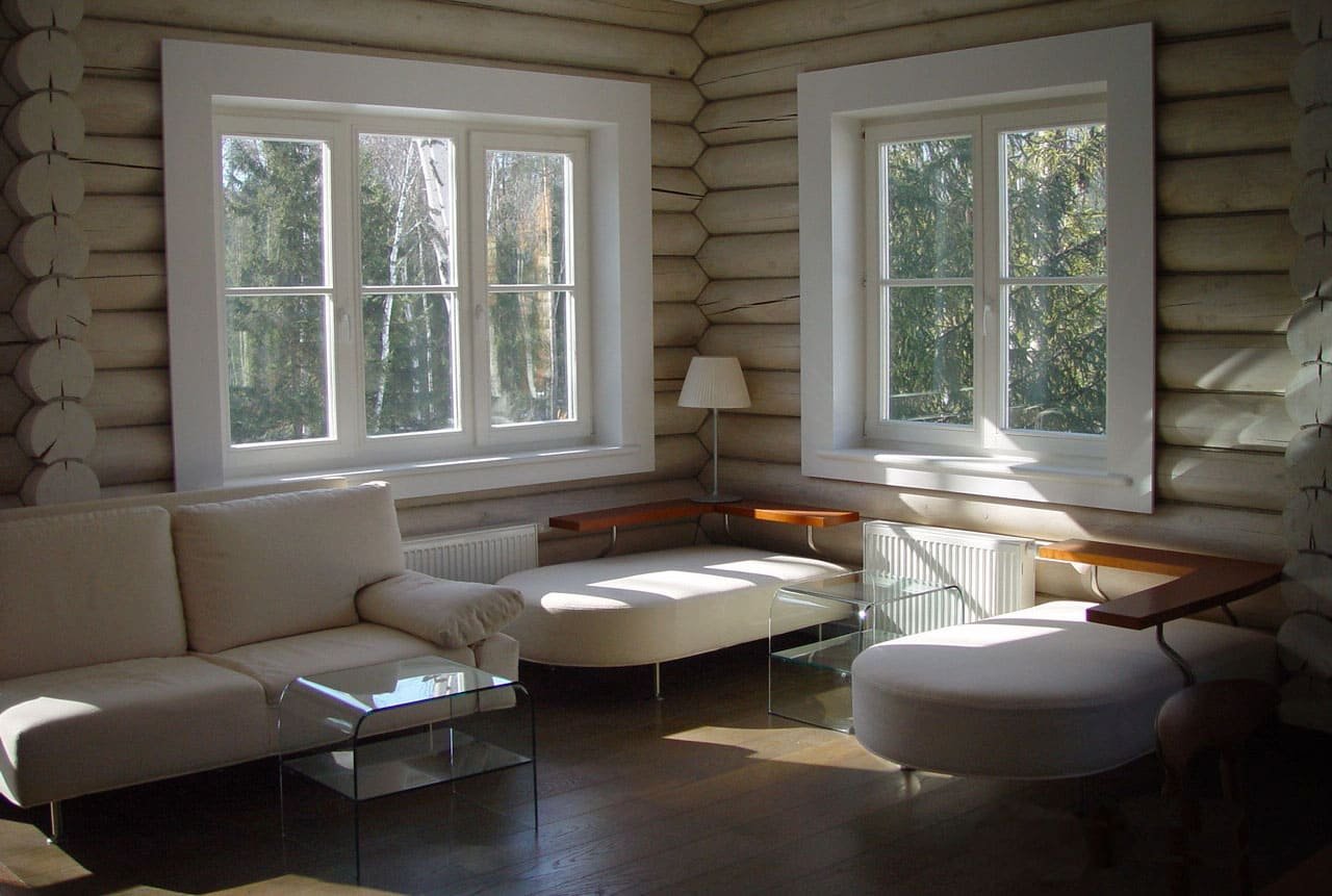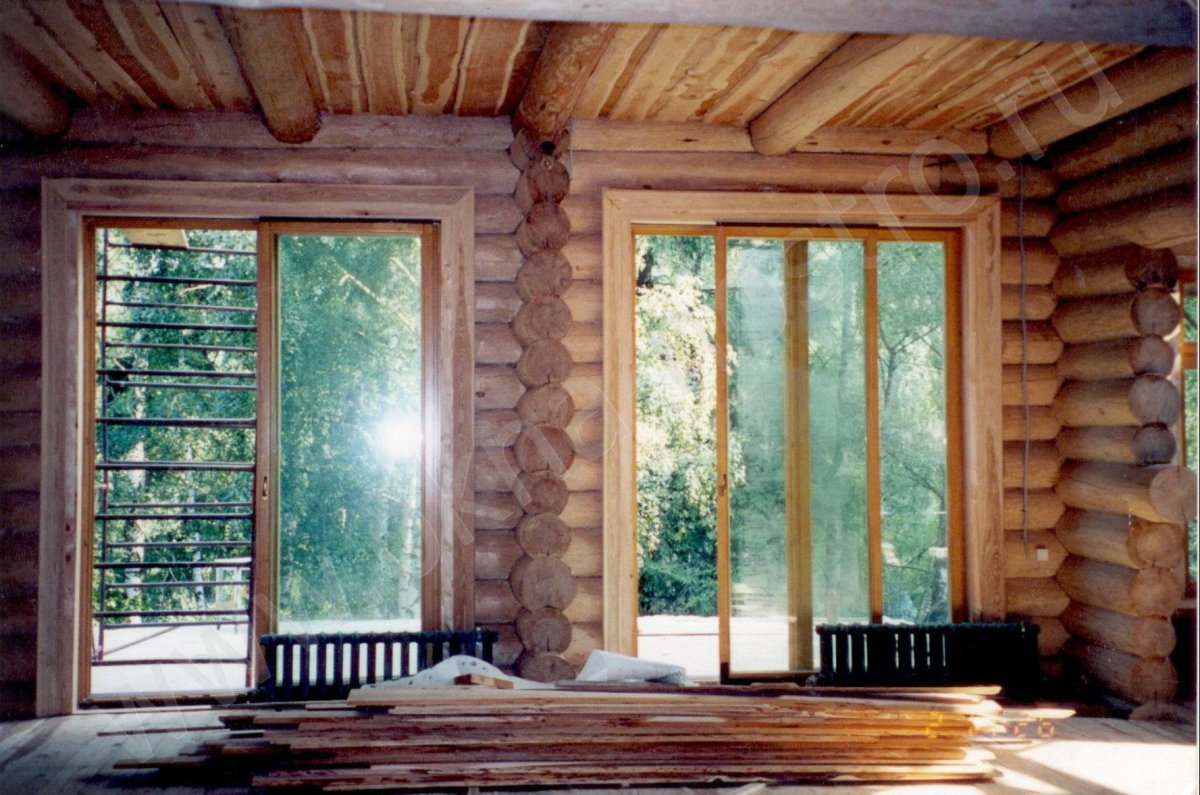 Дом из оцилиндрованного бревна интерьер кухня гостиная
