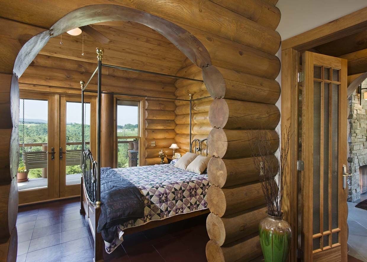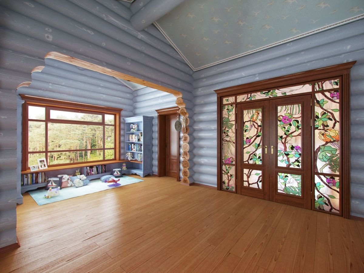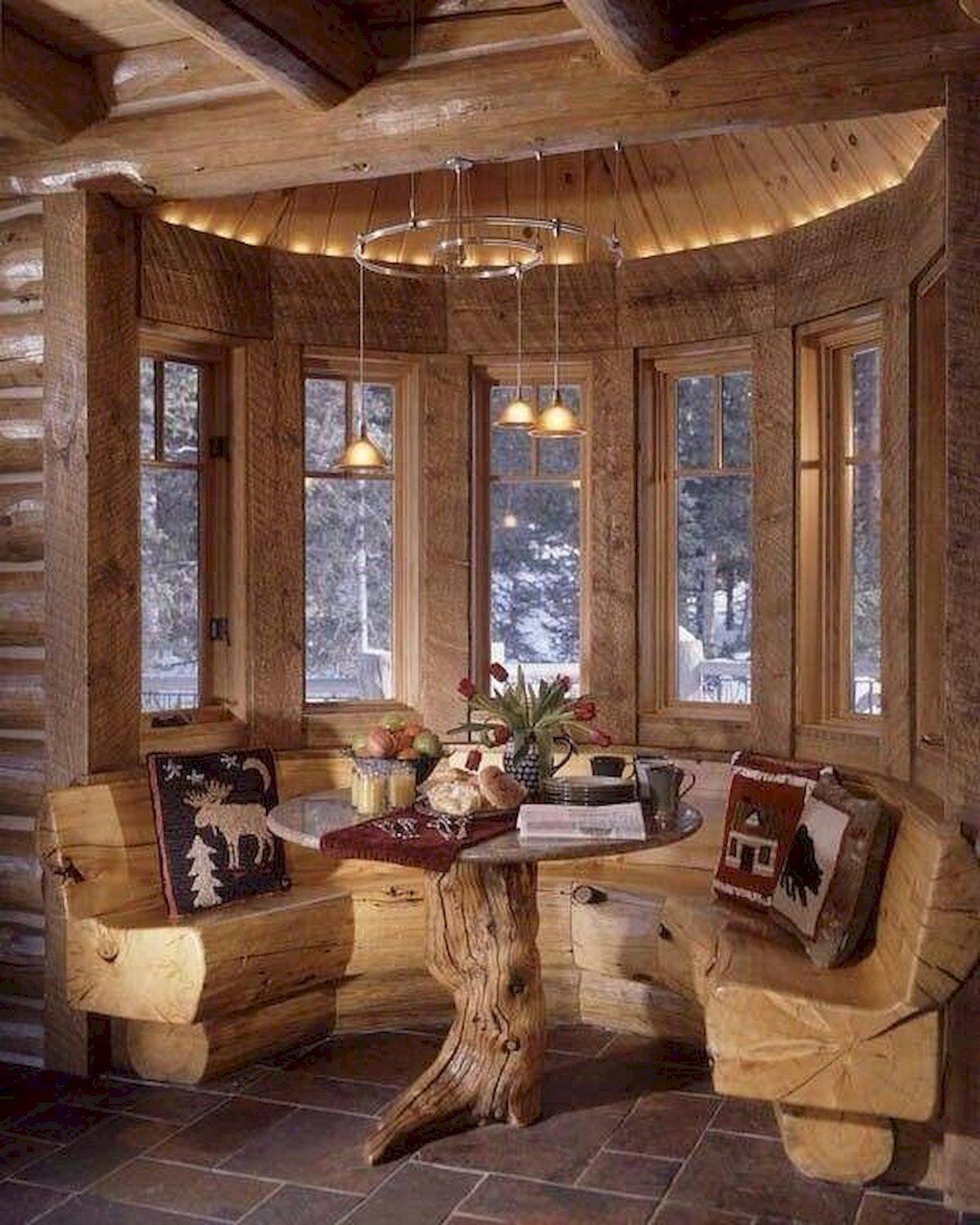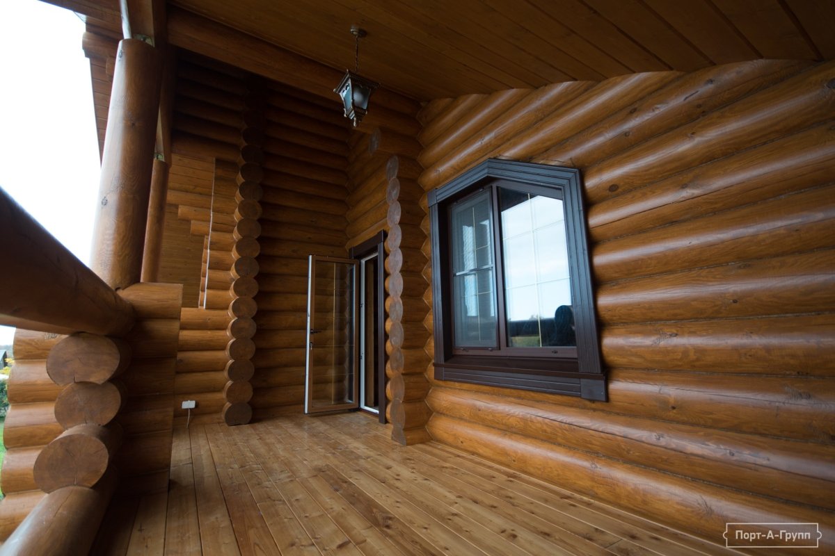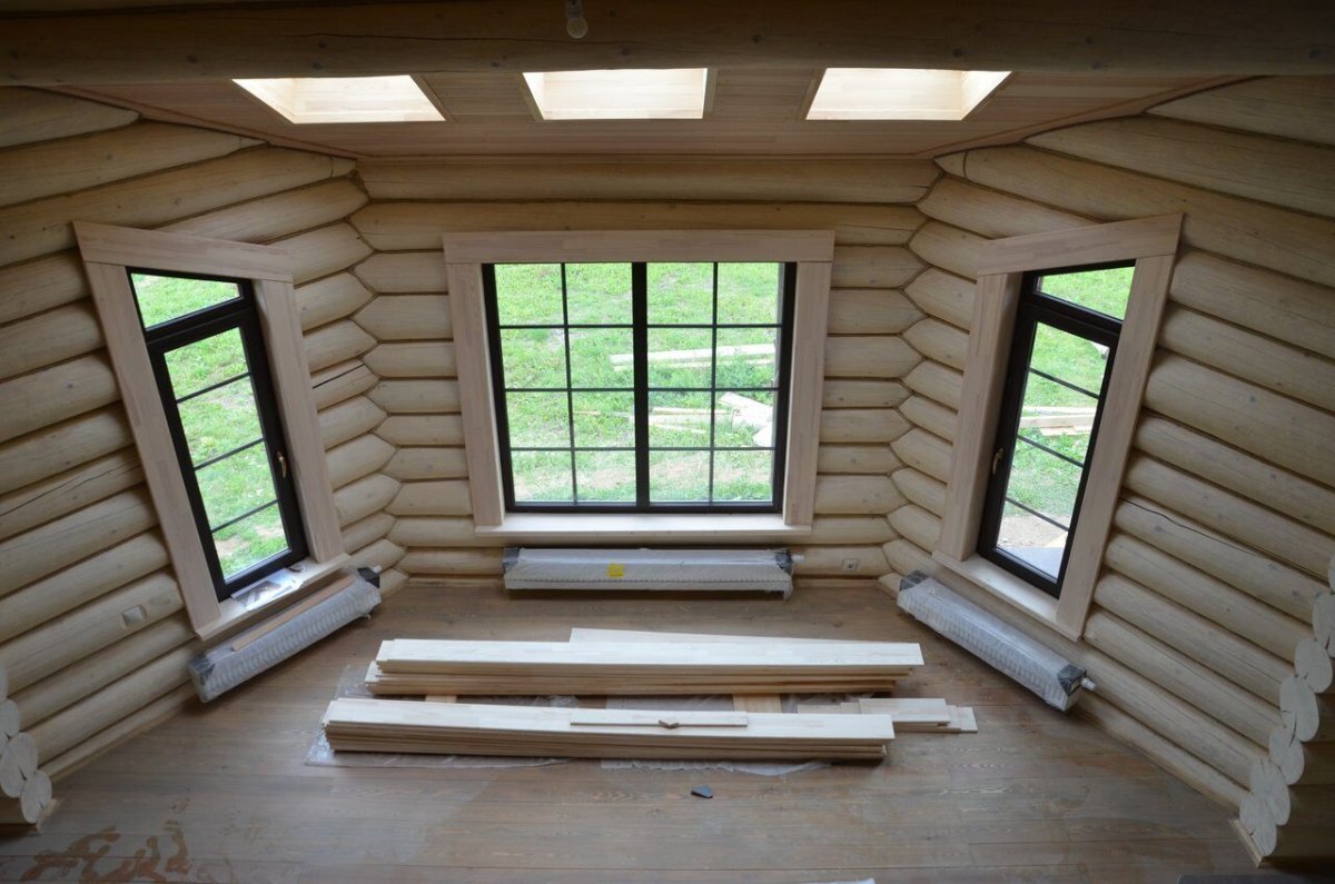 Дом из оцилиндрованного бревна интерьер кухня гостиная