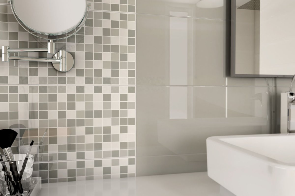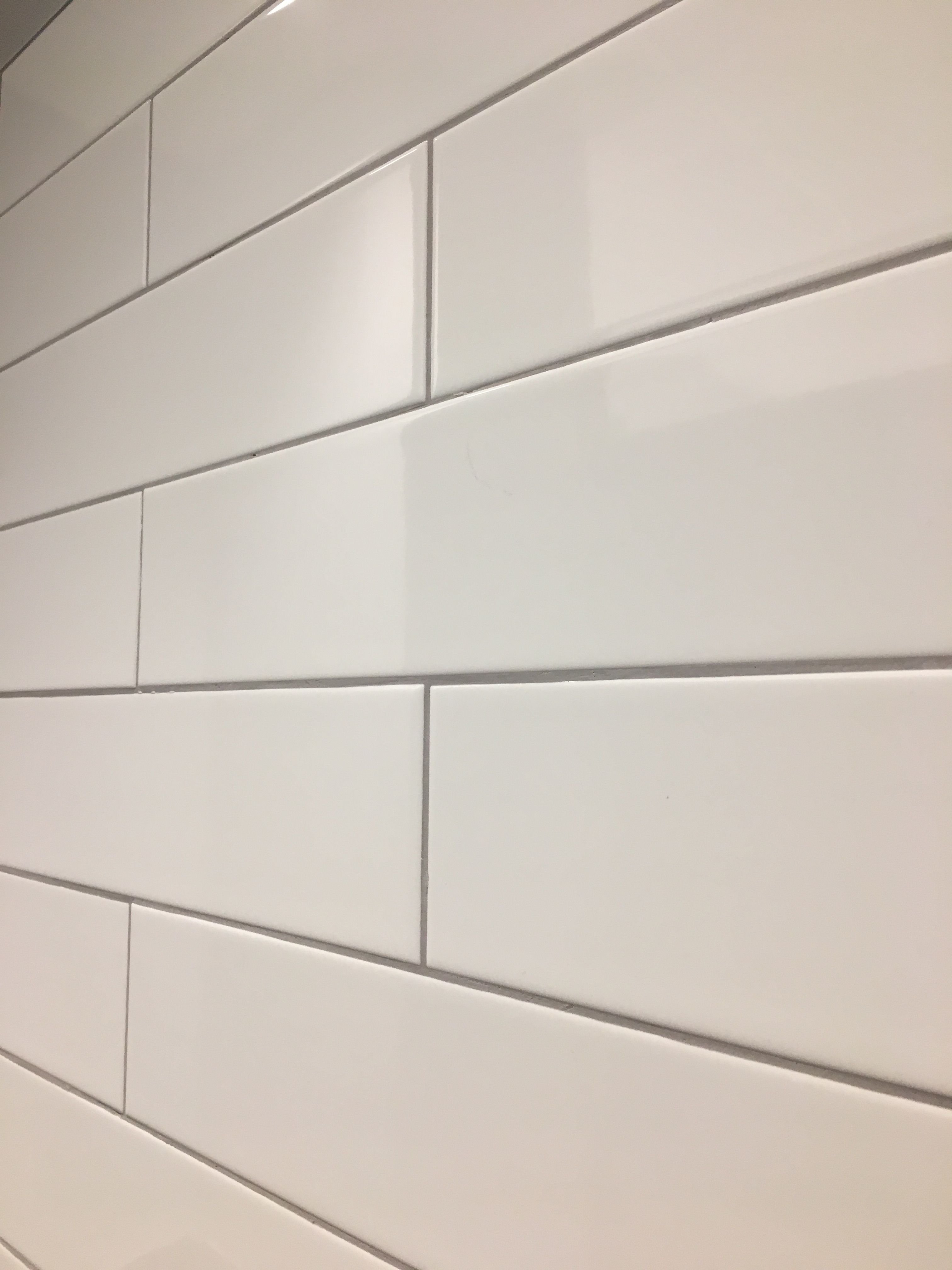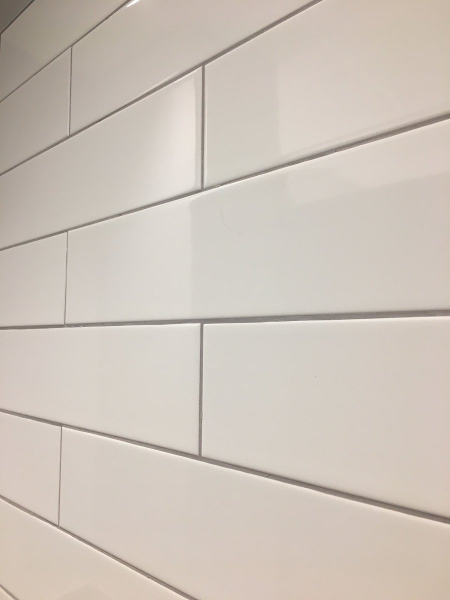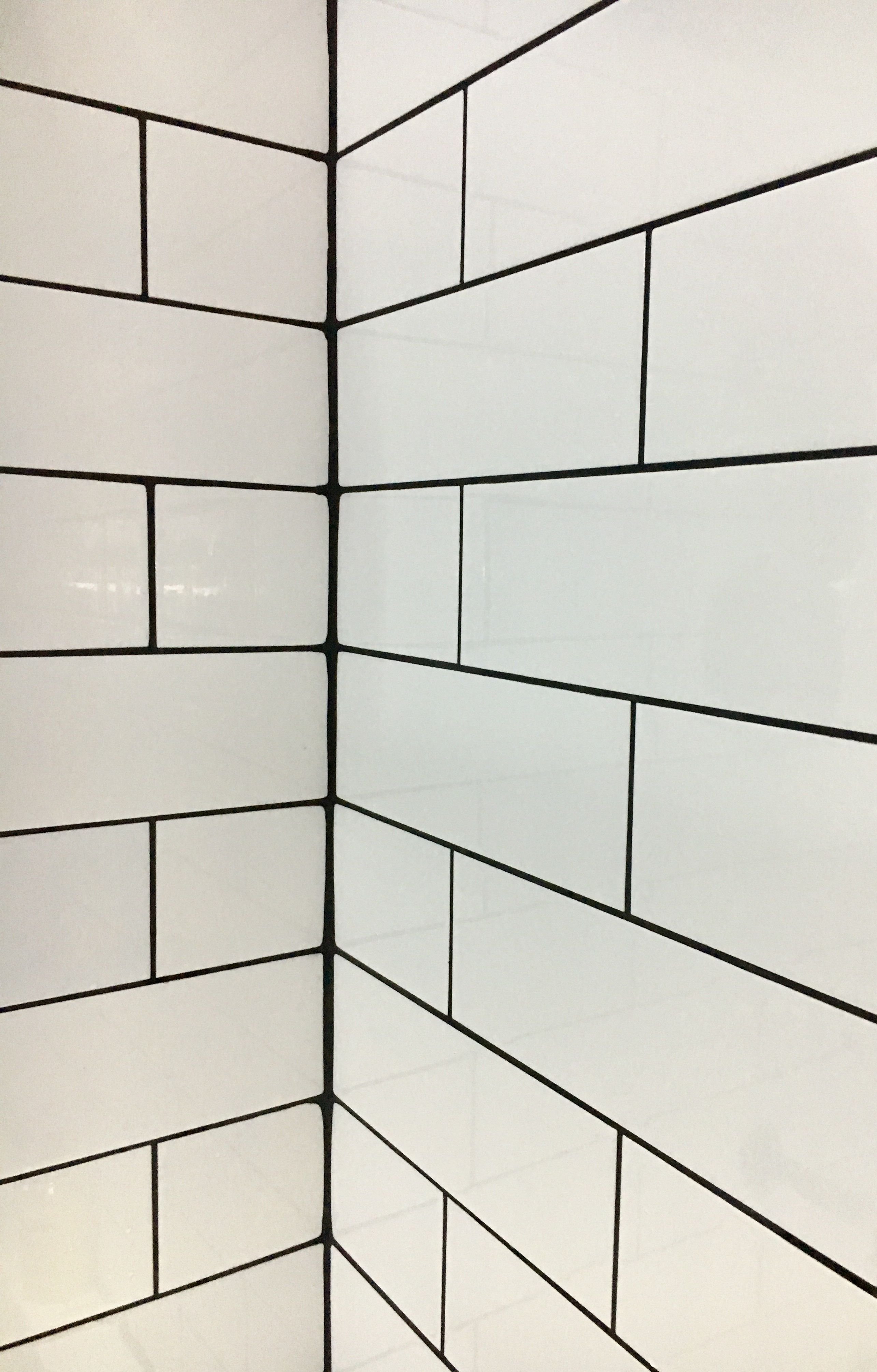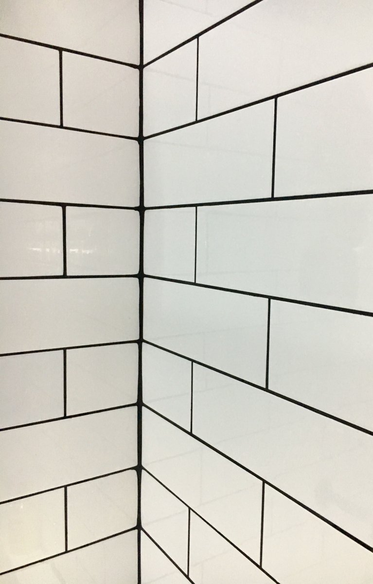 Панель ПВХ плитка белая розовый шов 955 480мм