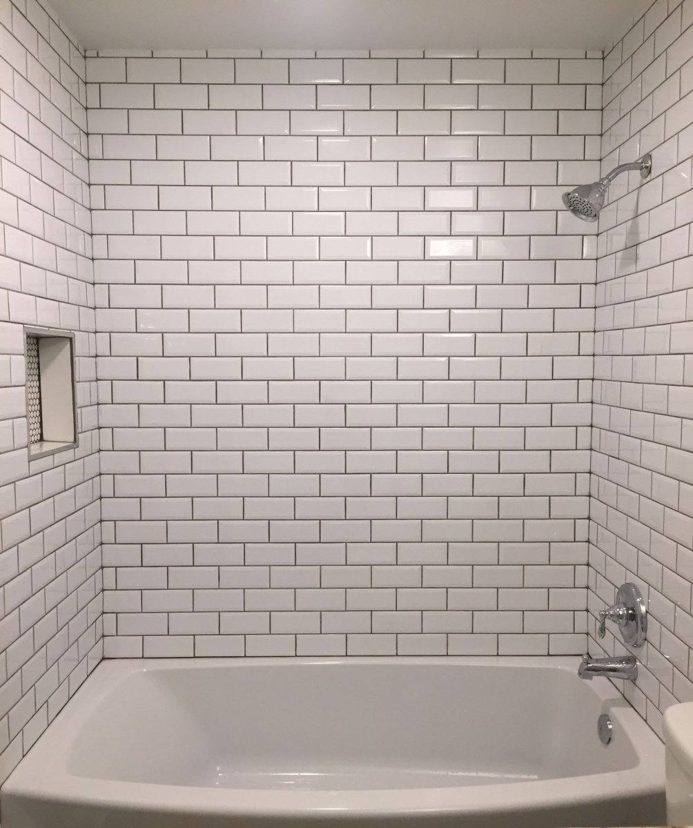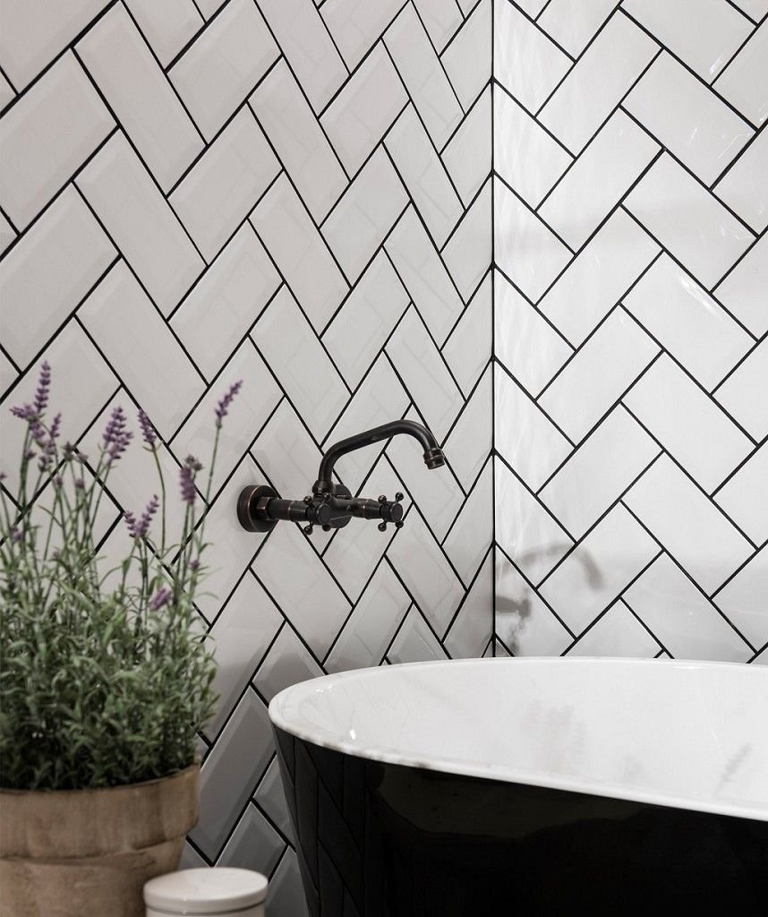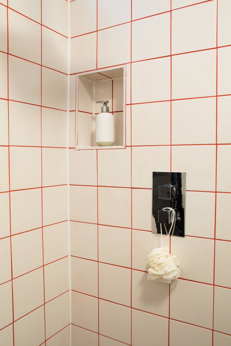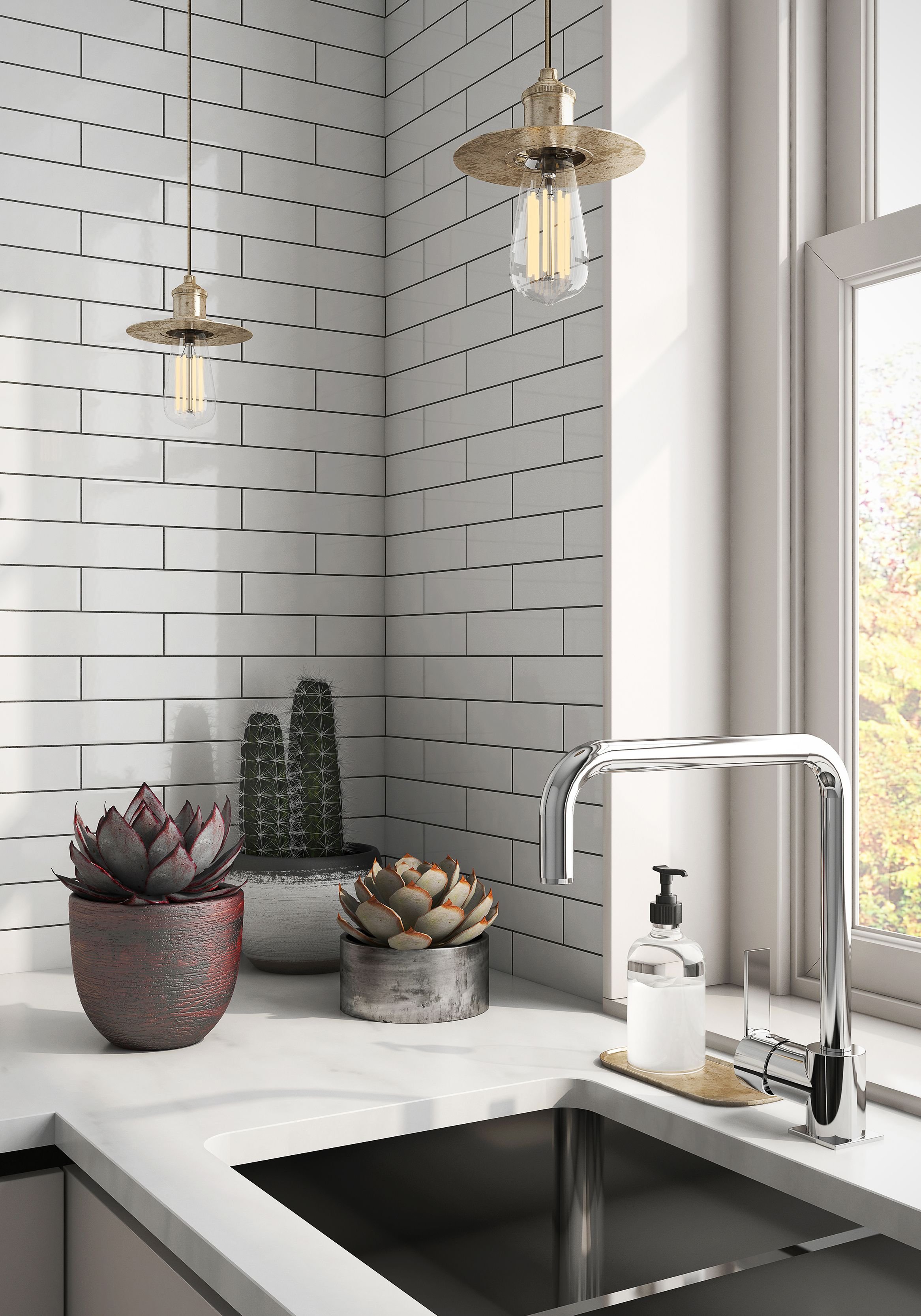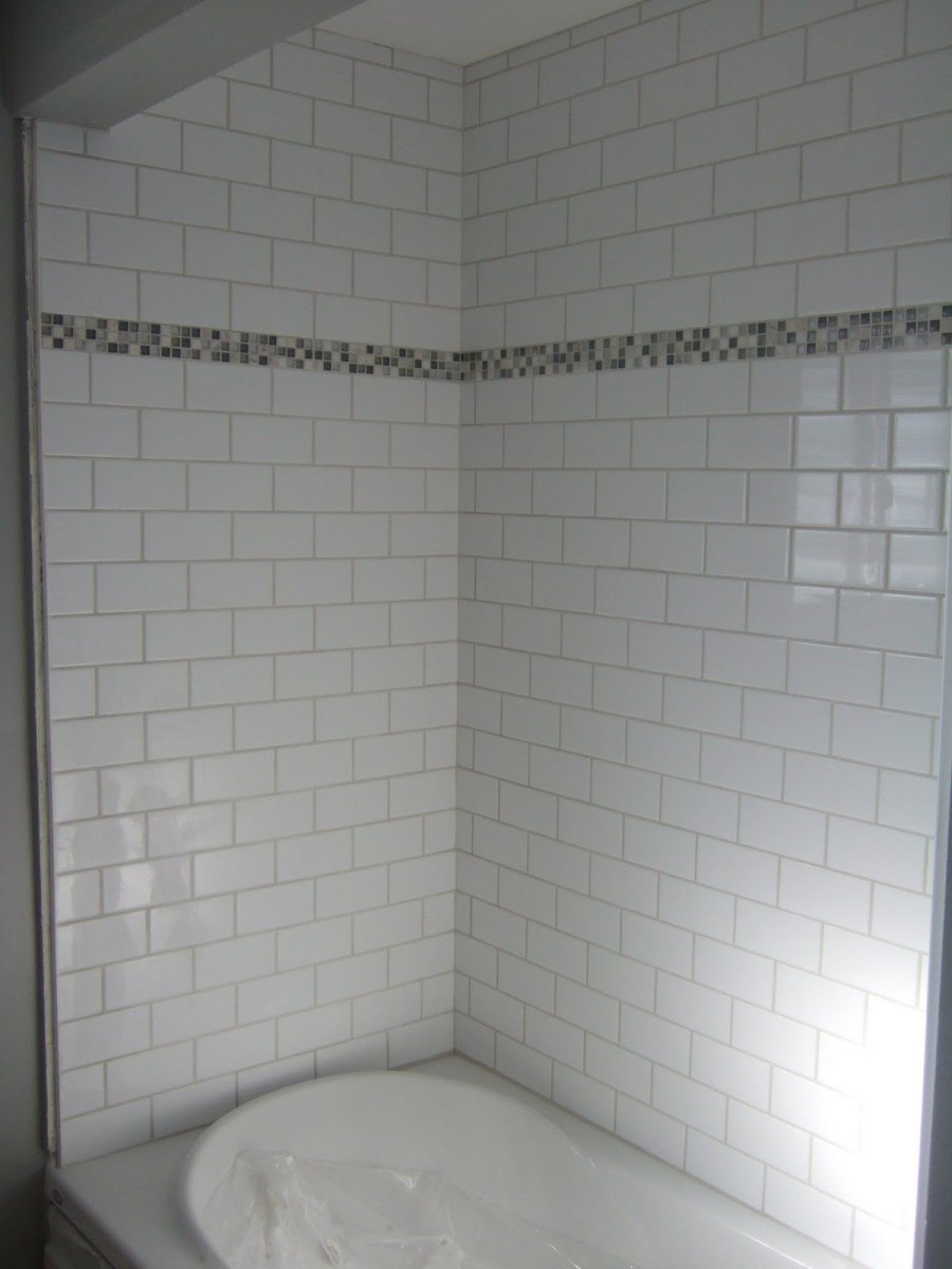 Панель ПВХ плитка белая розовый шов 955 480мм