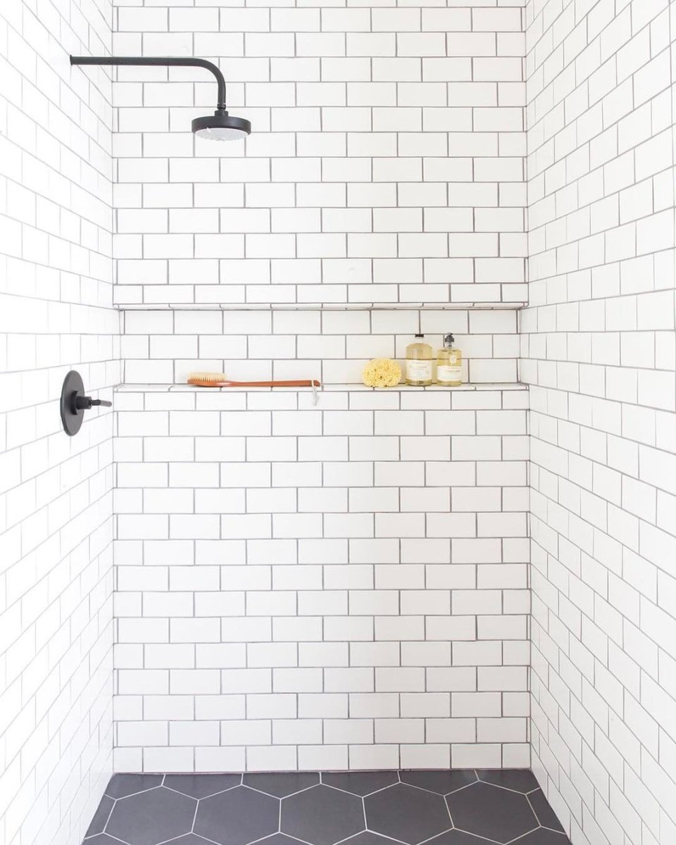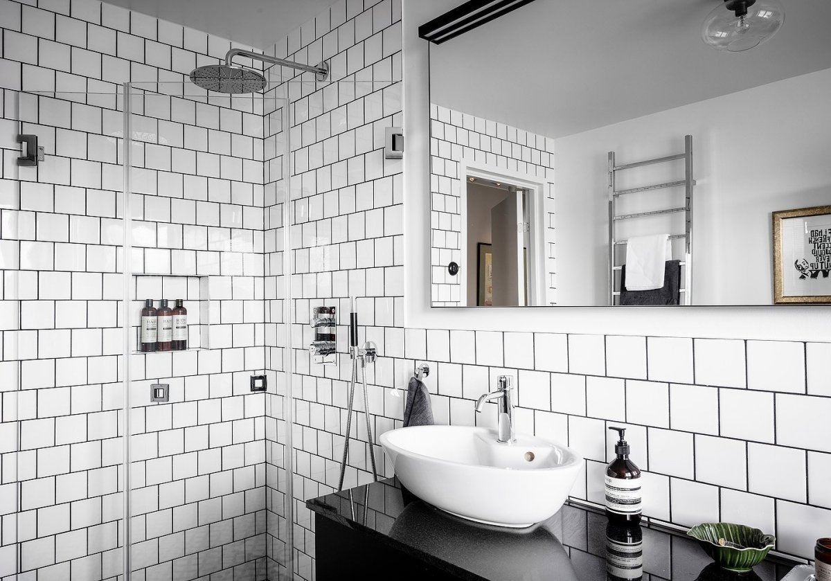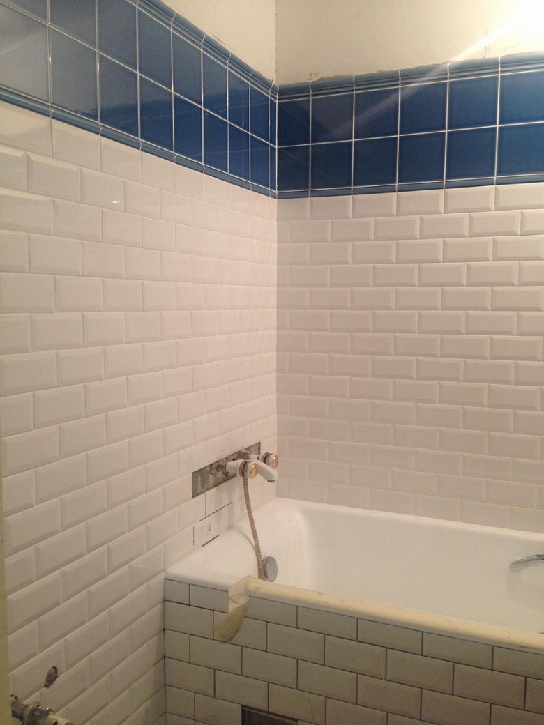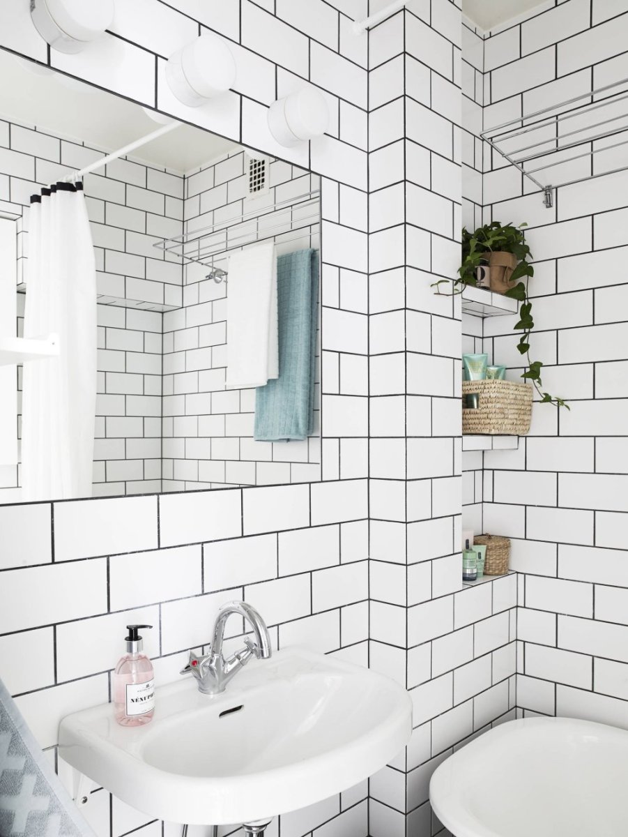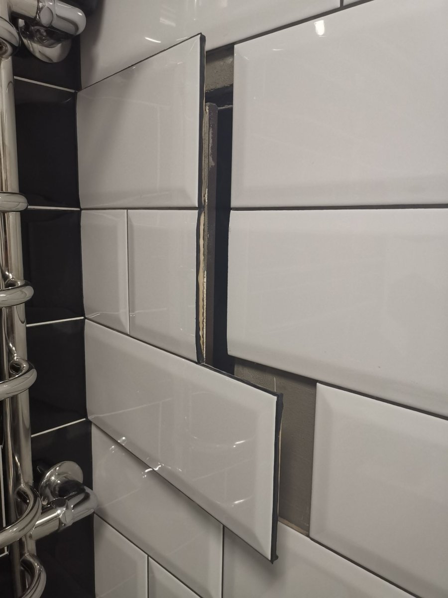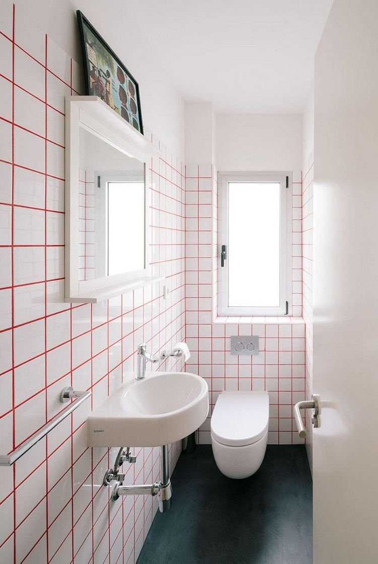 Панель ПВХ плитка белая розовый шов 955 480мм