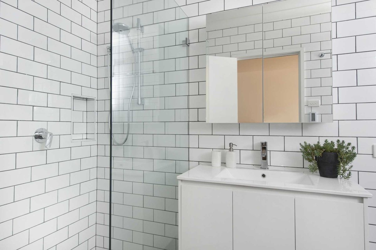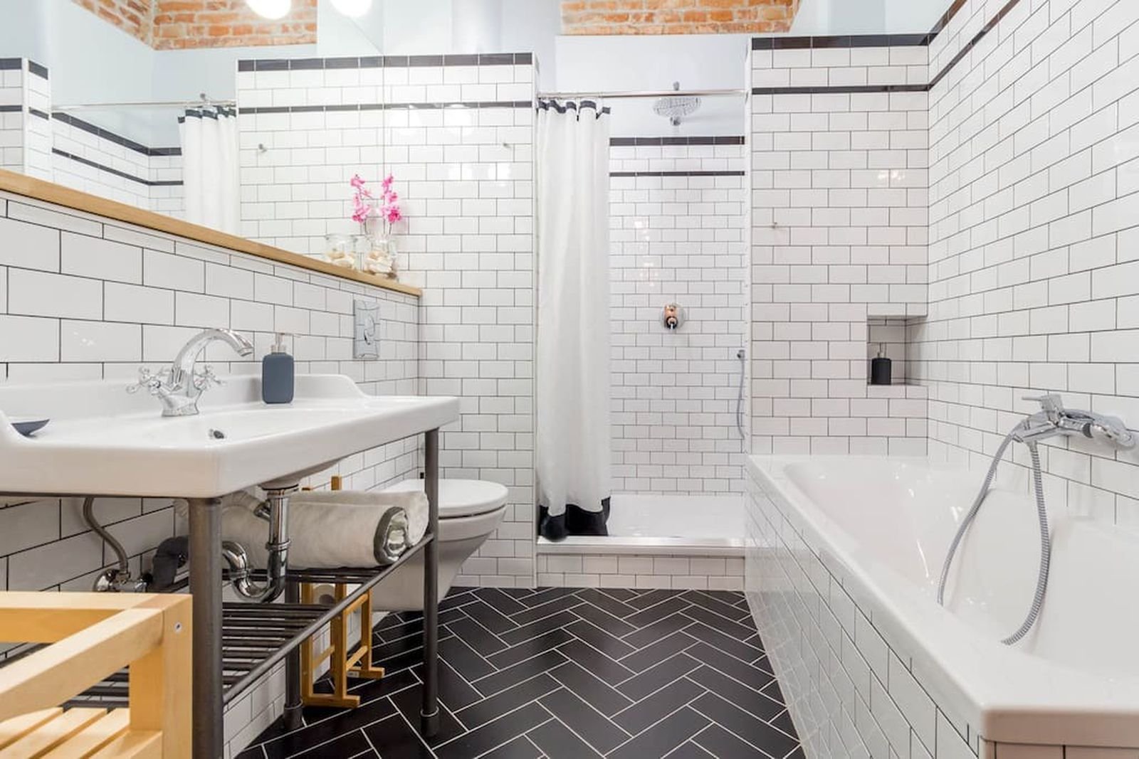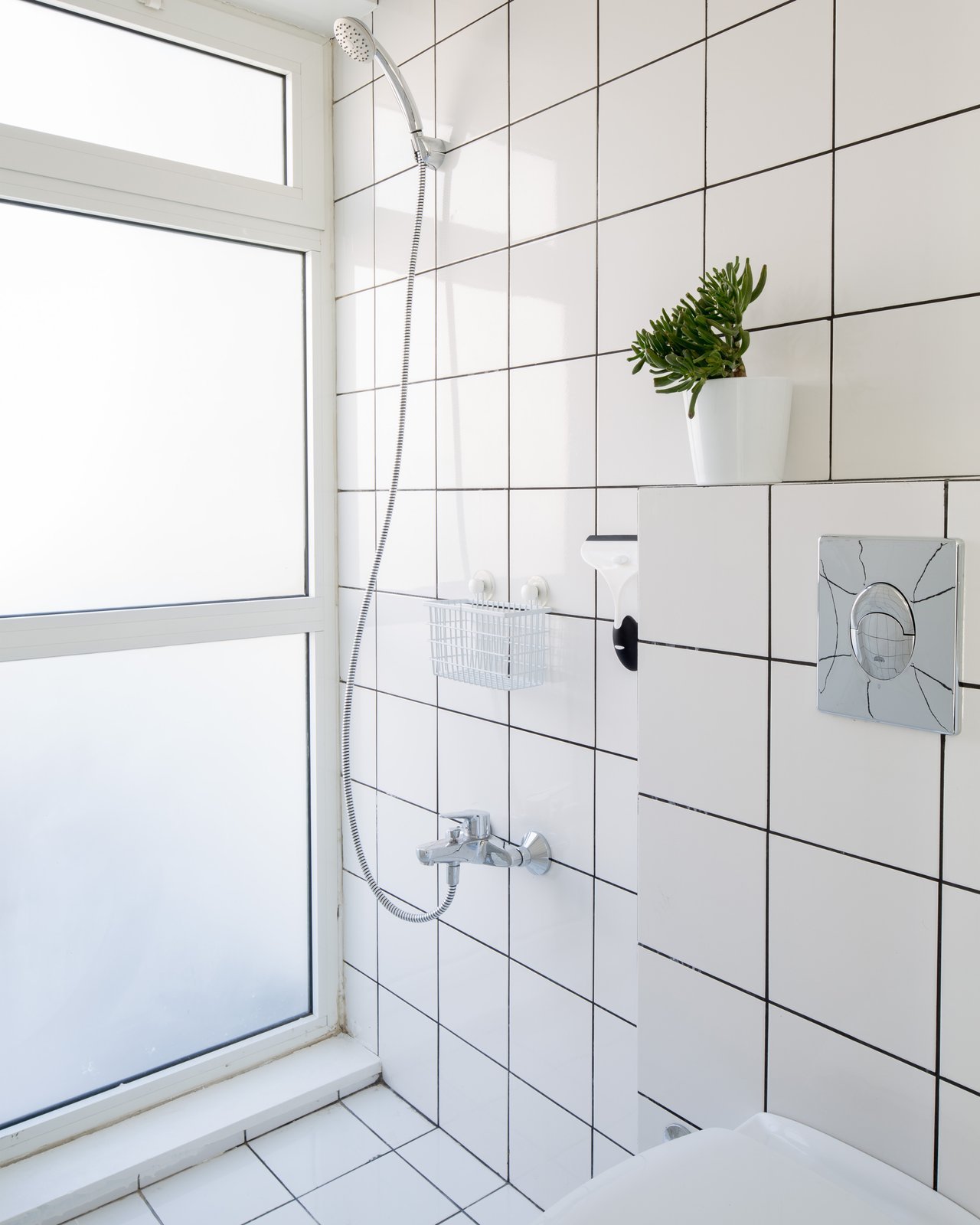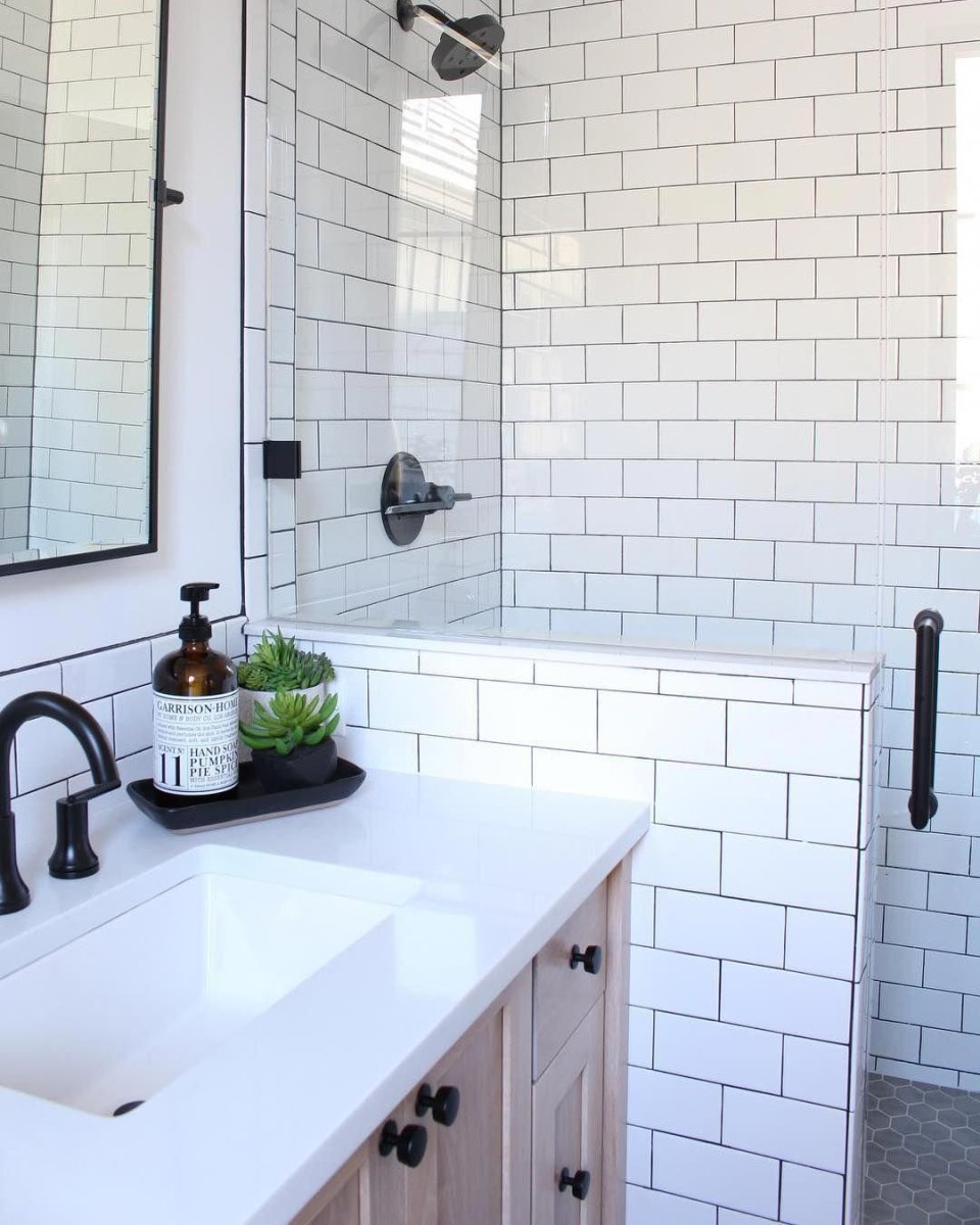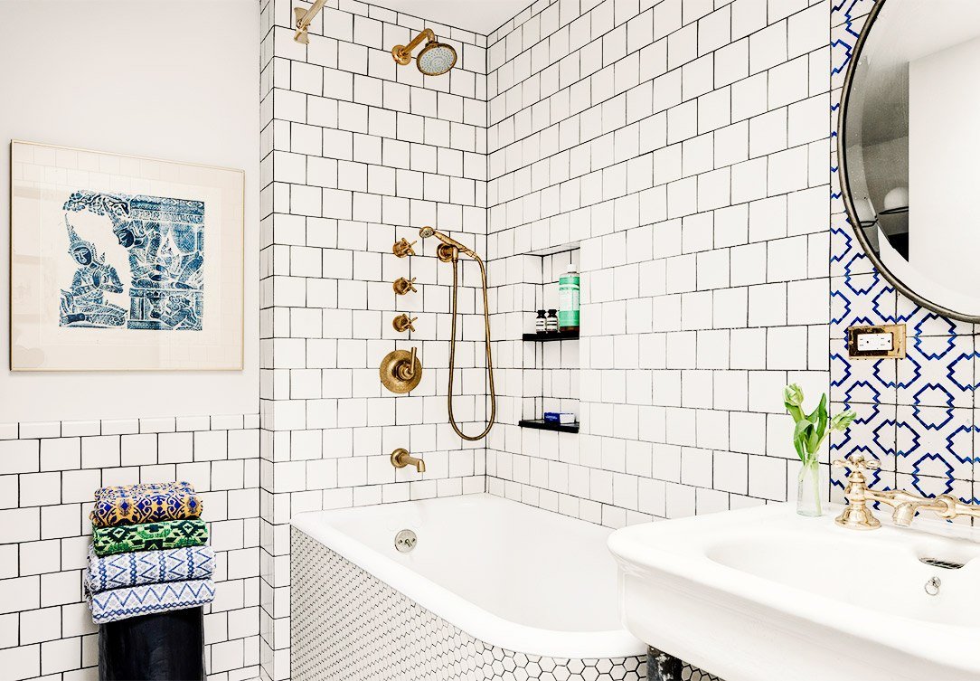 Панель ПВХ плитка белая розовый шов 955 480мм