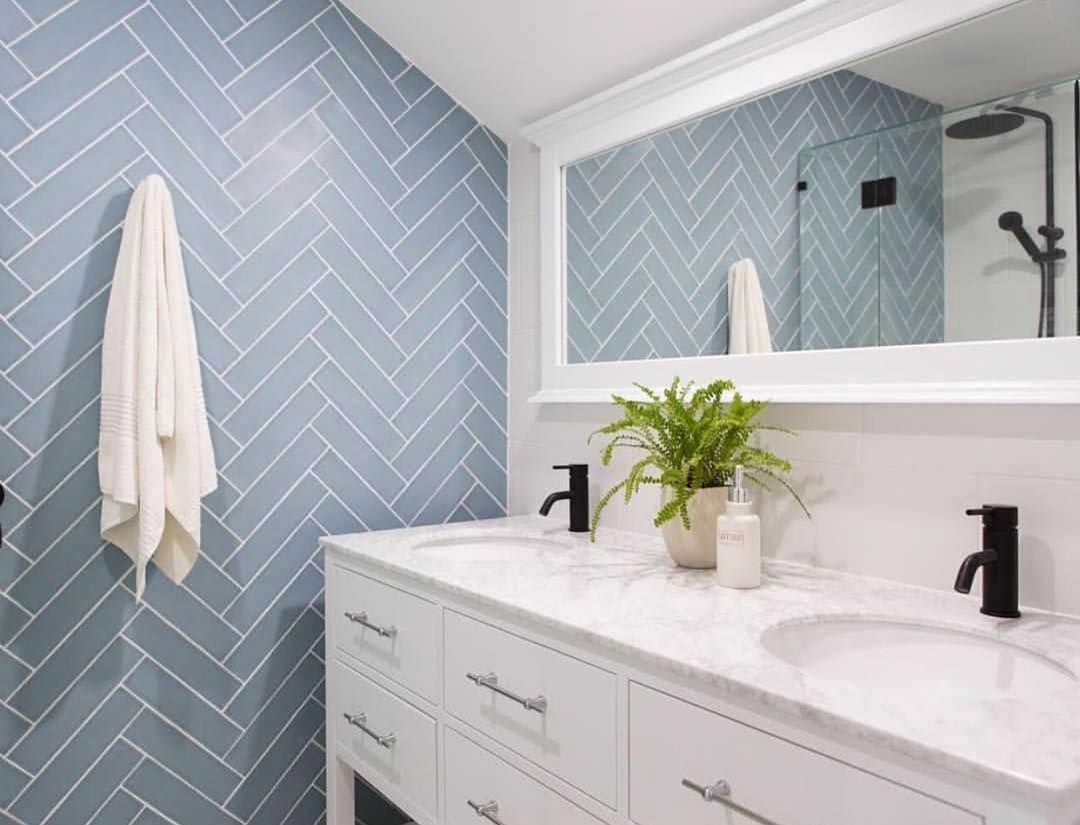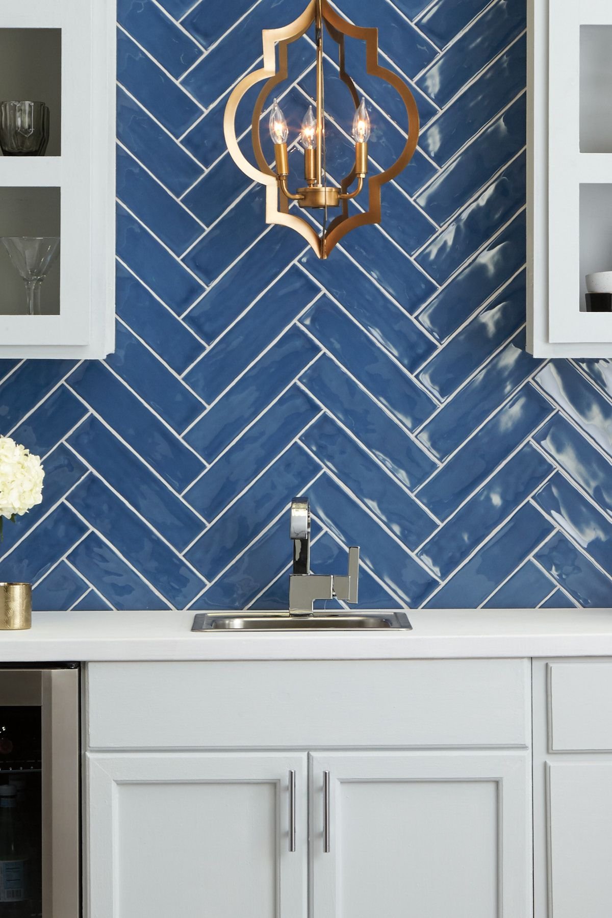Синяя плитка Керама Марацци прямоугольная Herringbone