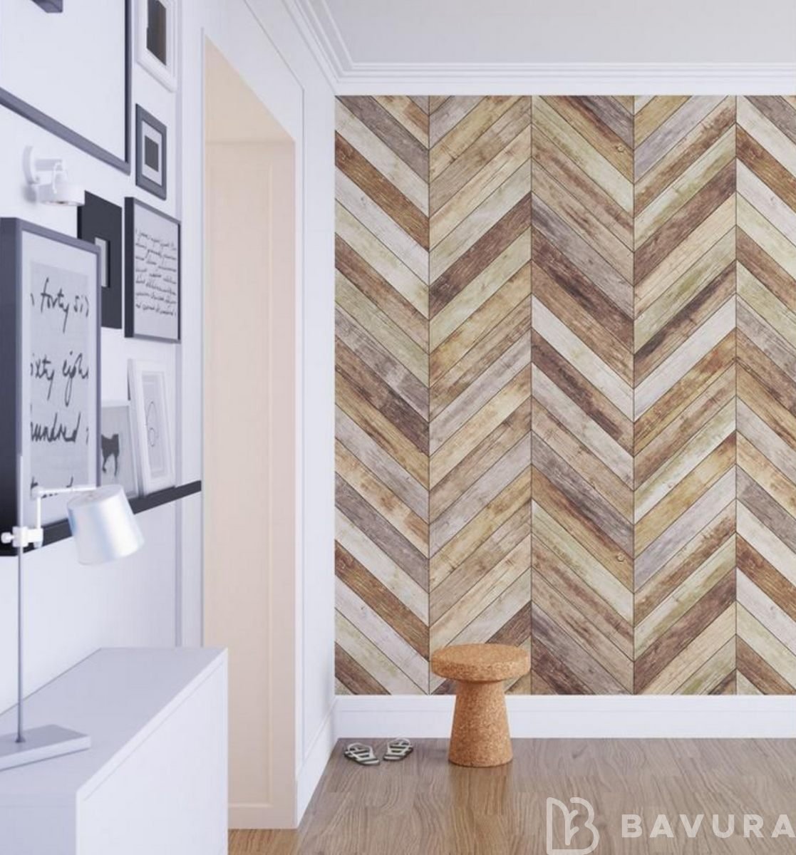 МДФ-панель стильный дом Шеврон выбеленный 1220х2440х3 мм