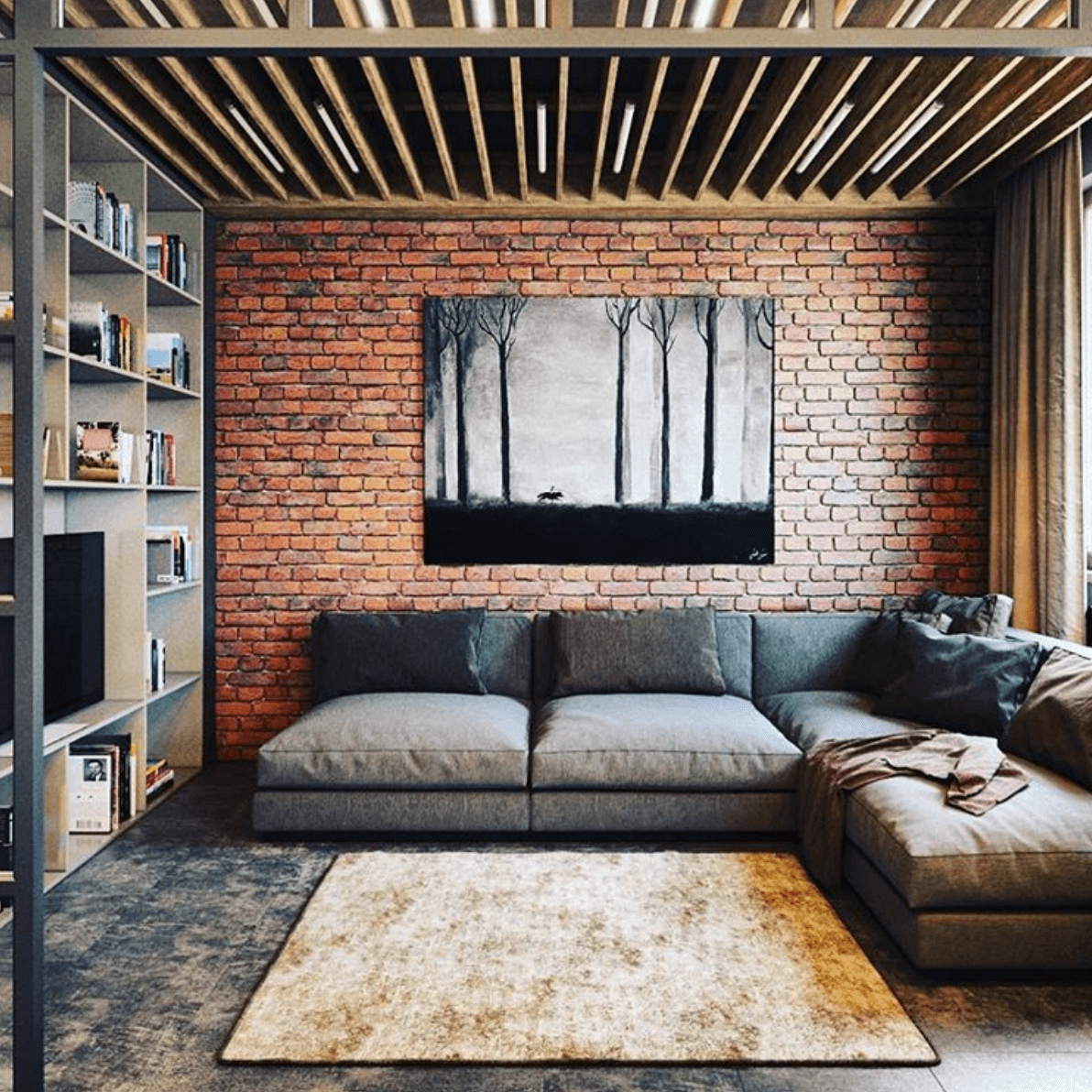Интерьер лофт гостиная 15кв