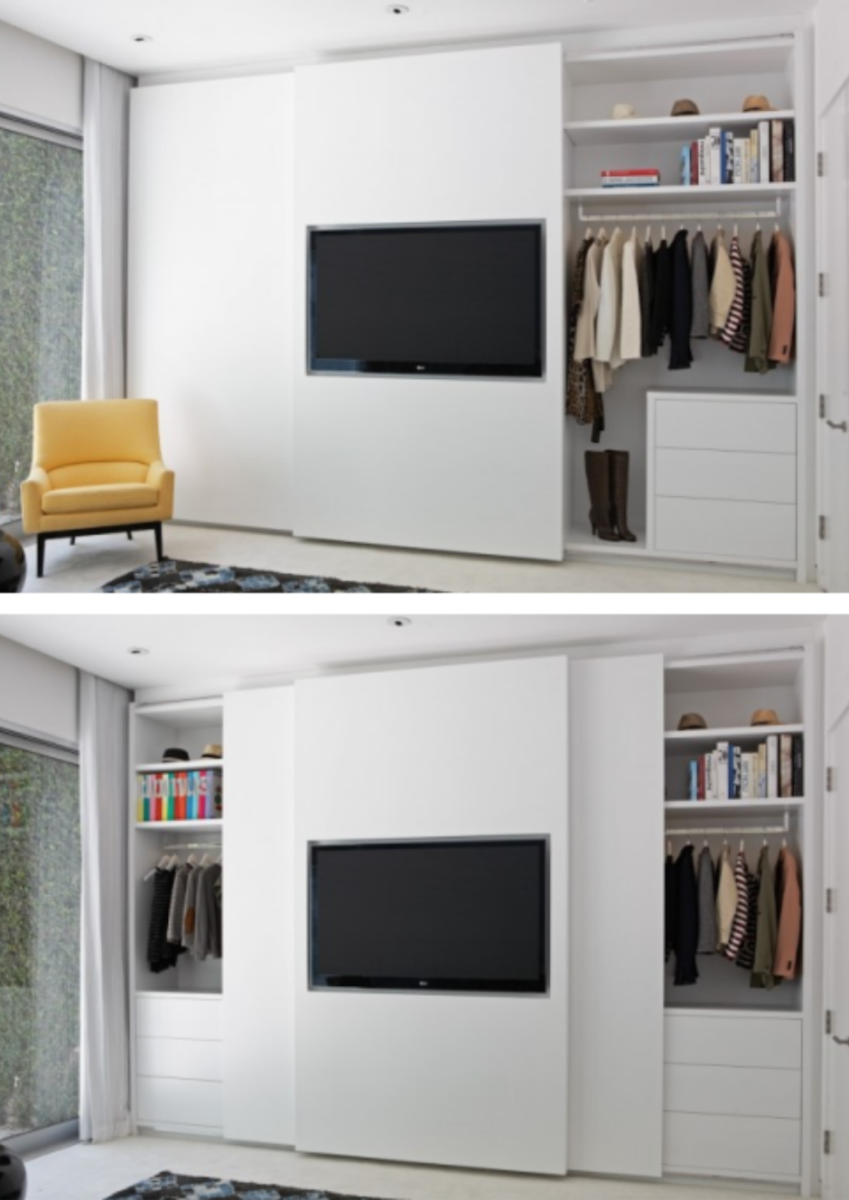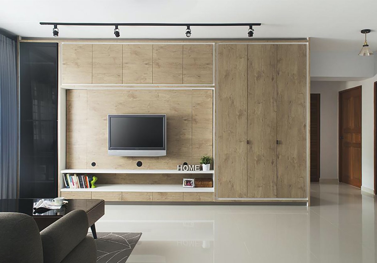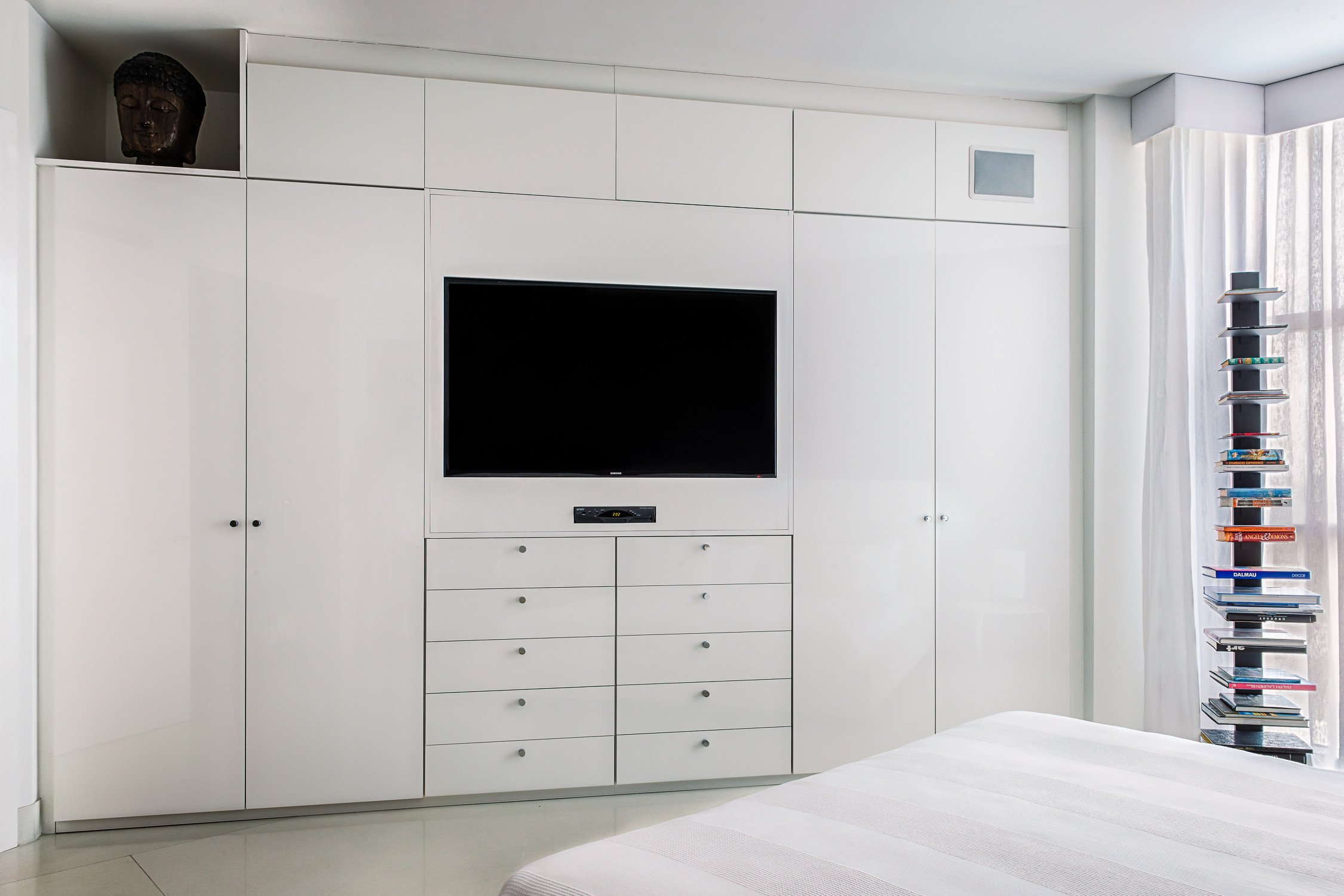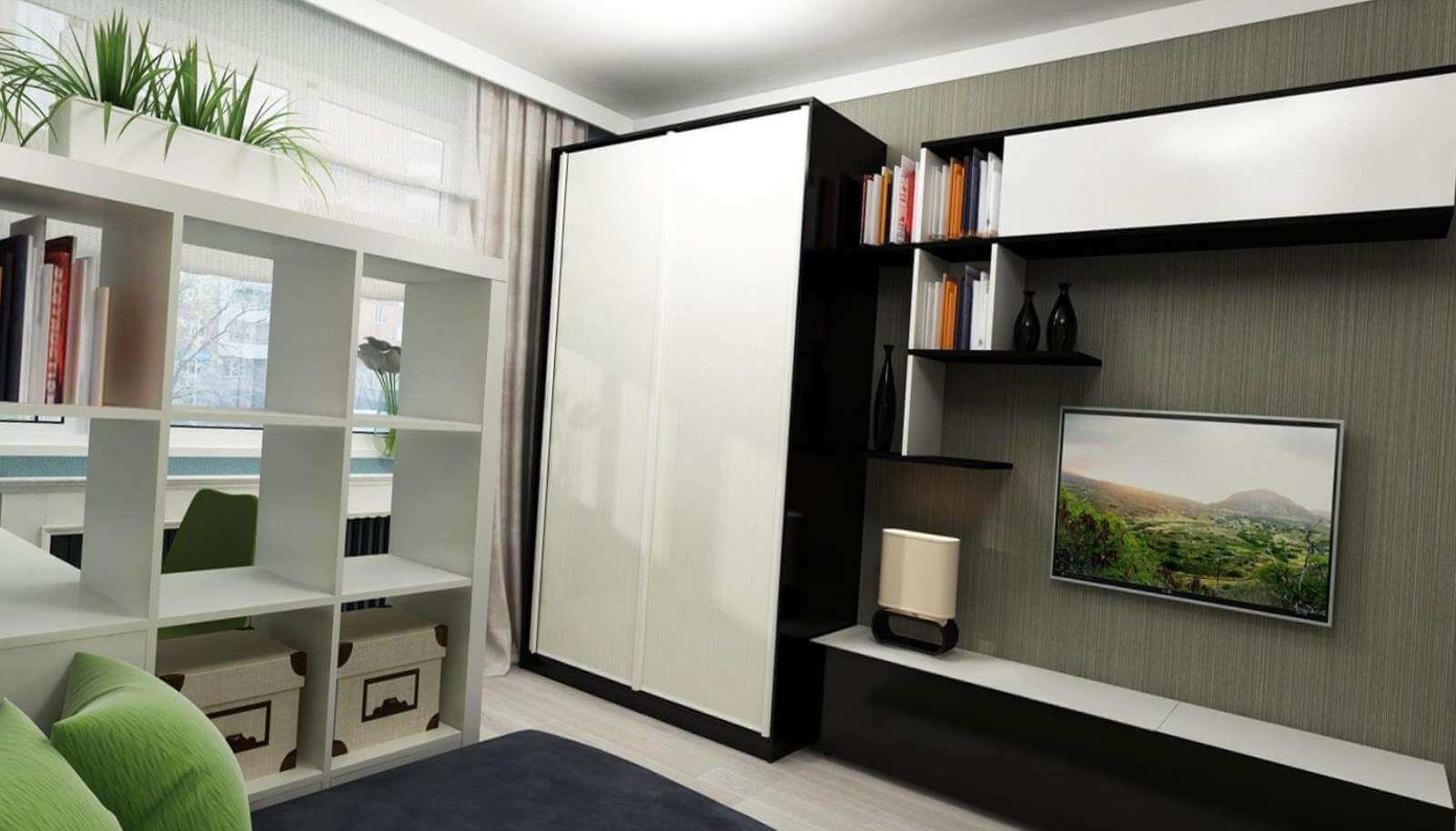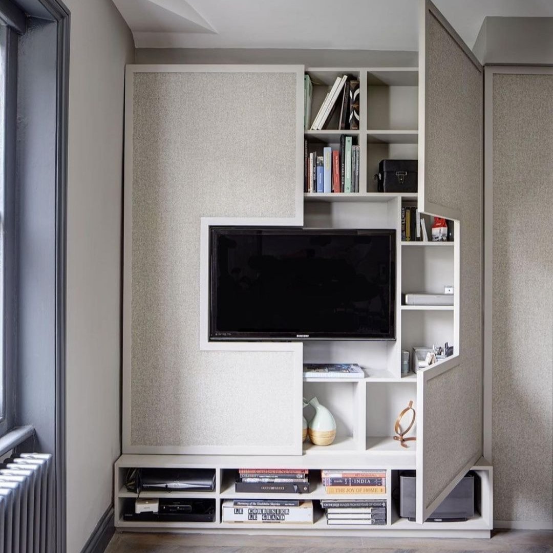 Шкаф с тумбой под телевизор в интерьере гостиной