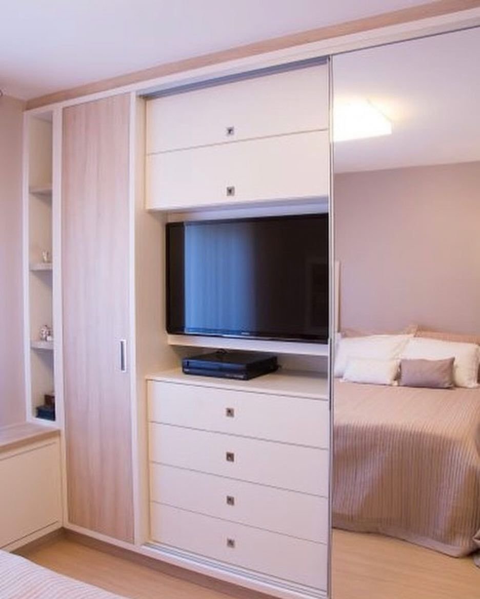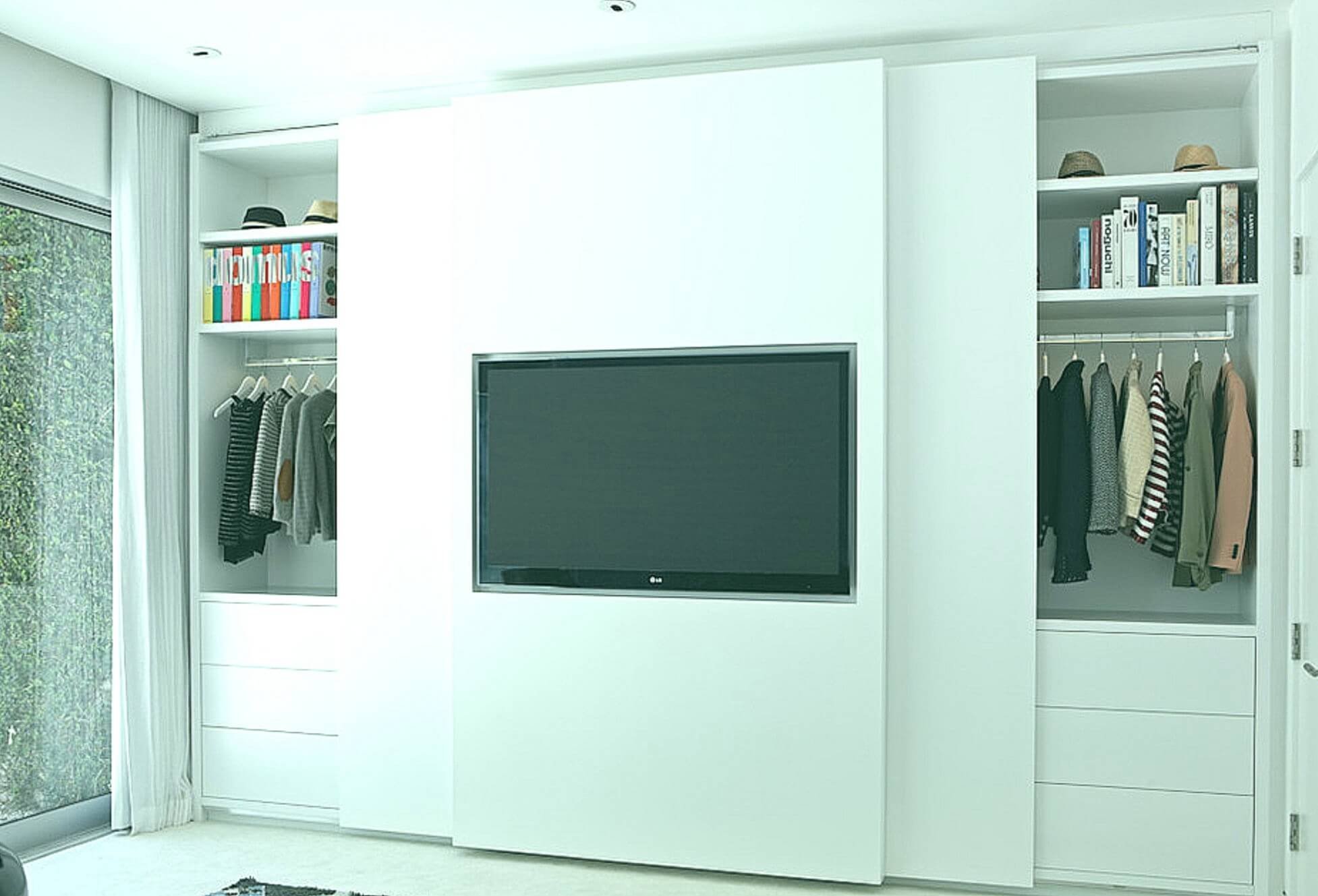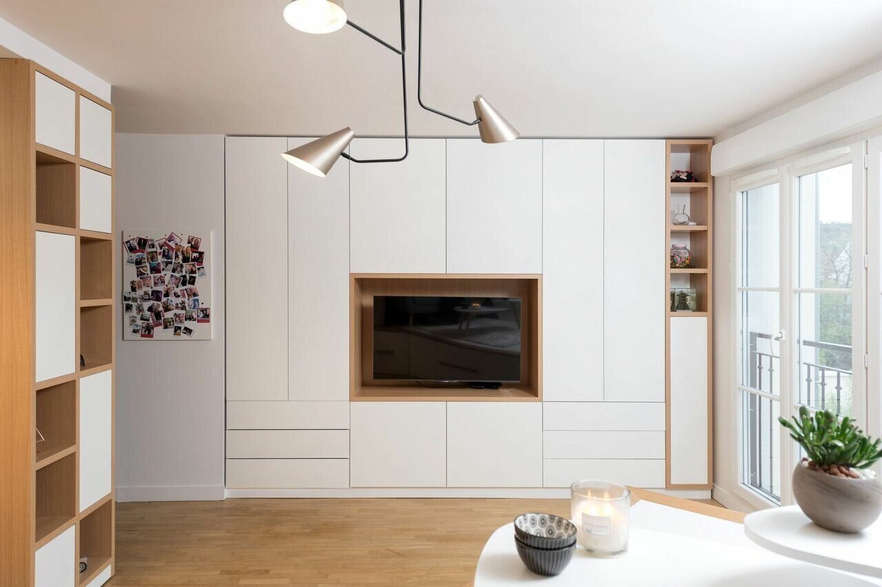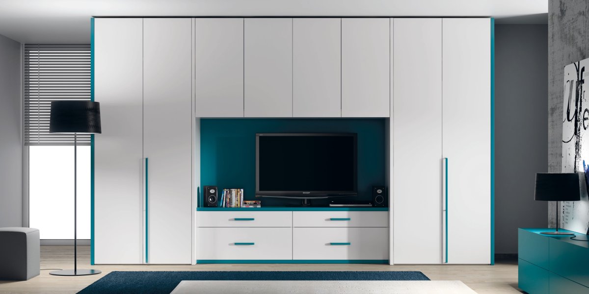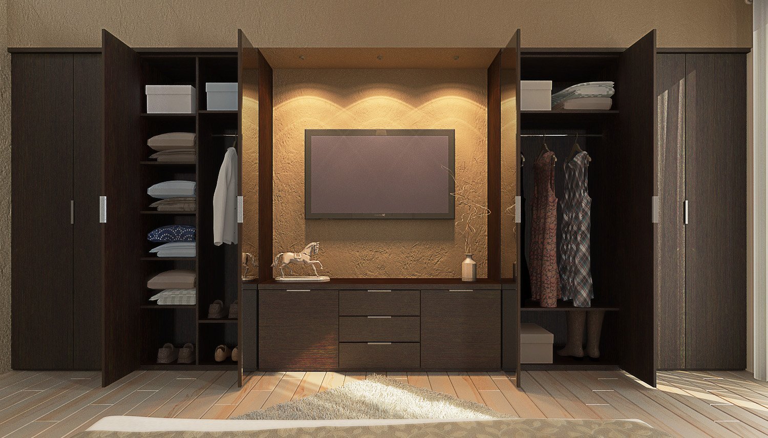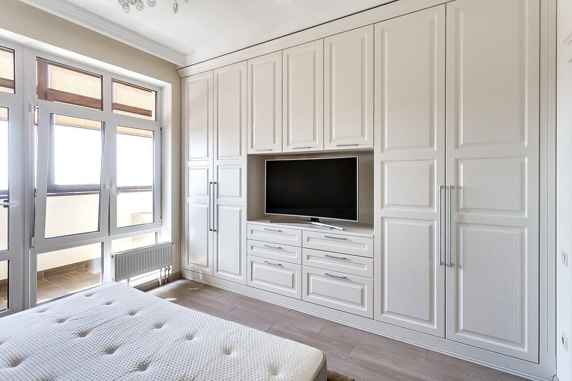 Шкаф с тумбой под телевизор в интерьере гостиной