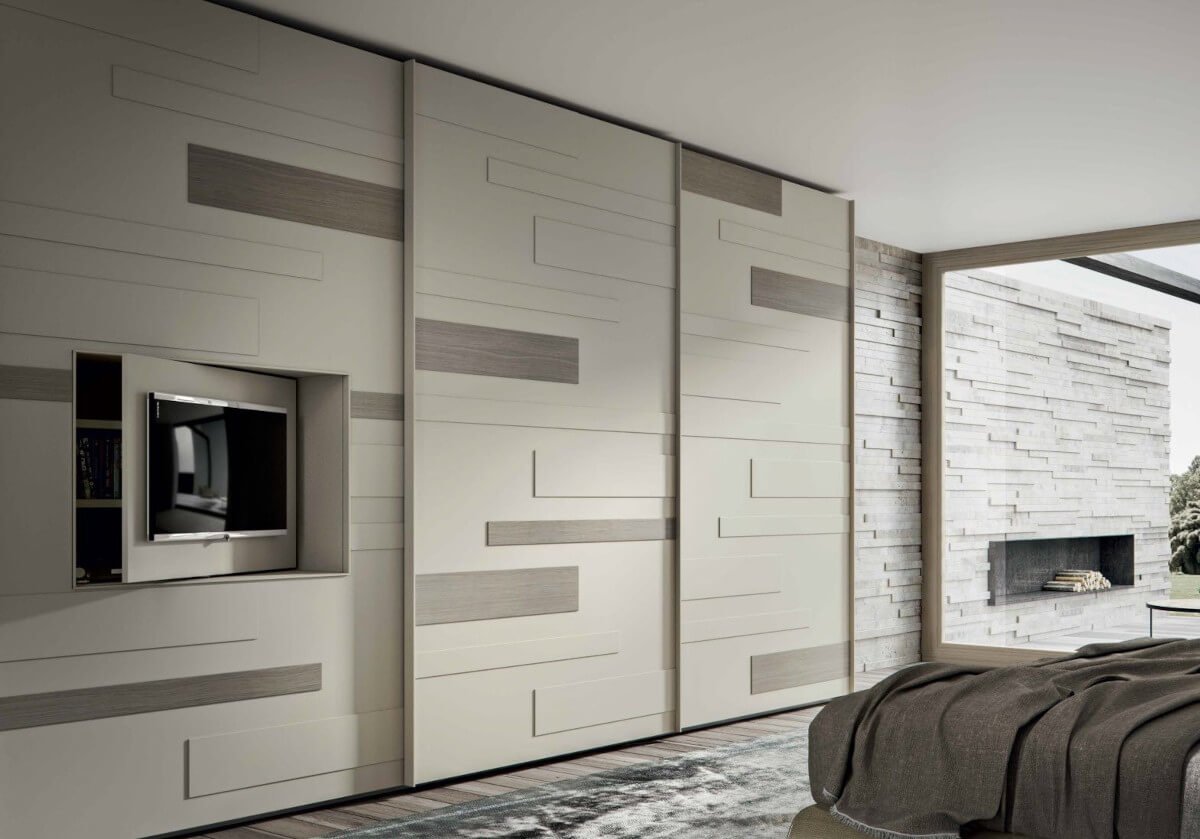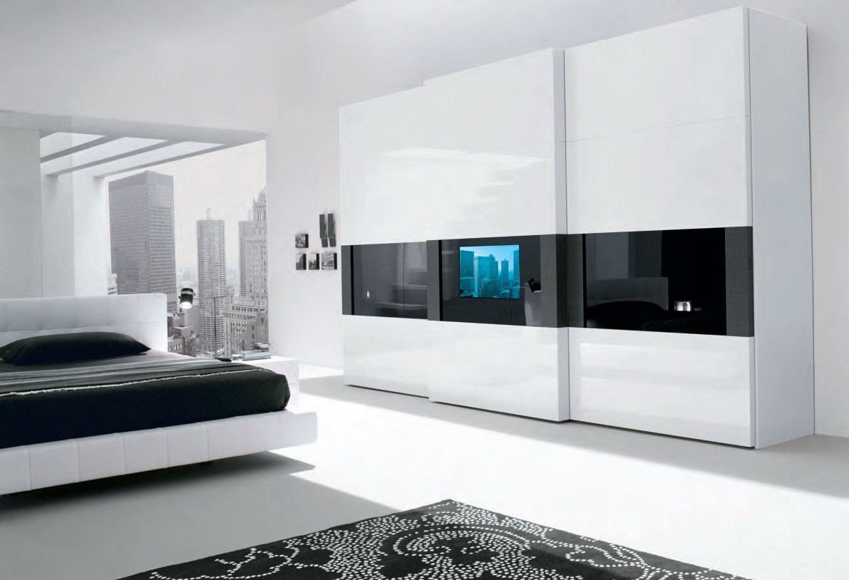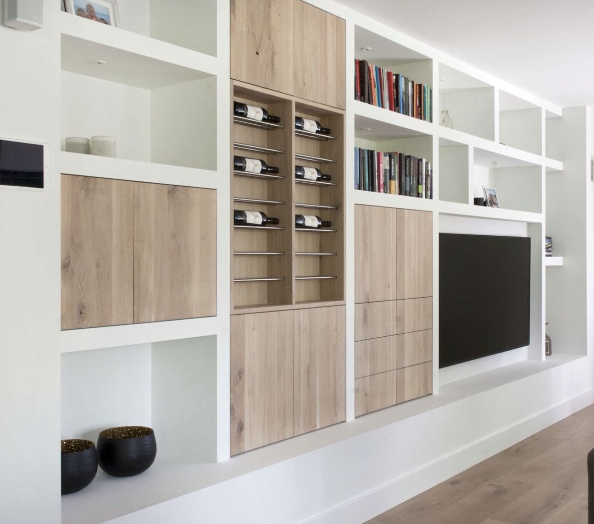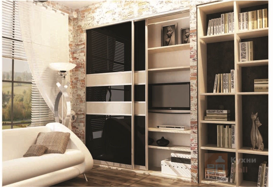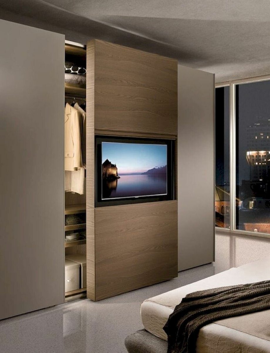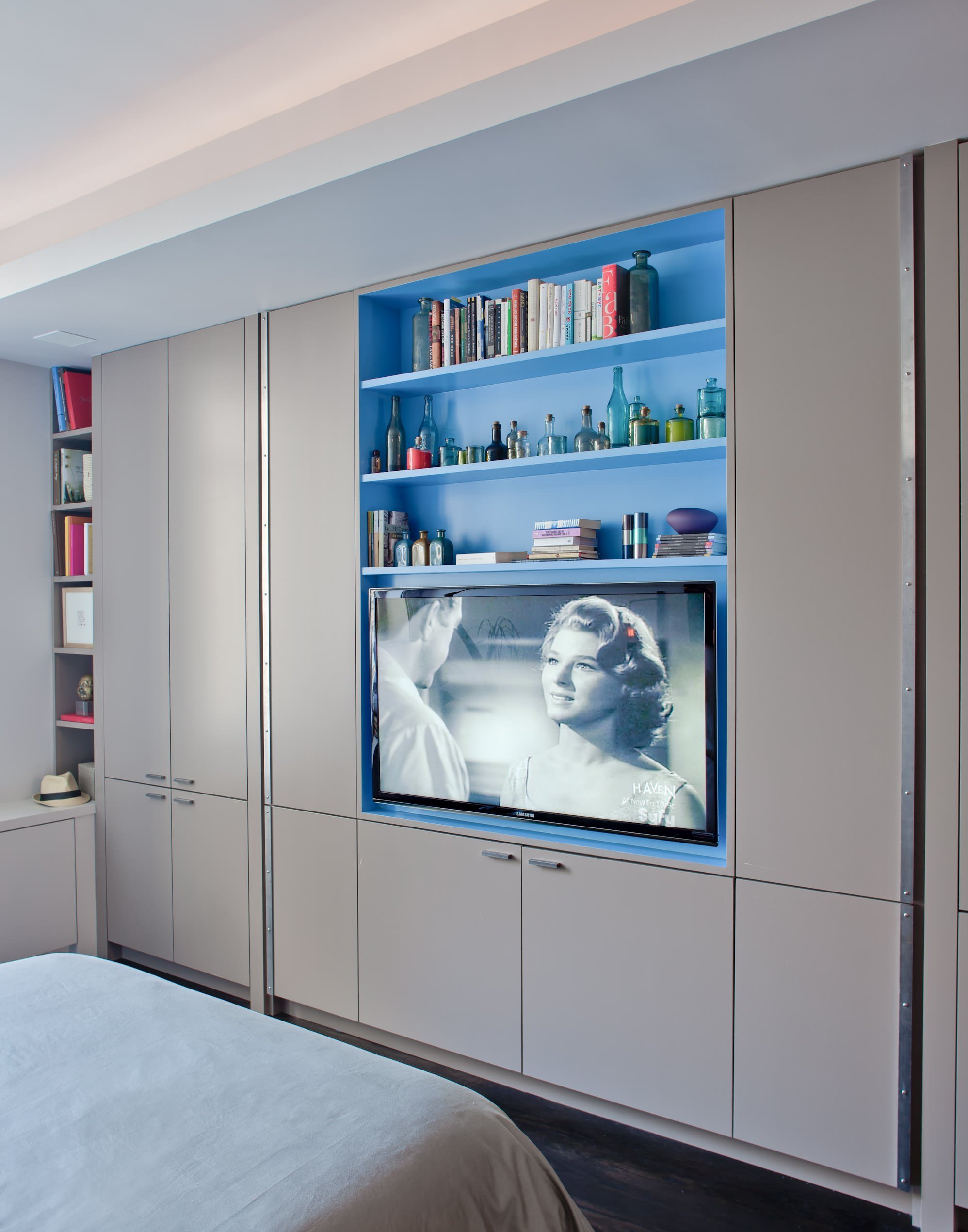 Шкаф с тумбой под телевизор в интерьере гостиной