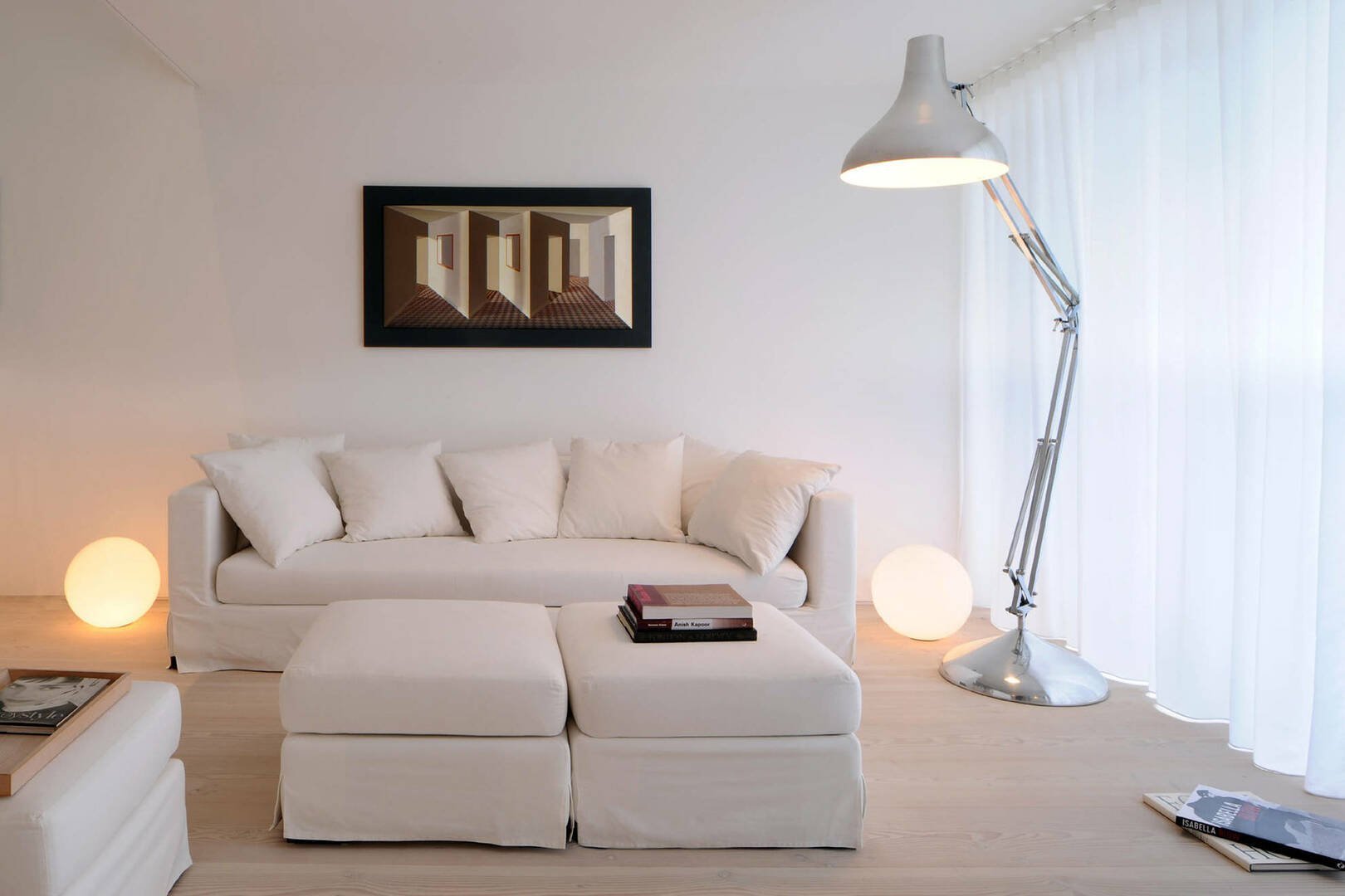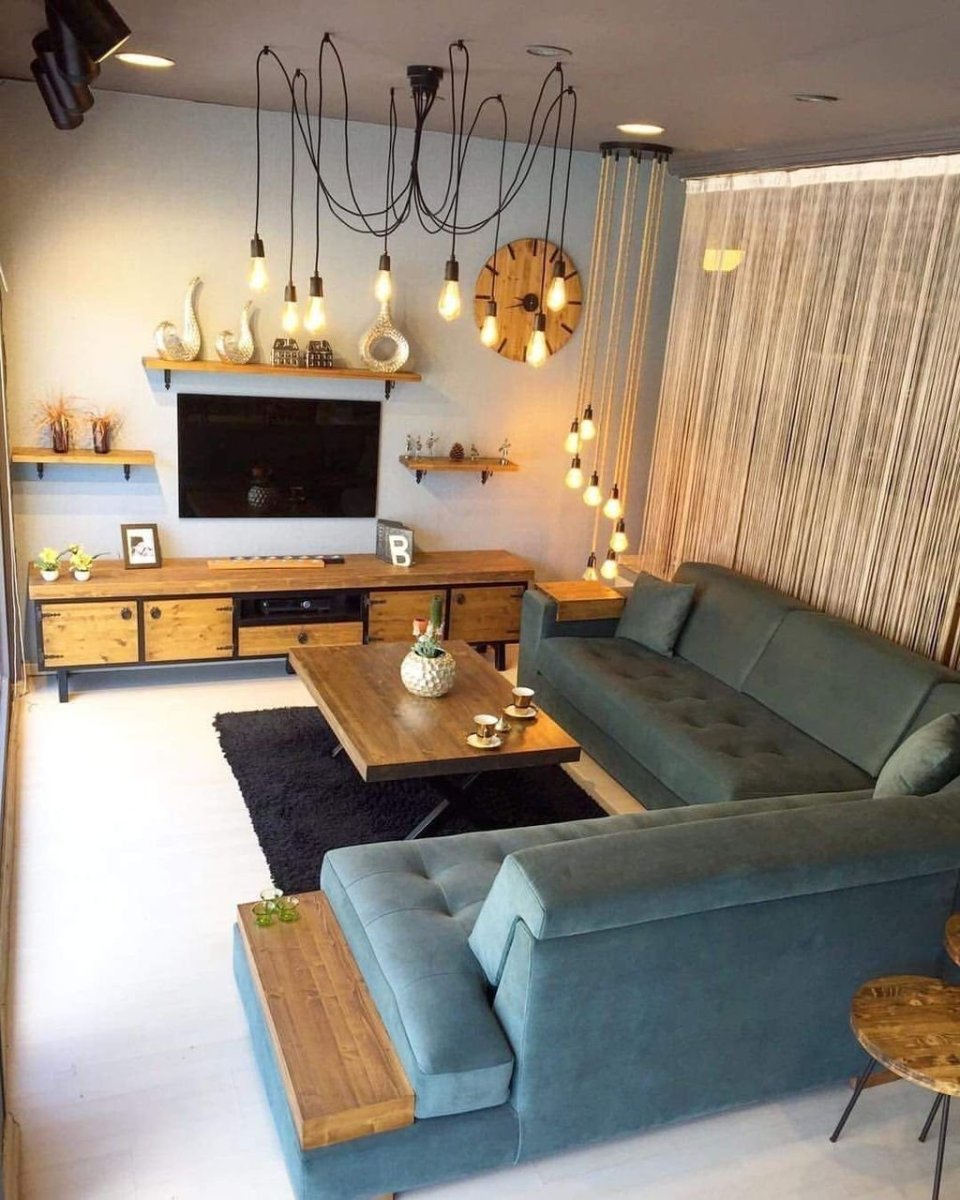 Подвесные светильники над диваном в гостиной