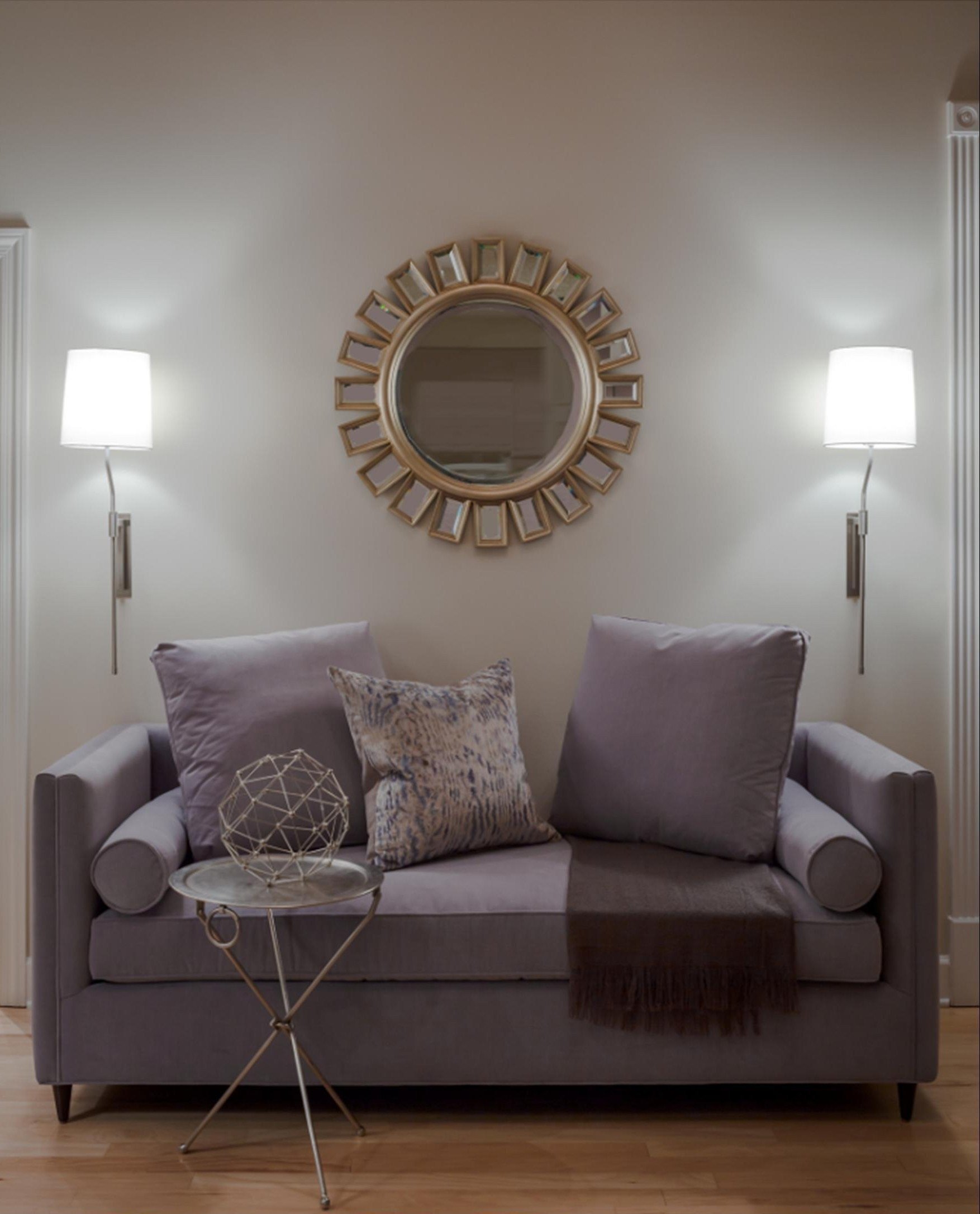 Настенные светильники над диваном
