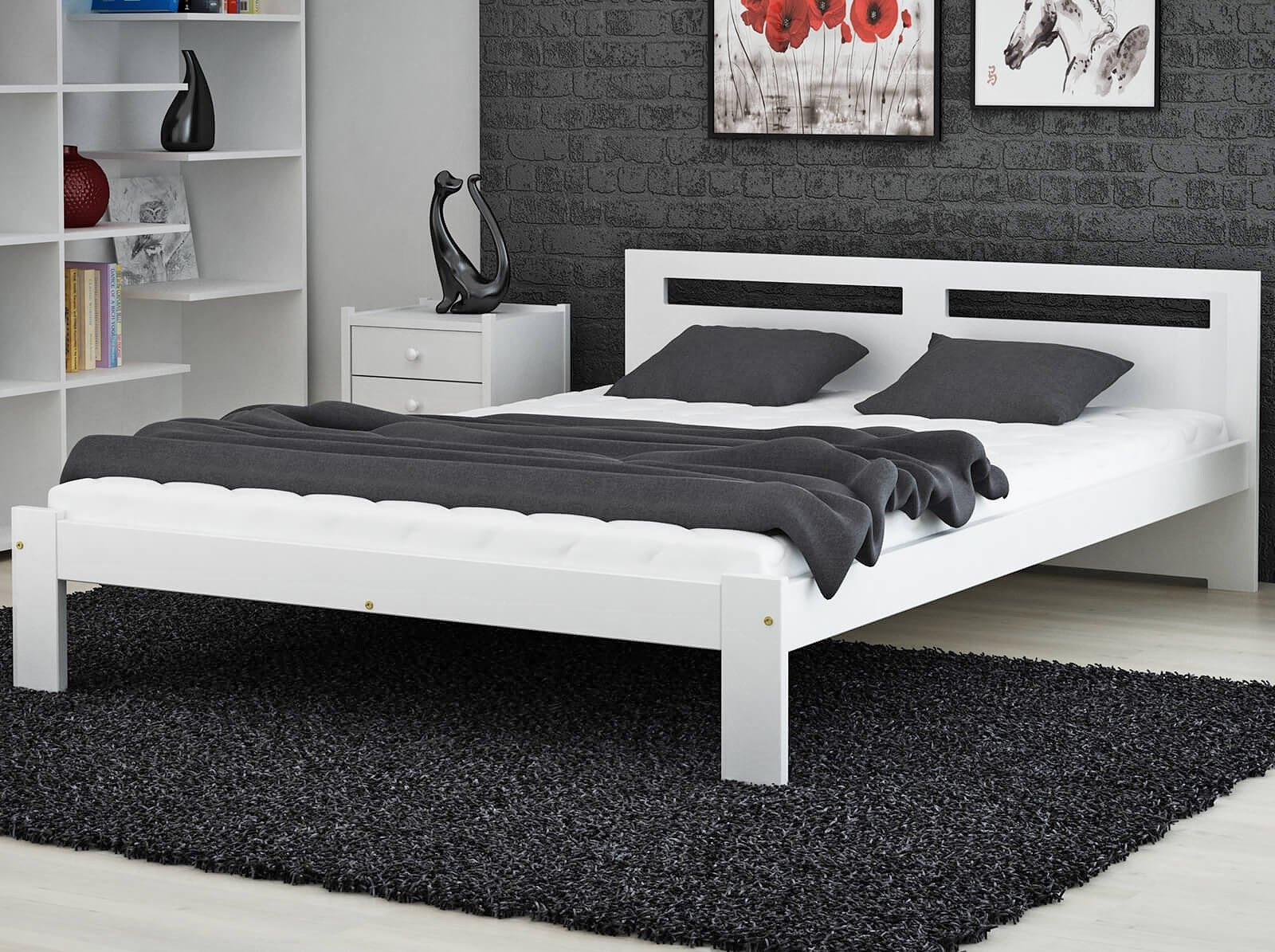 Кровать двуспальная с полками в изголовье