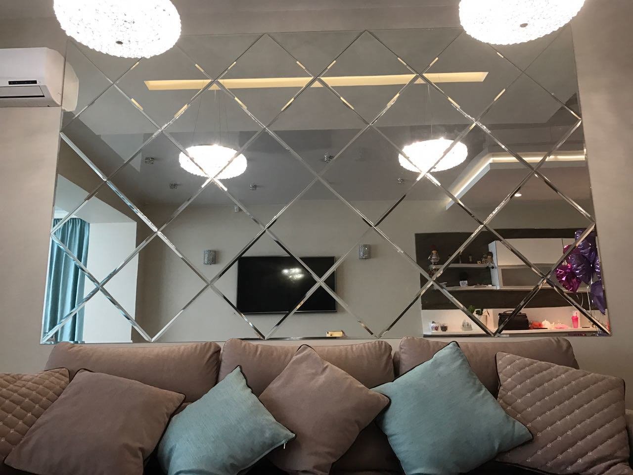 Зеркальное панно в гостиной