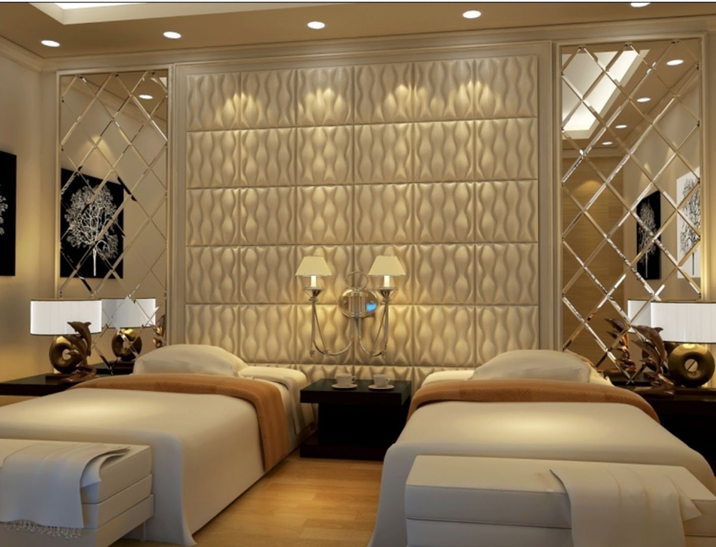 Зеркальное панно в спальне