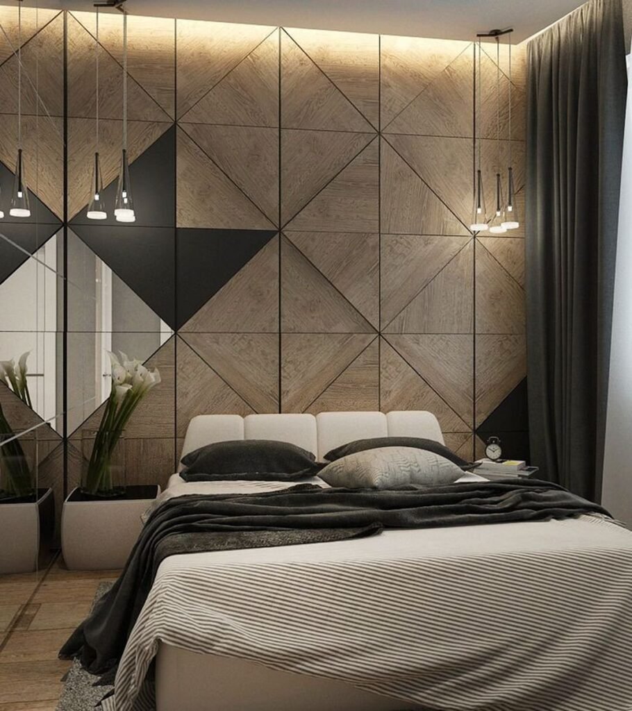 Состаренная зеркальная плитка в спальне