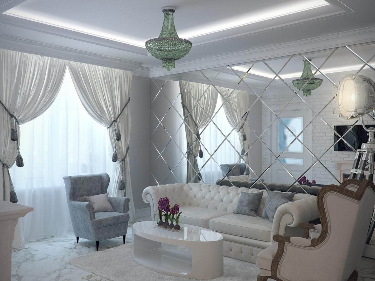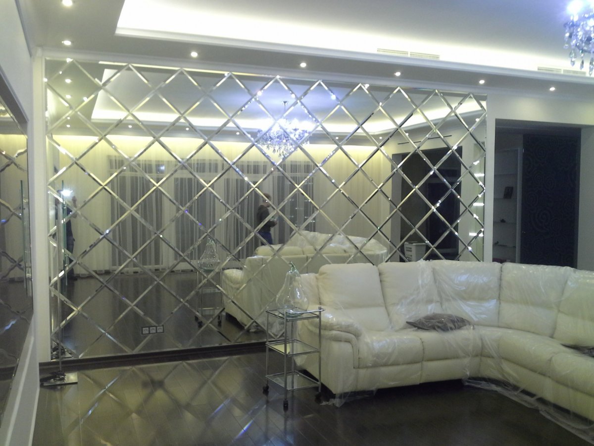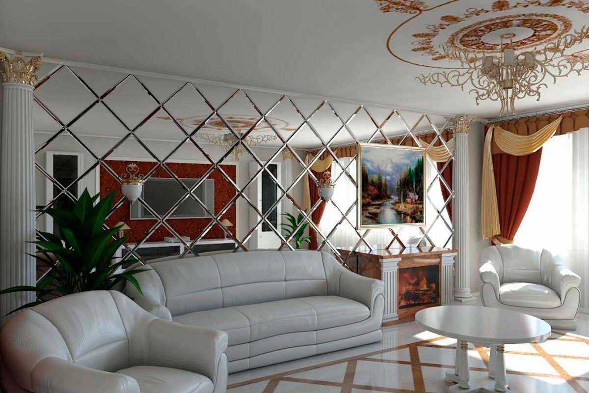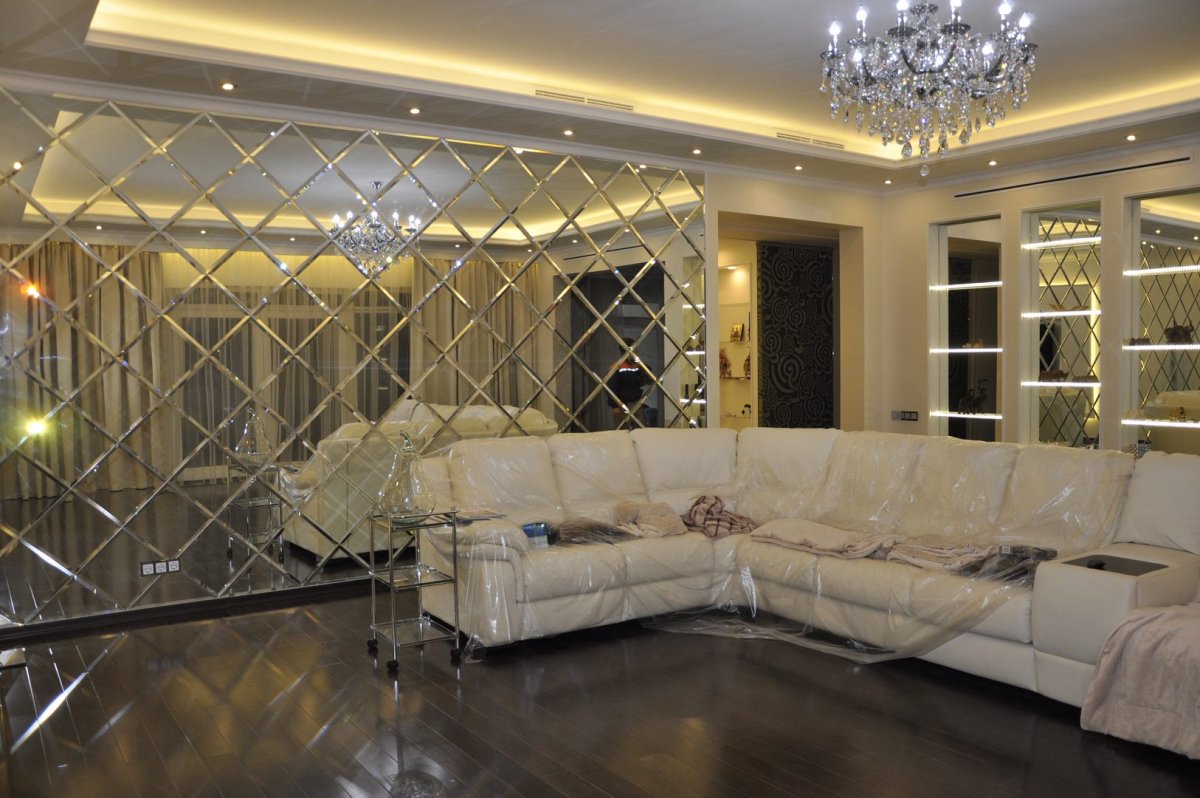 Зеркальные панели в гостиной