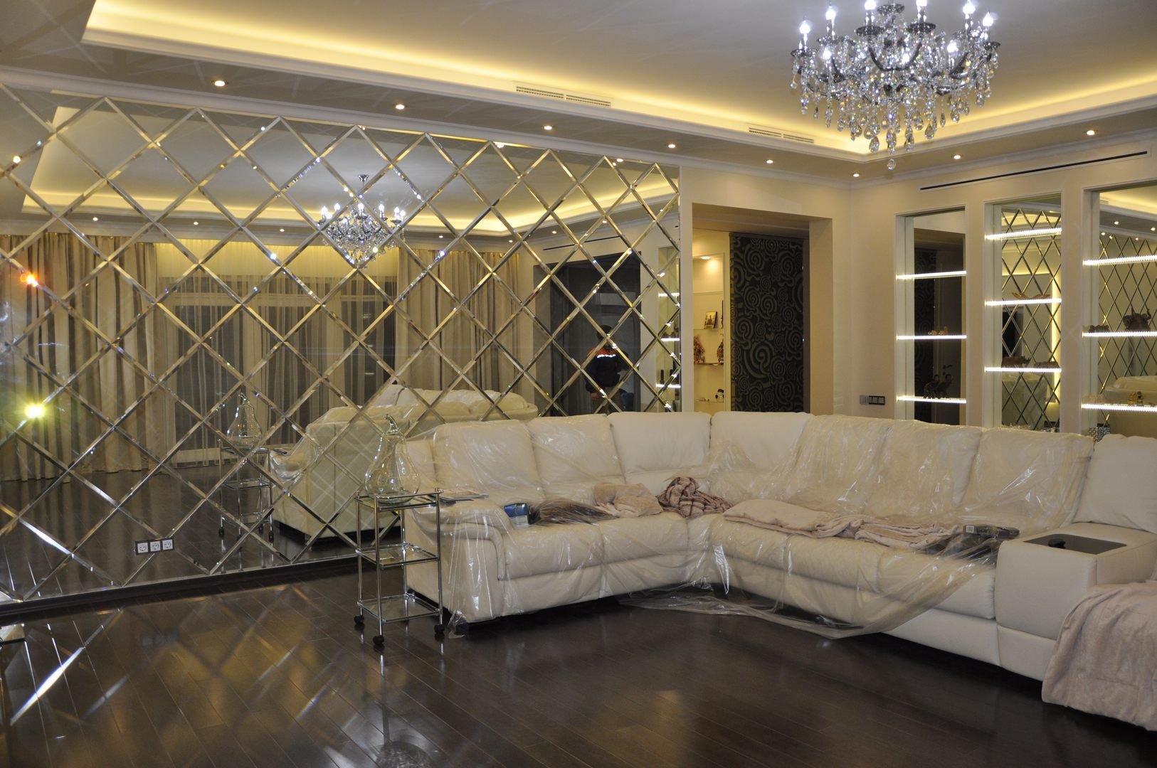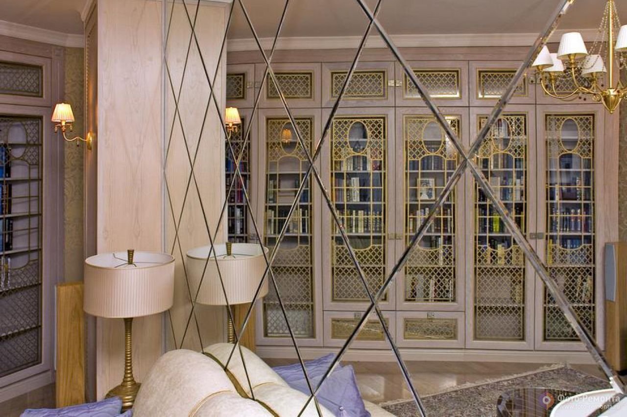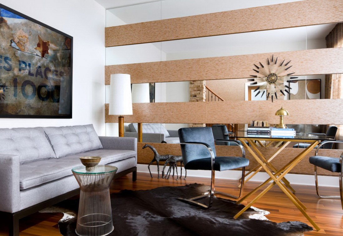 Зеркальные панели в гостиной