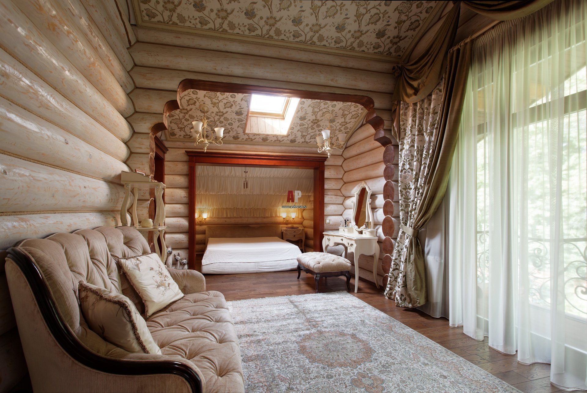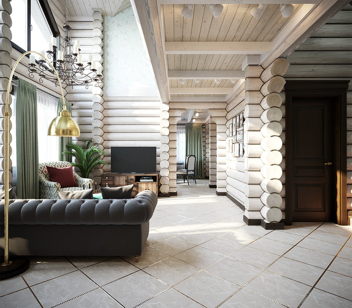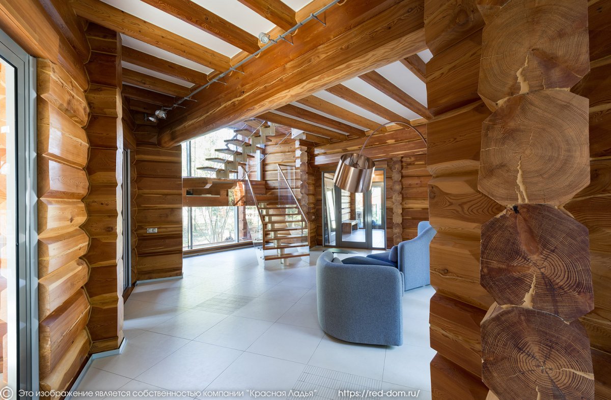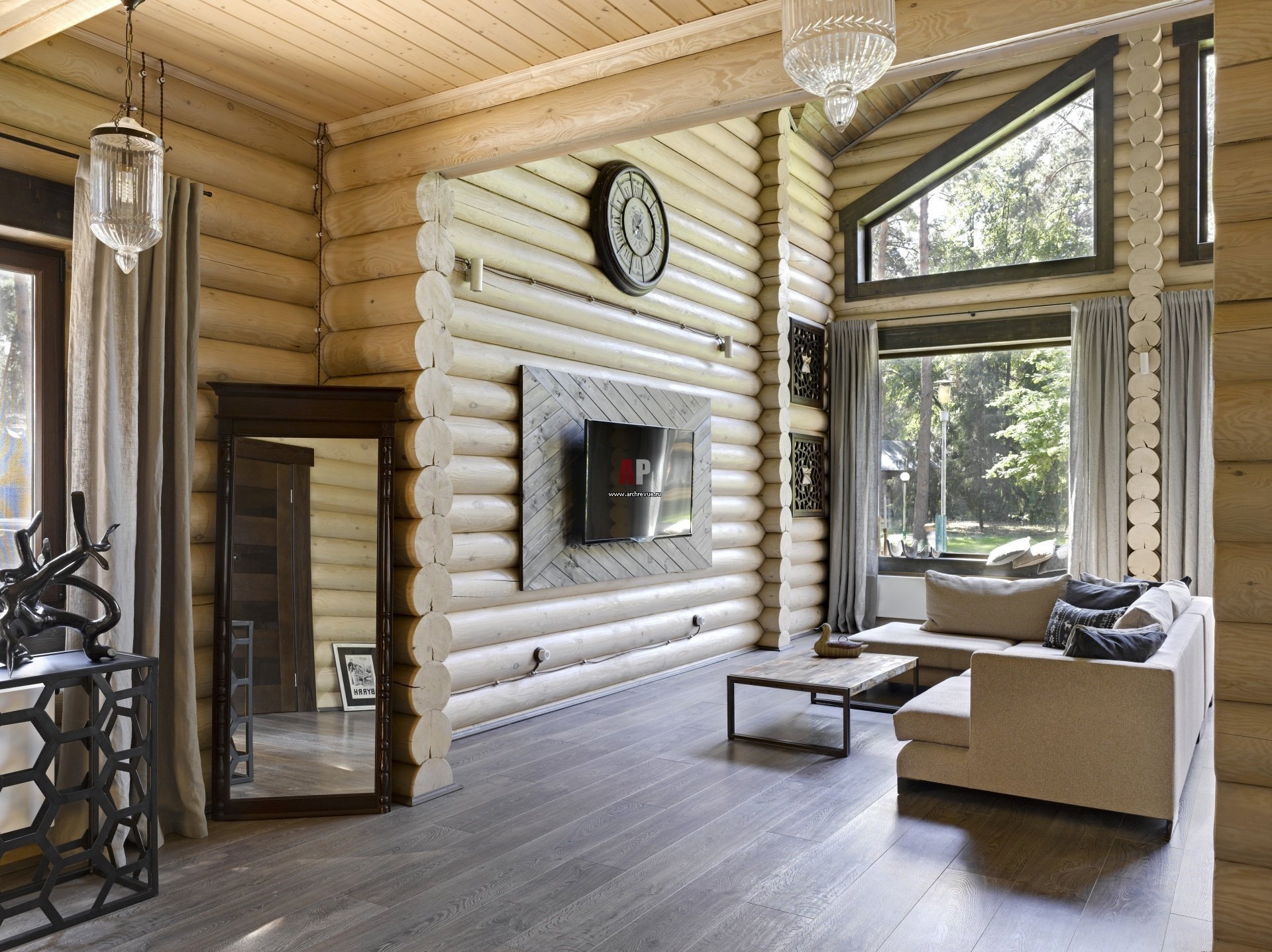 Интерьер дома из оцилиндрованного бревна со вторым светом