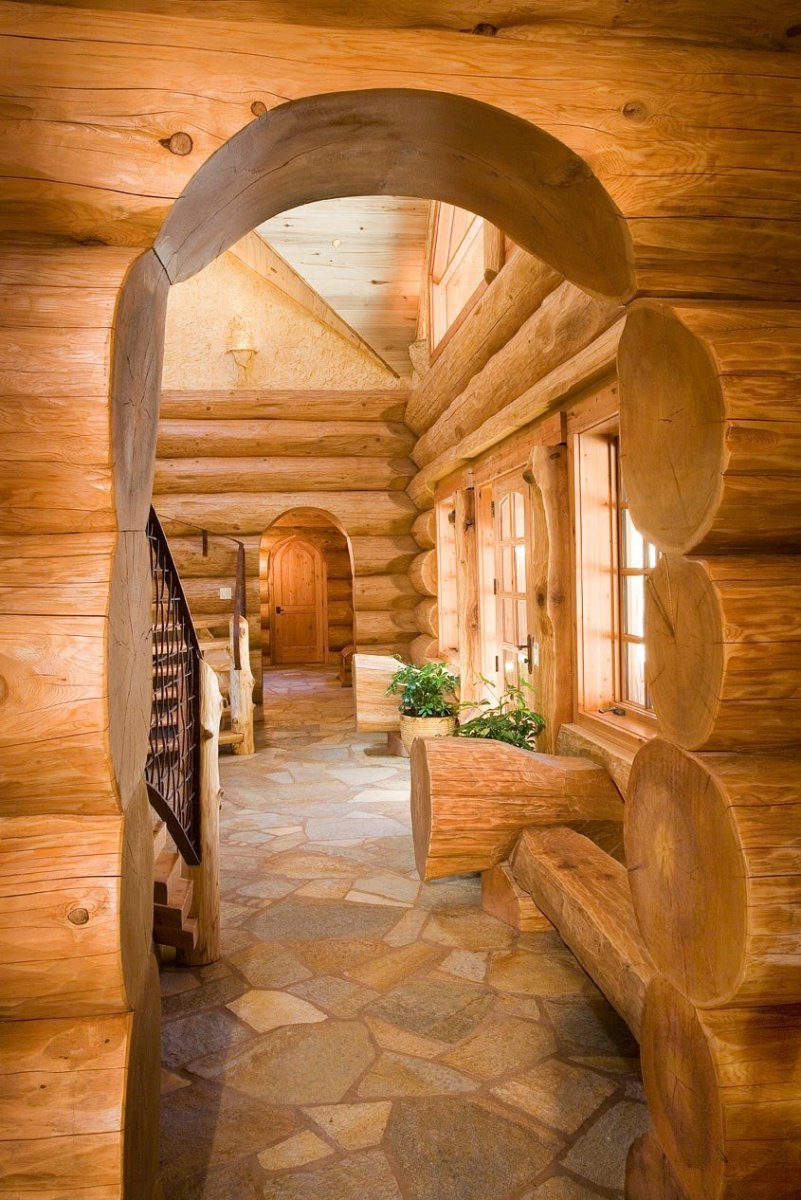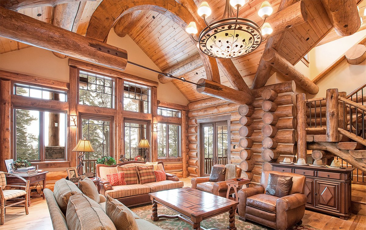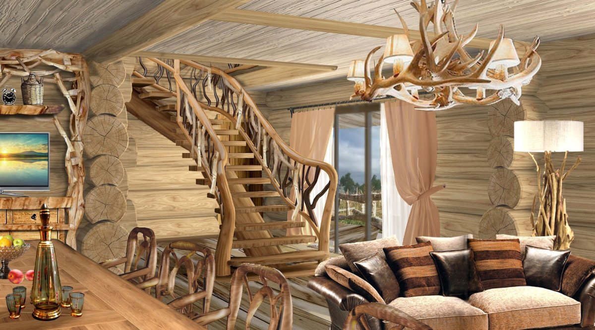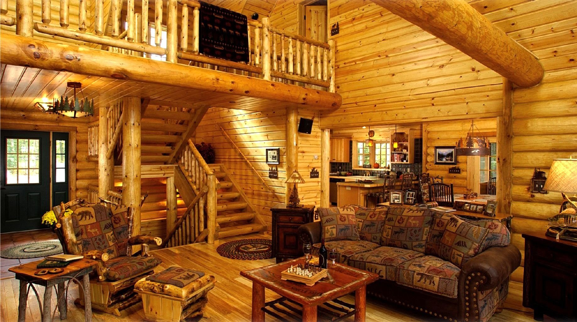 Интерьер дома из оцилиндрованного бревна со вторым светом