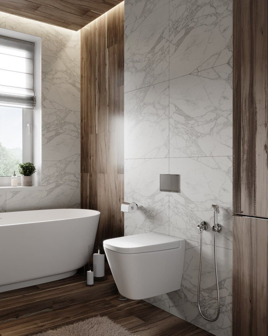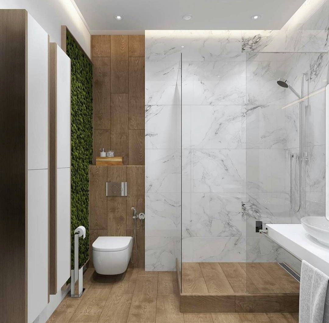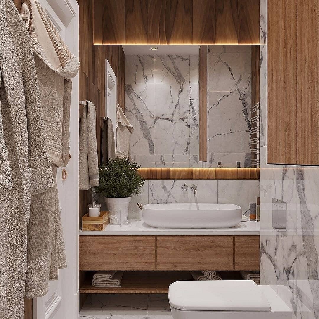 Санузел под мрамор с деревом