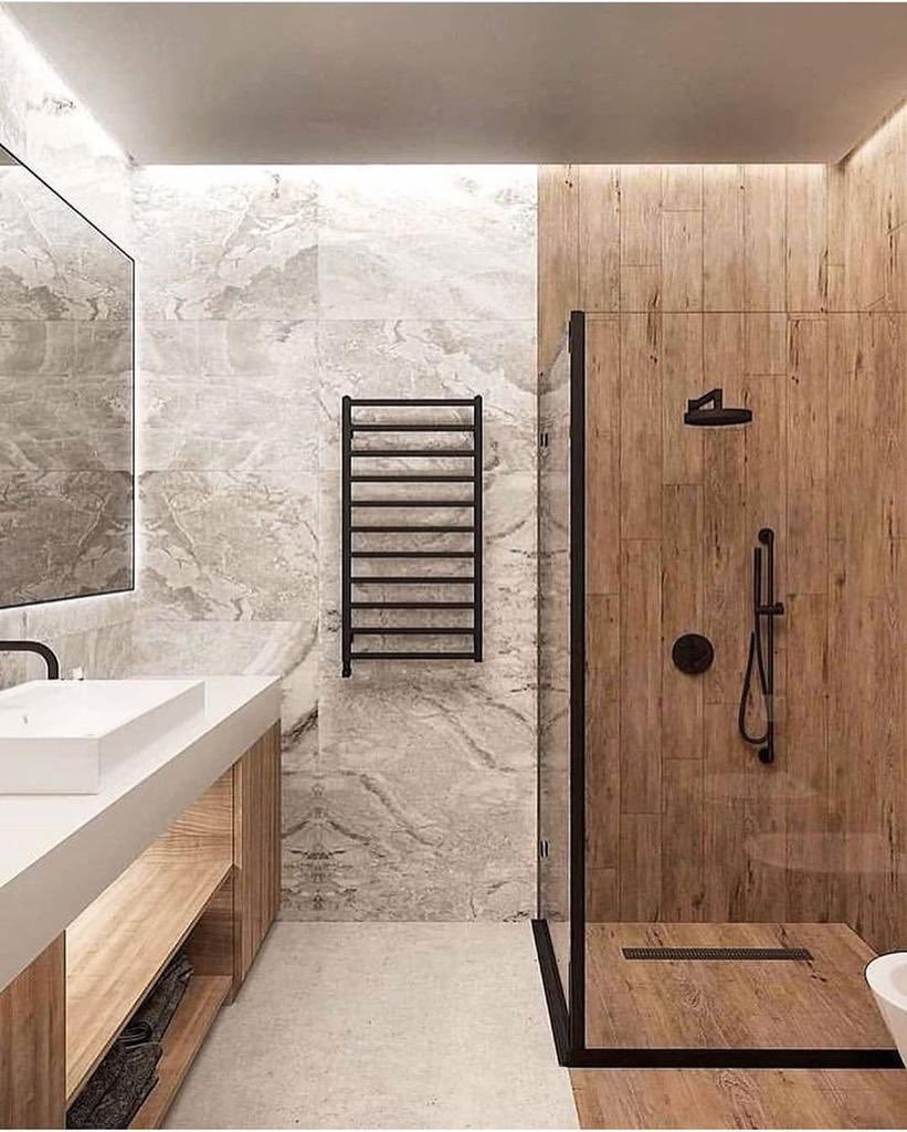Плитка в ванную мрамор и дерево