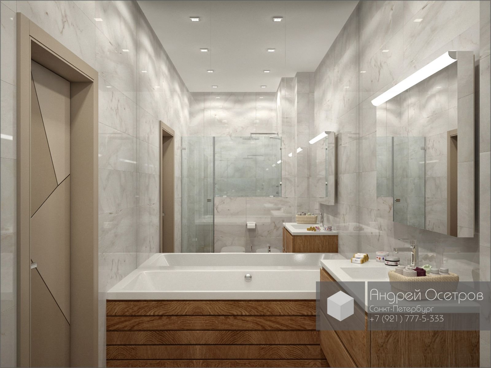 Ванная под мрамор и дерево