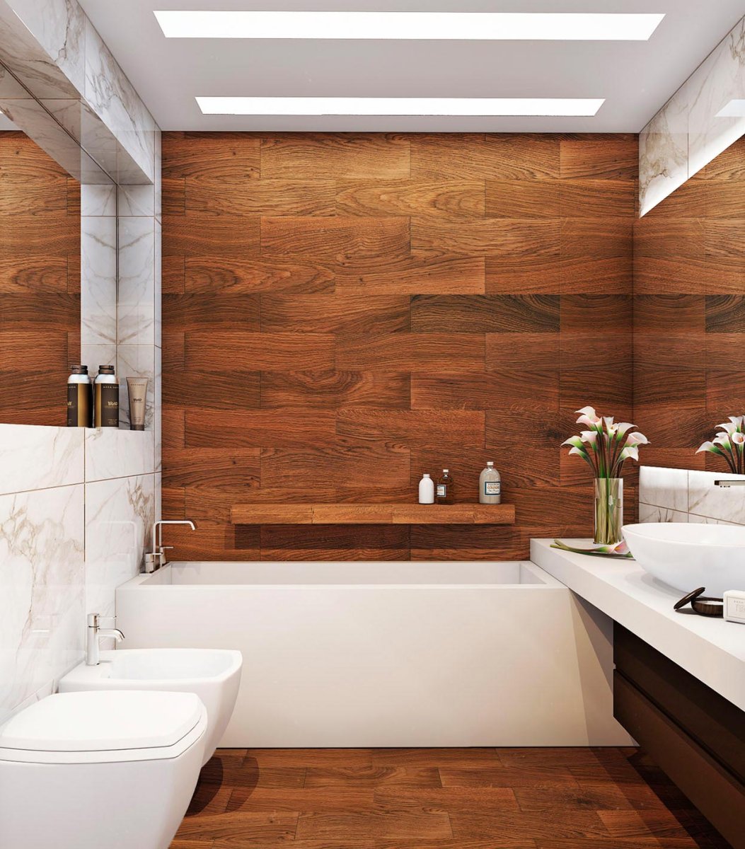 Ванная с отделкой под дерево