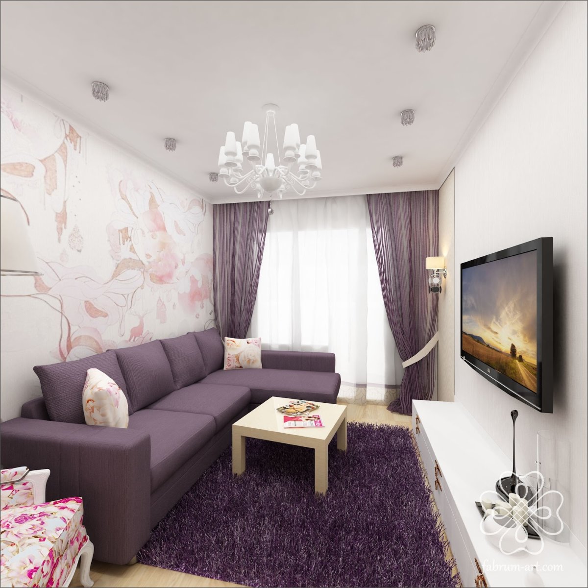 Интерьер комнаты 18 кв.м в сиреневых тонах