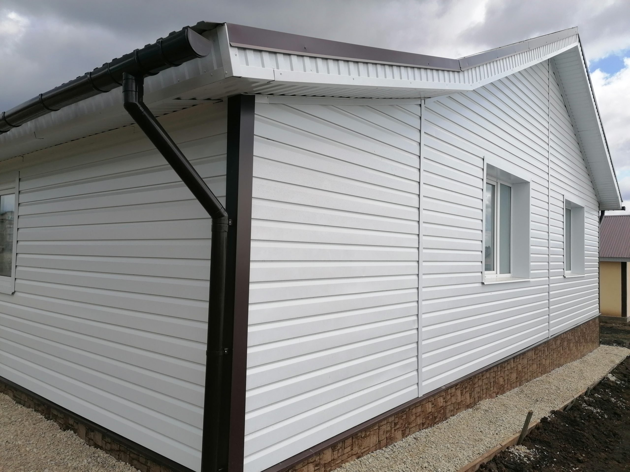 Дом обшитый белым профлистом