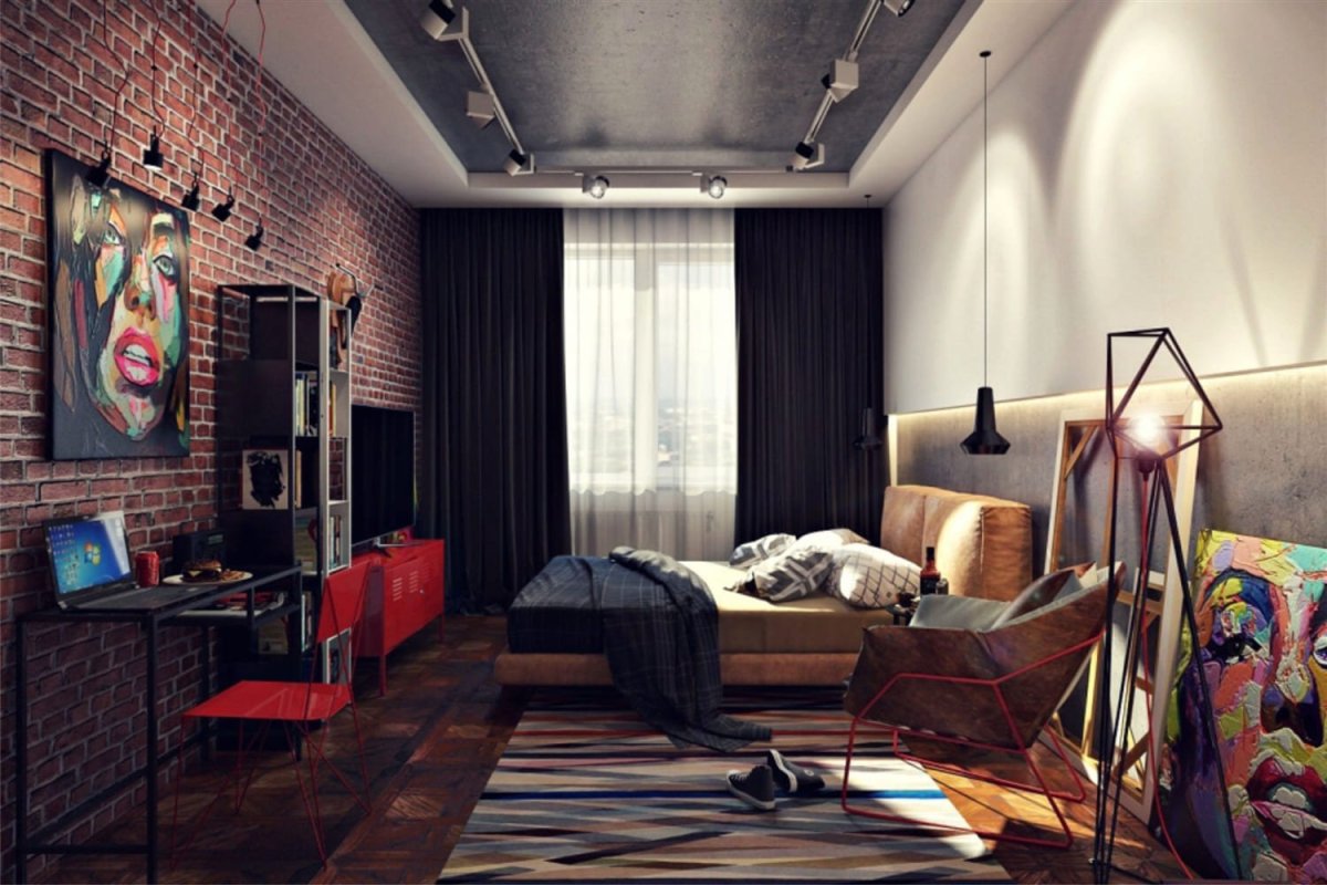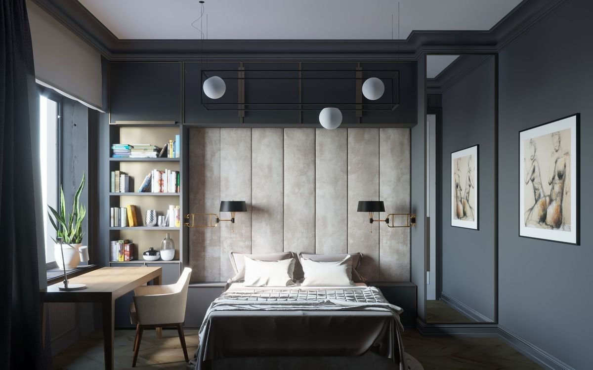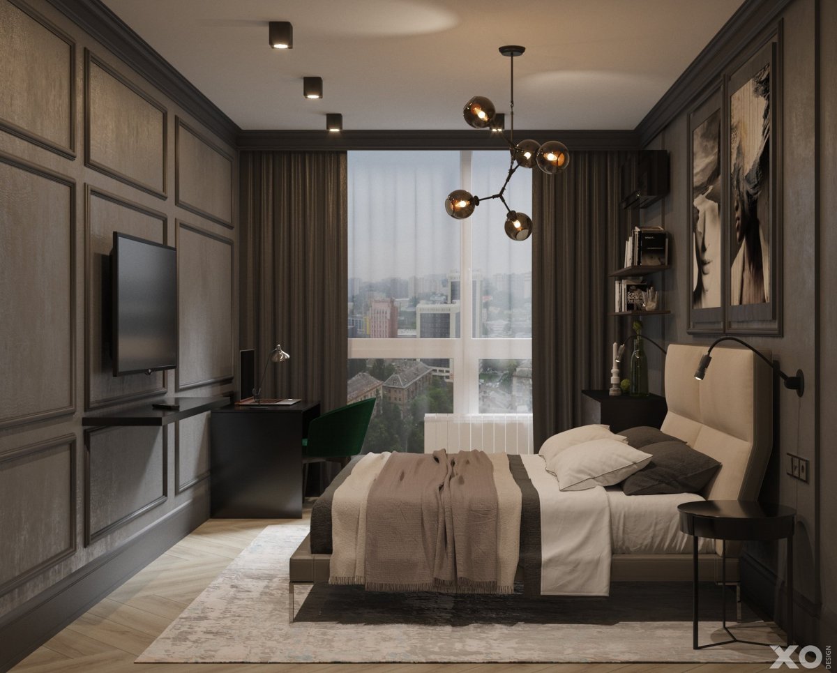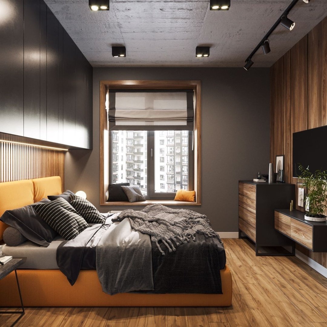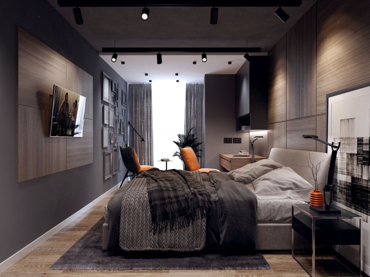Интерьер мужской спальни в квартире со стандартной планировкой