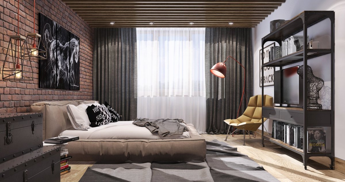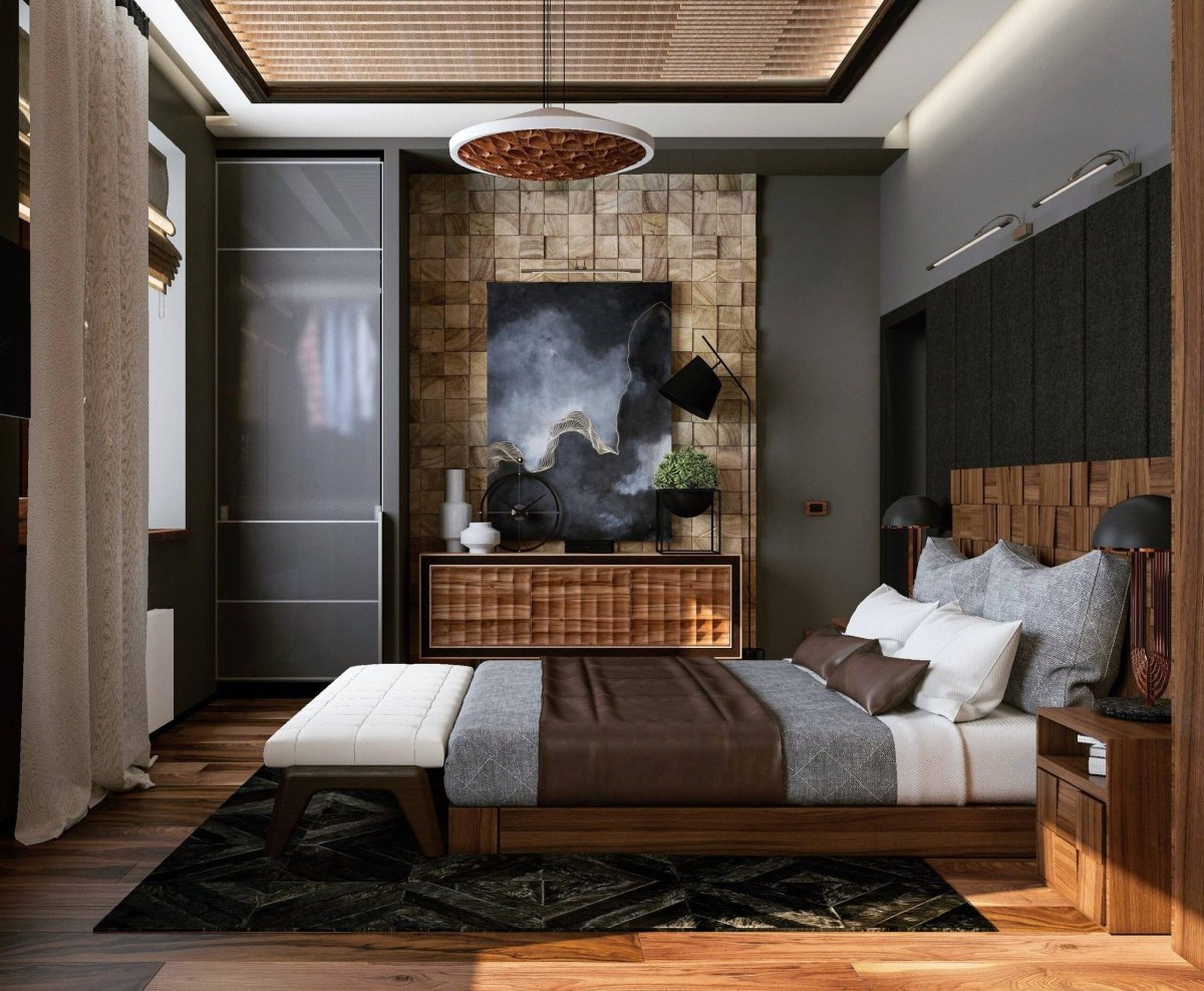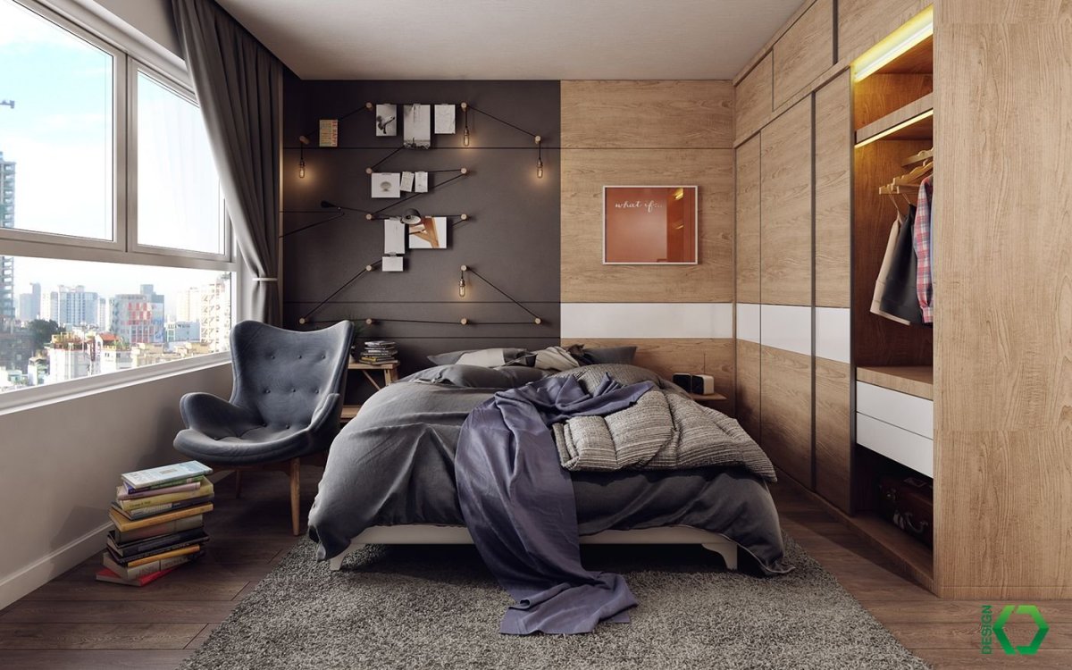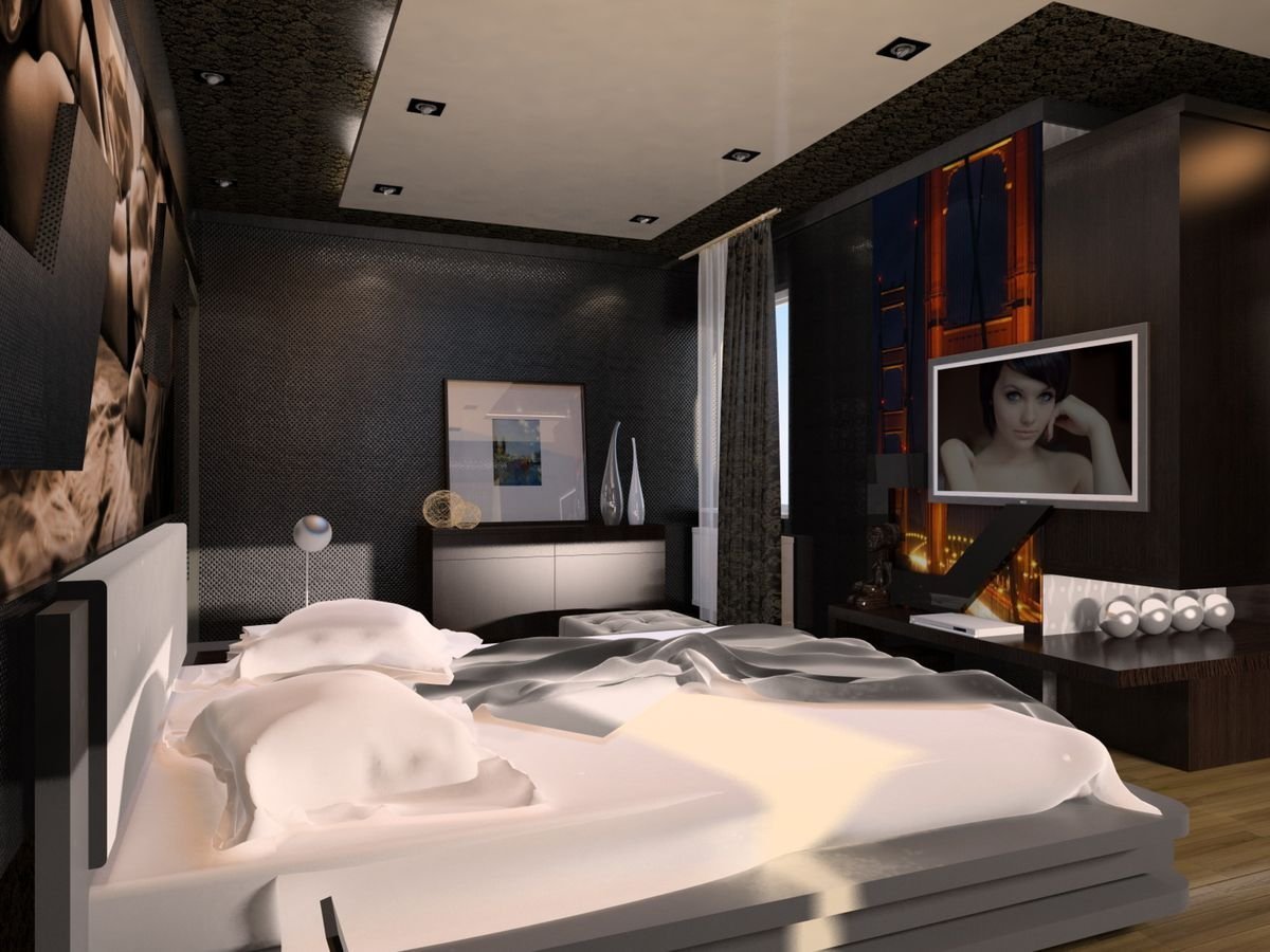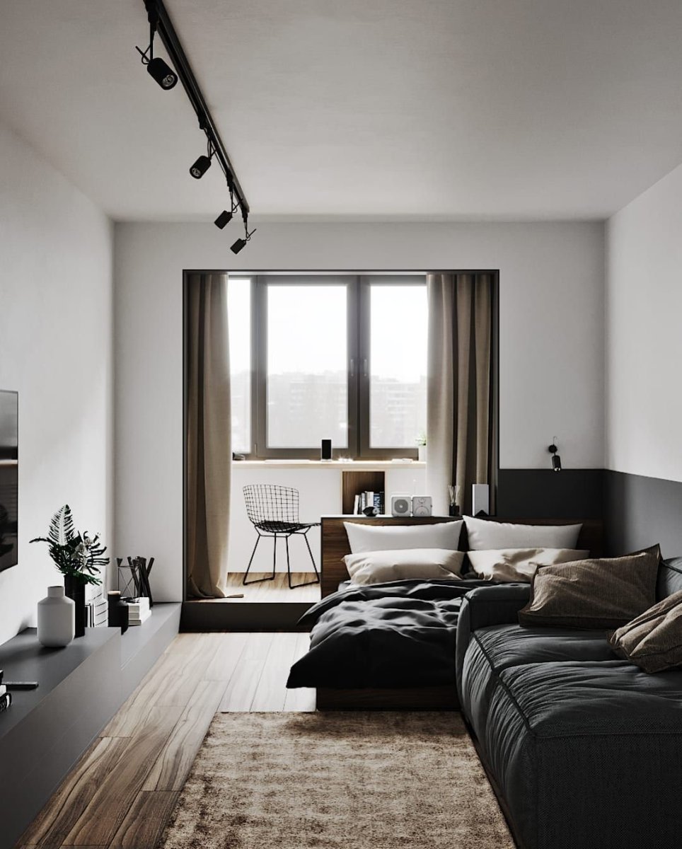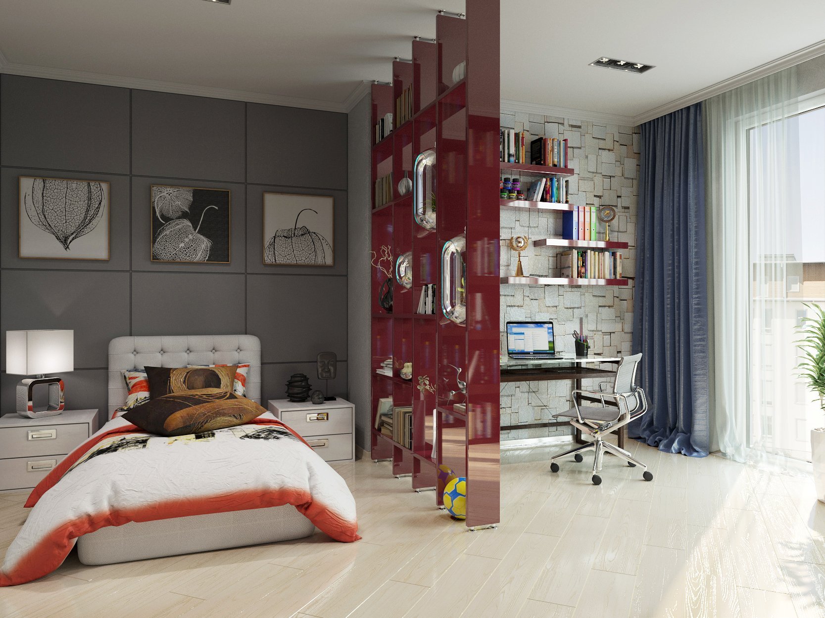 Интерьер мужской спальни в квартире со стандартной планировкой