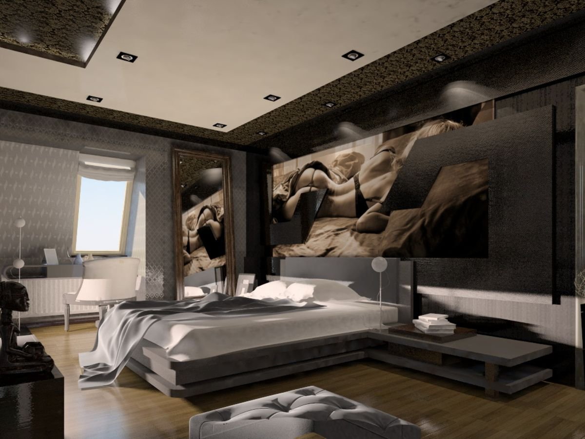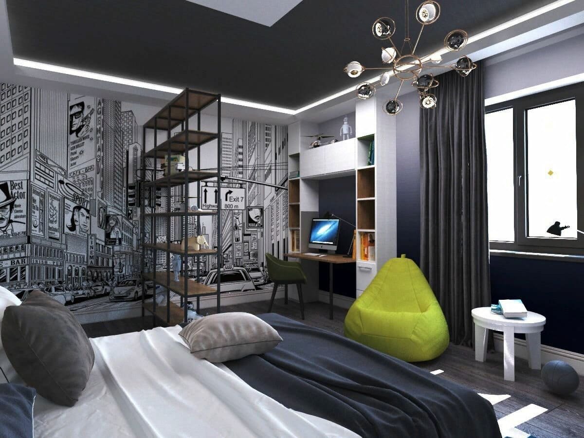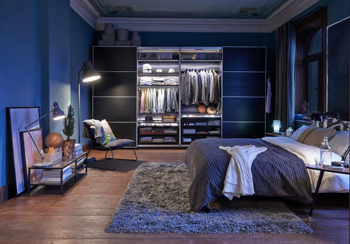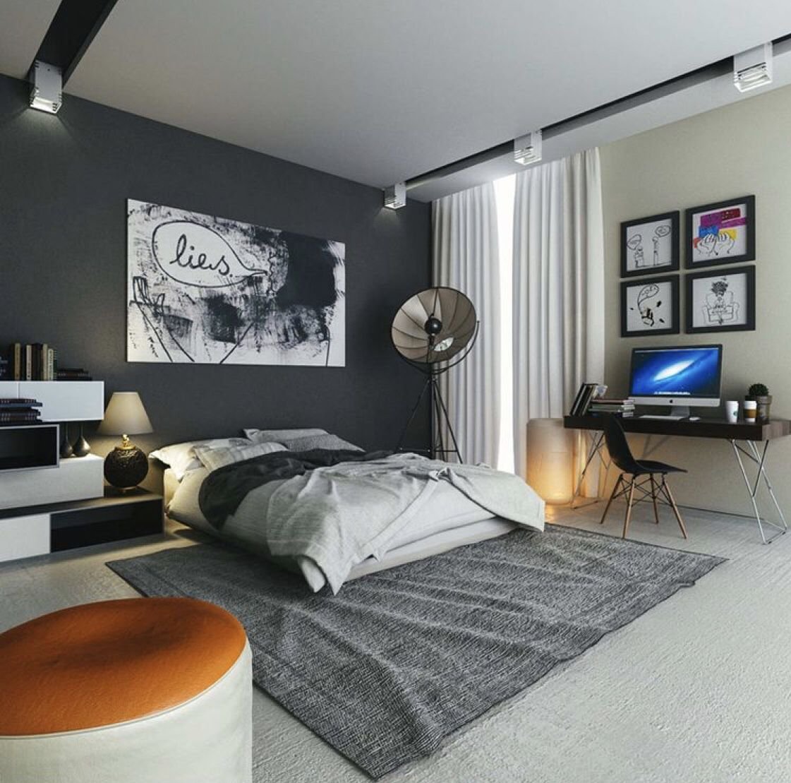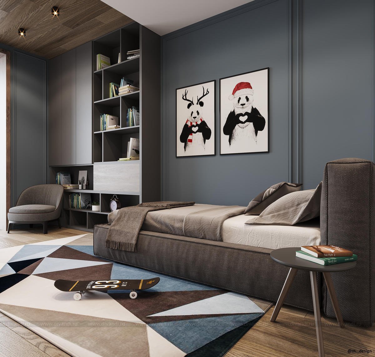 Интерьер мужской спальни в квартире со стандартной планировкой