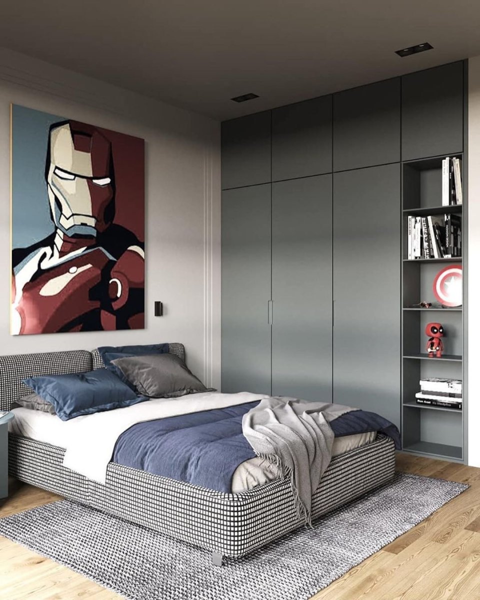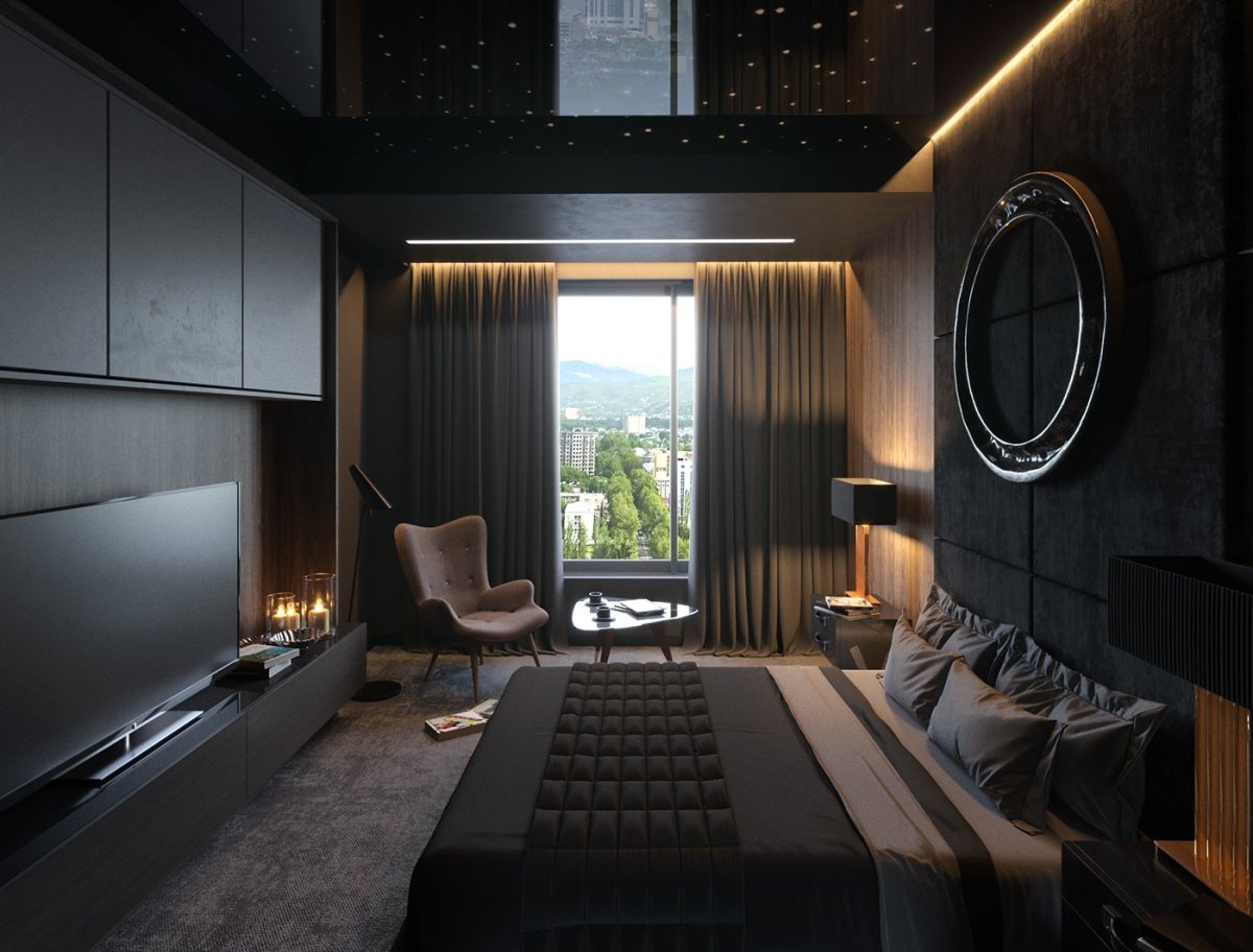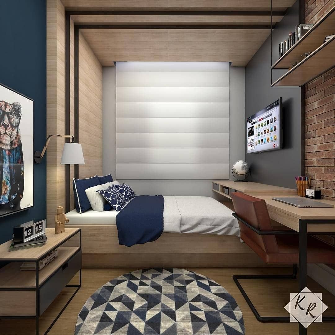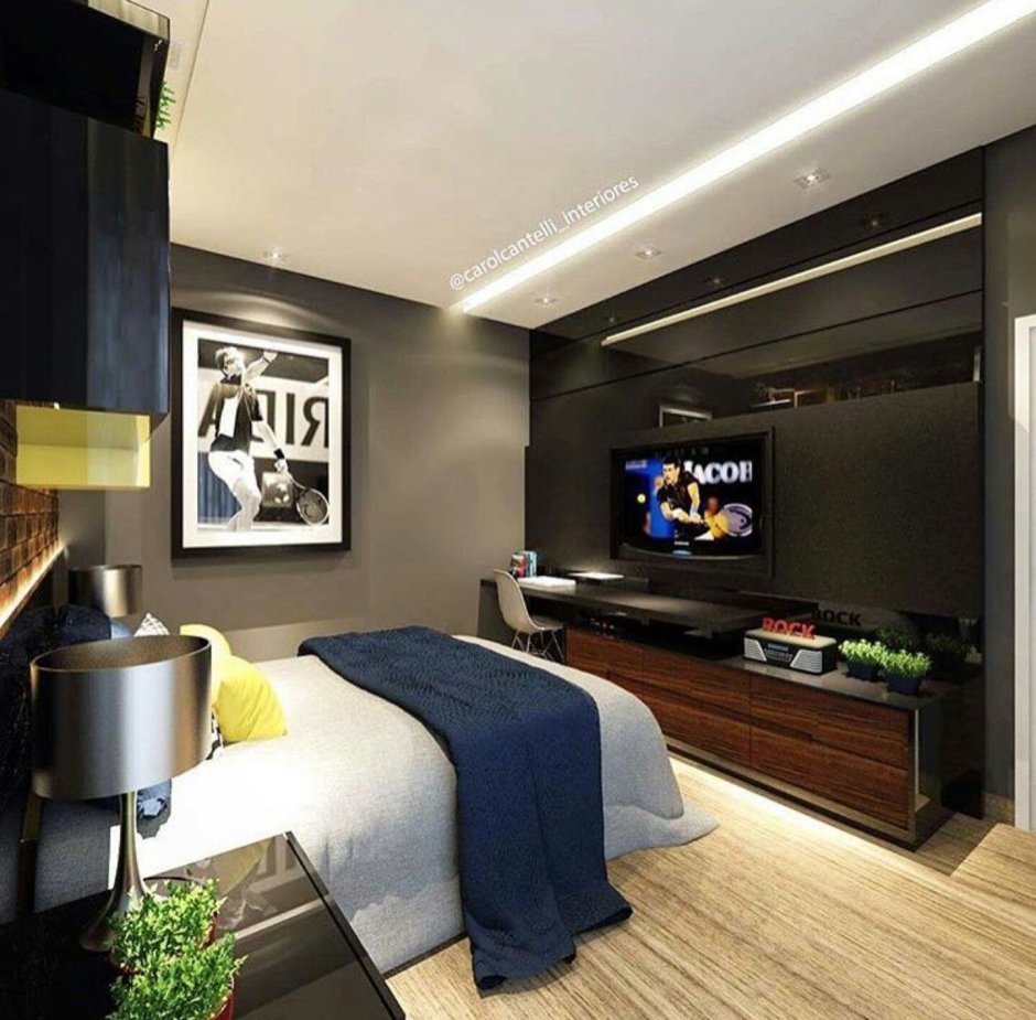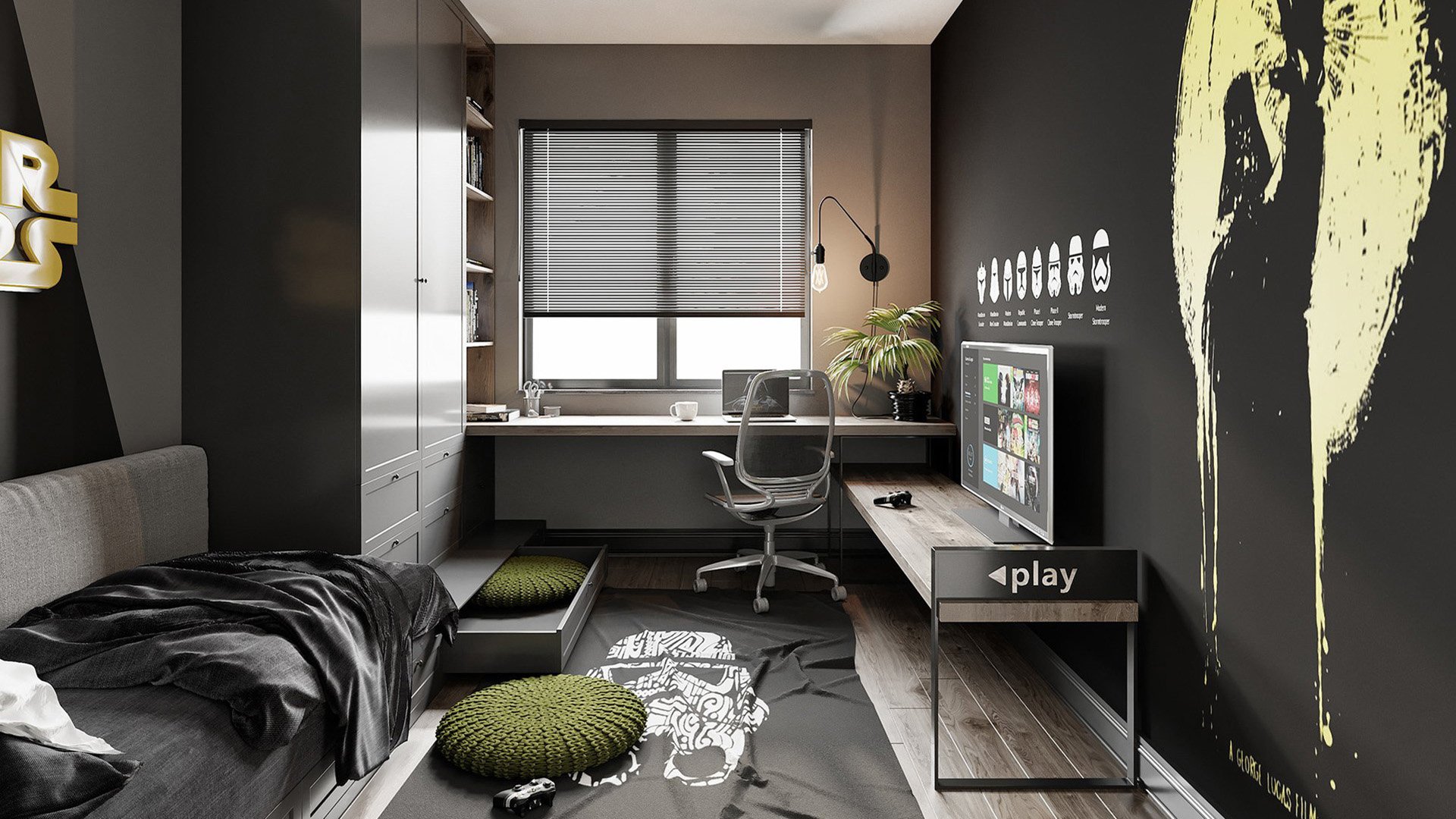 Интерьер мужской спальни в квартире со стандартной планировкой