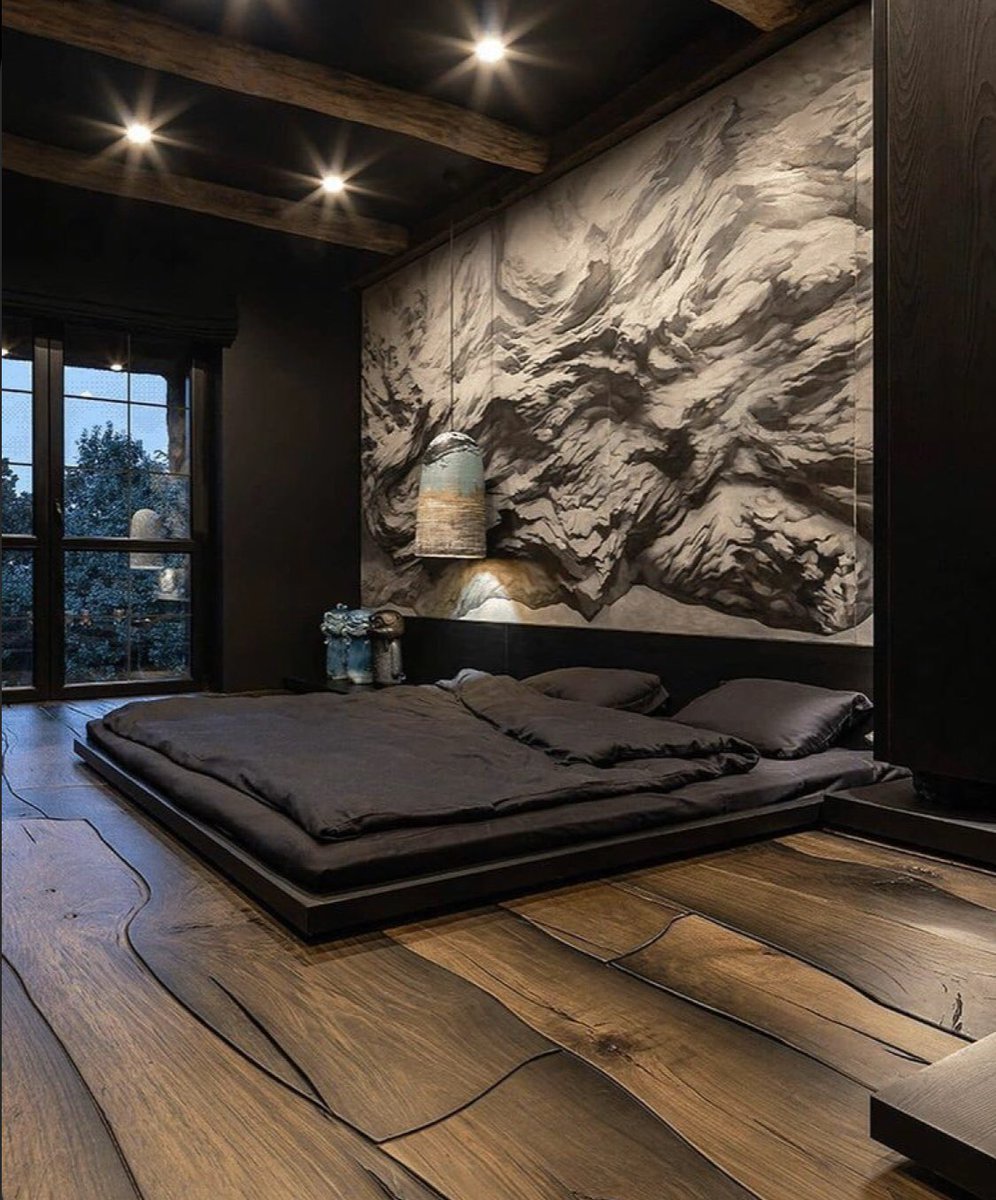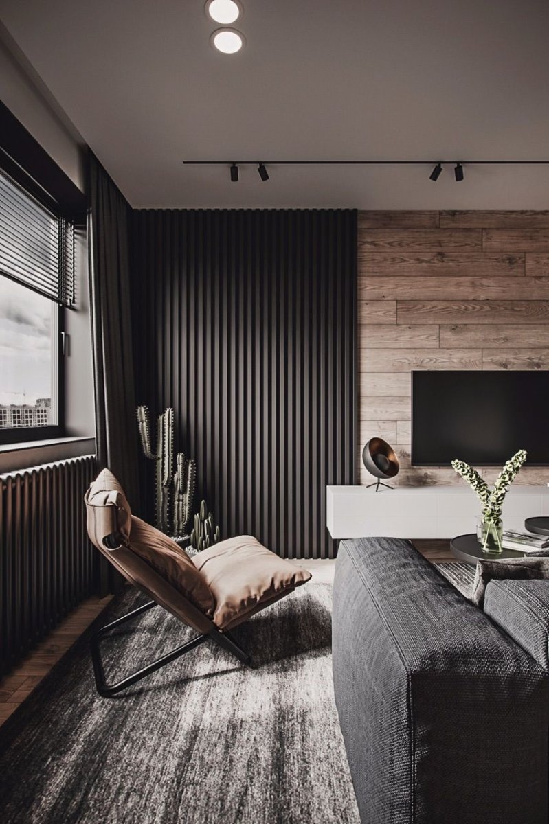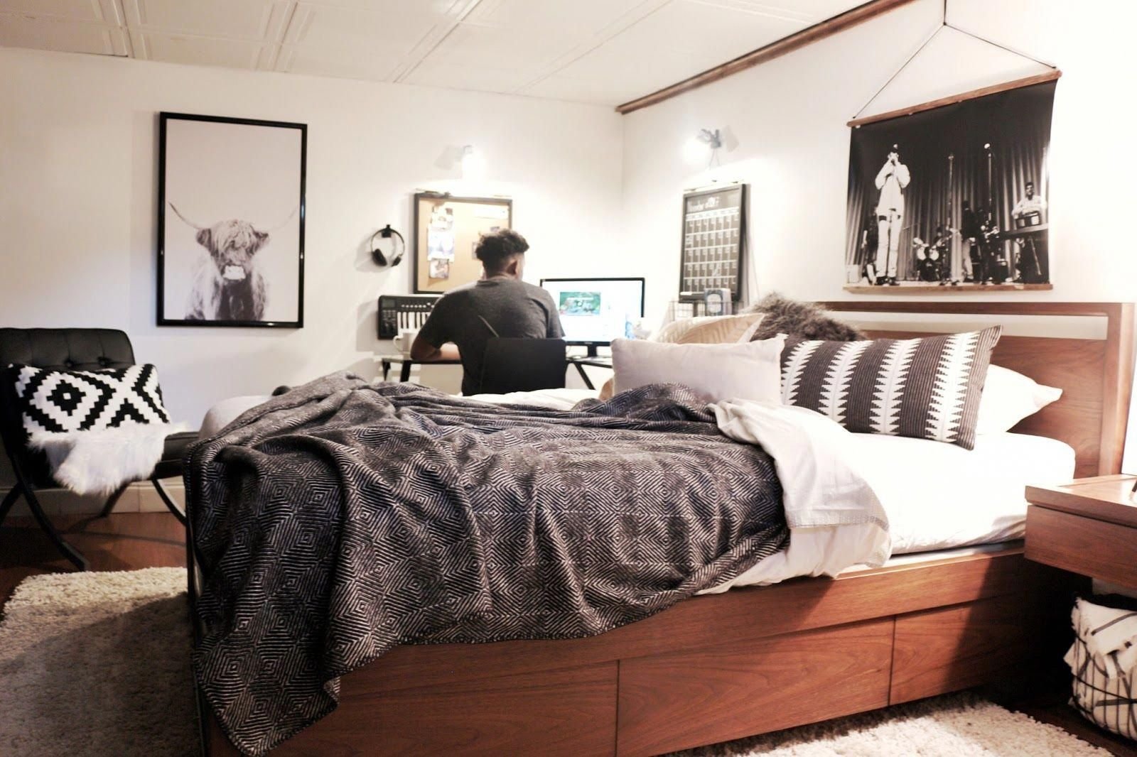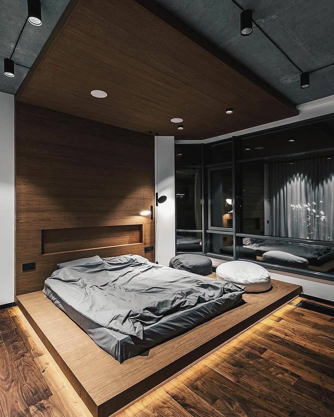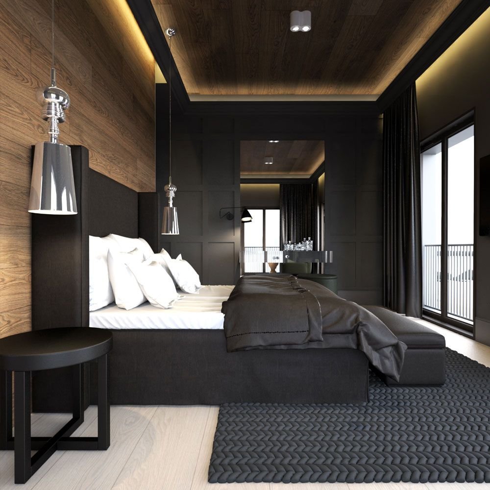 Интерьер мужской спальни в квартире со стандартной планировкой