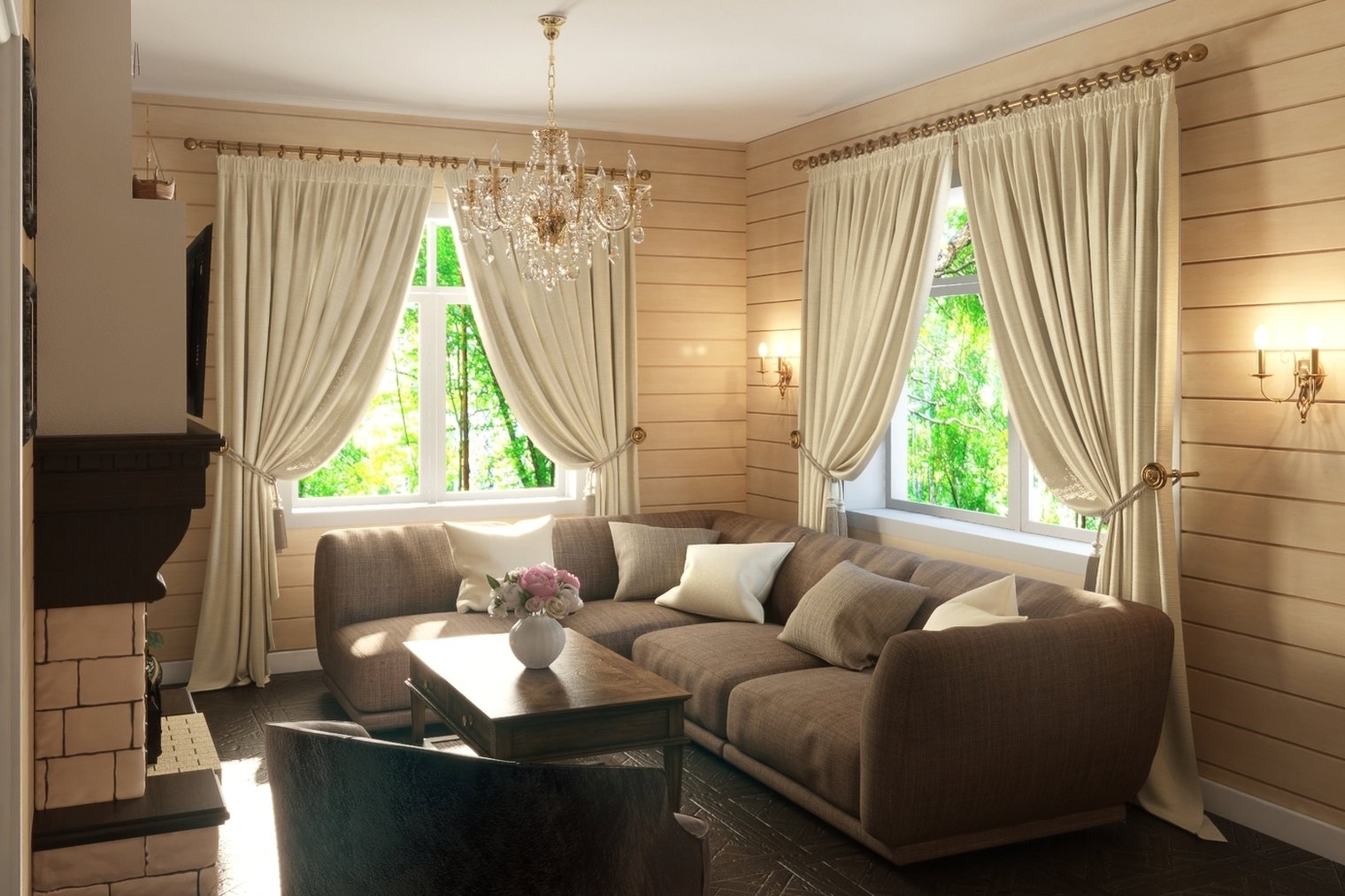 Шторы на угловое окно в гостиную