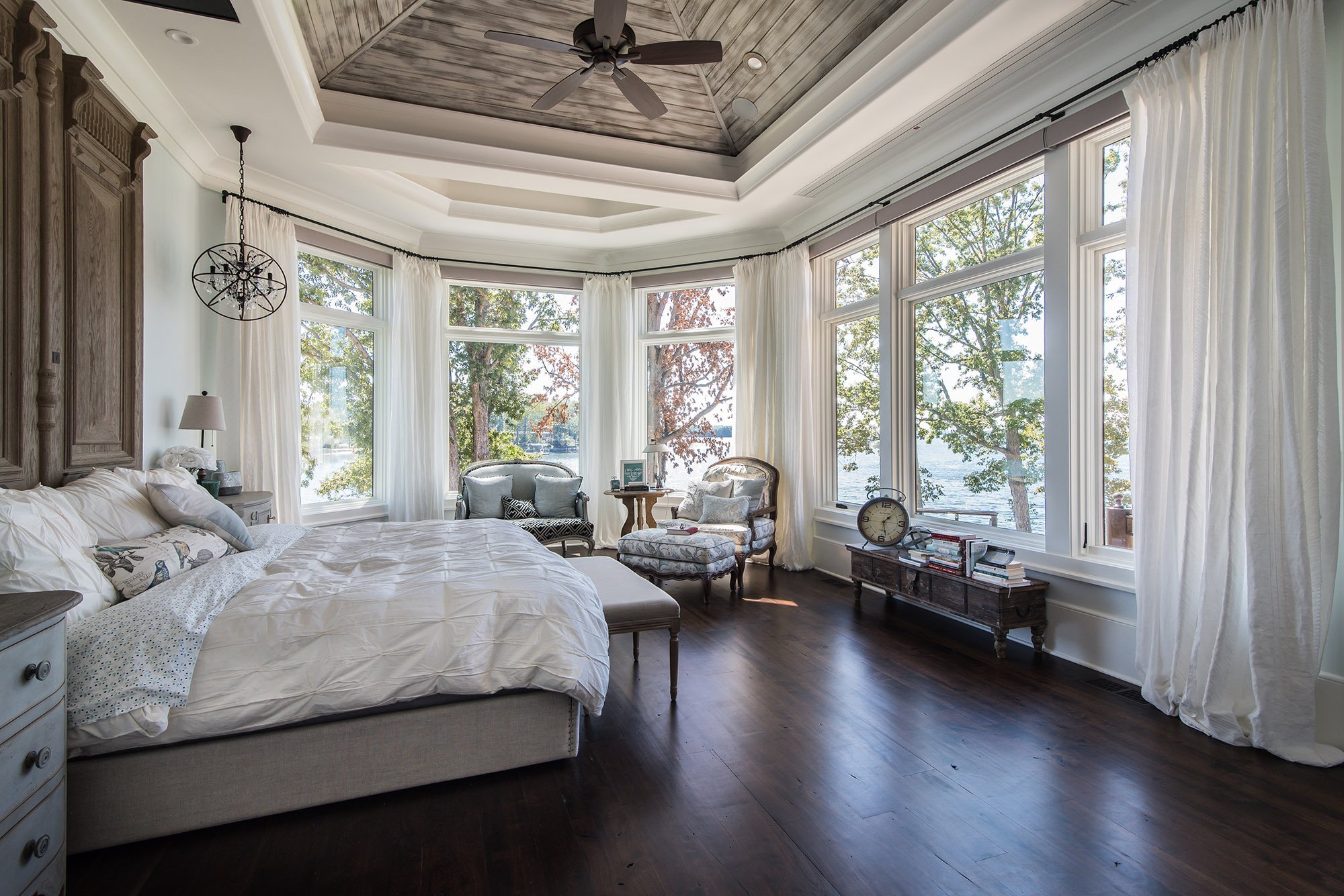 Спальня с большим окном в частном доме