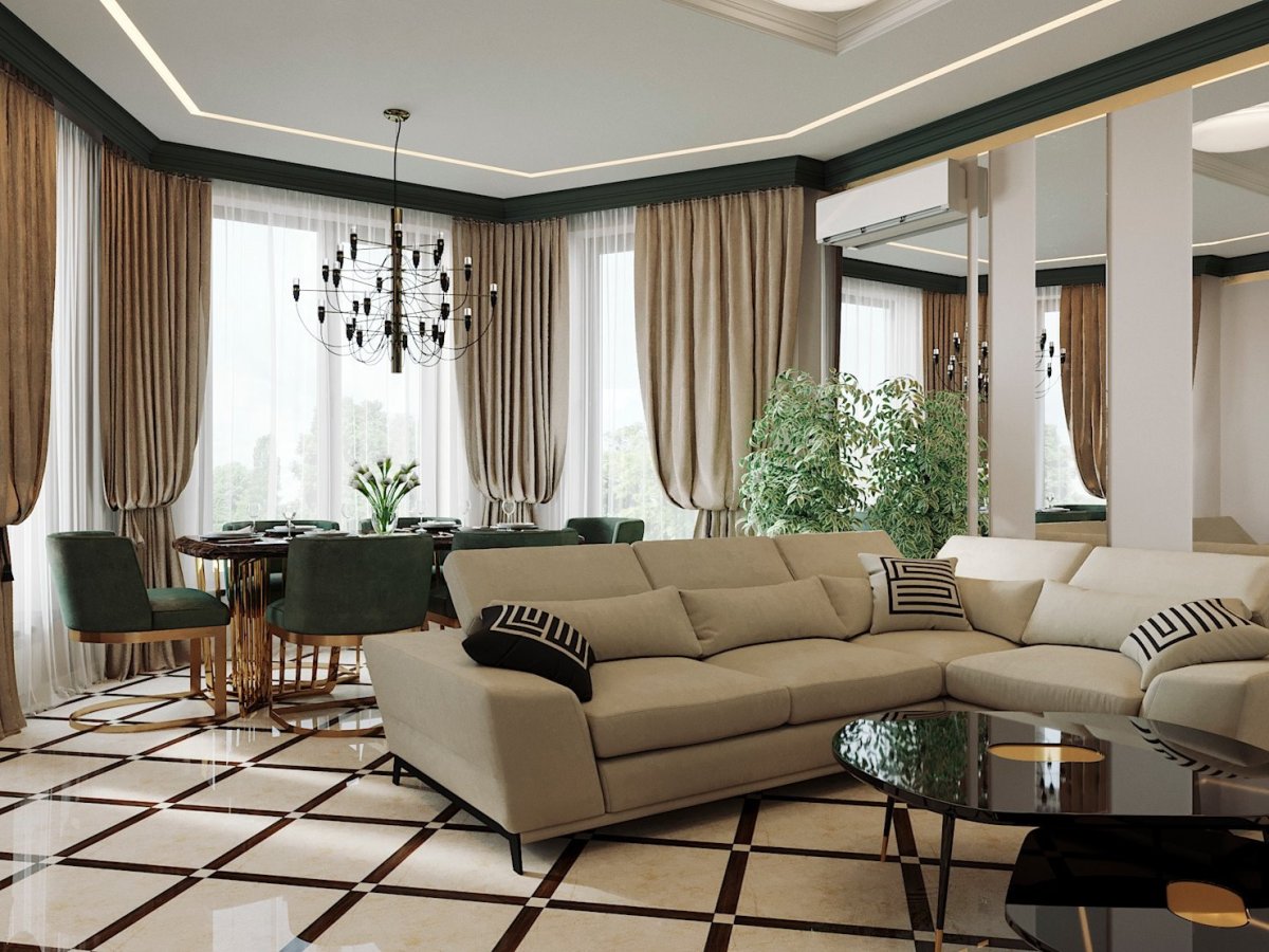 Гостиная в стиле Прованс с панорамными окнами