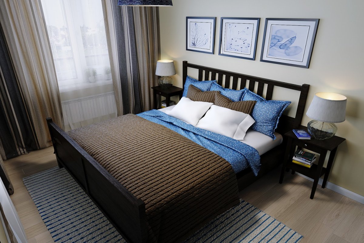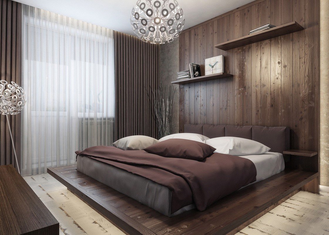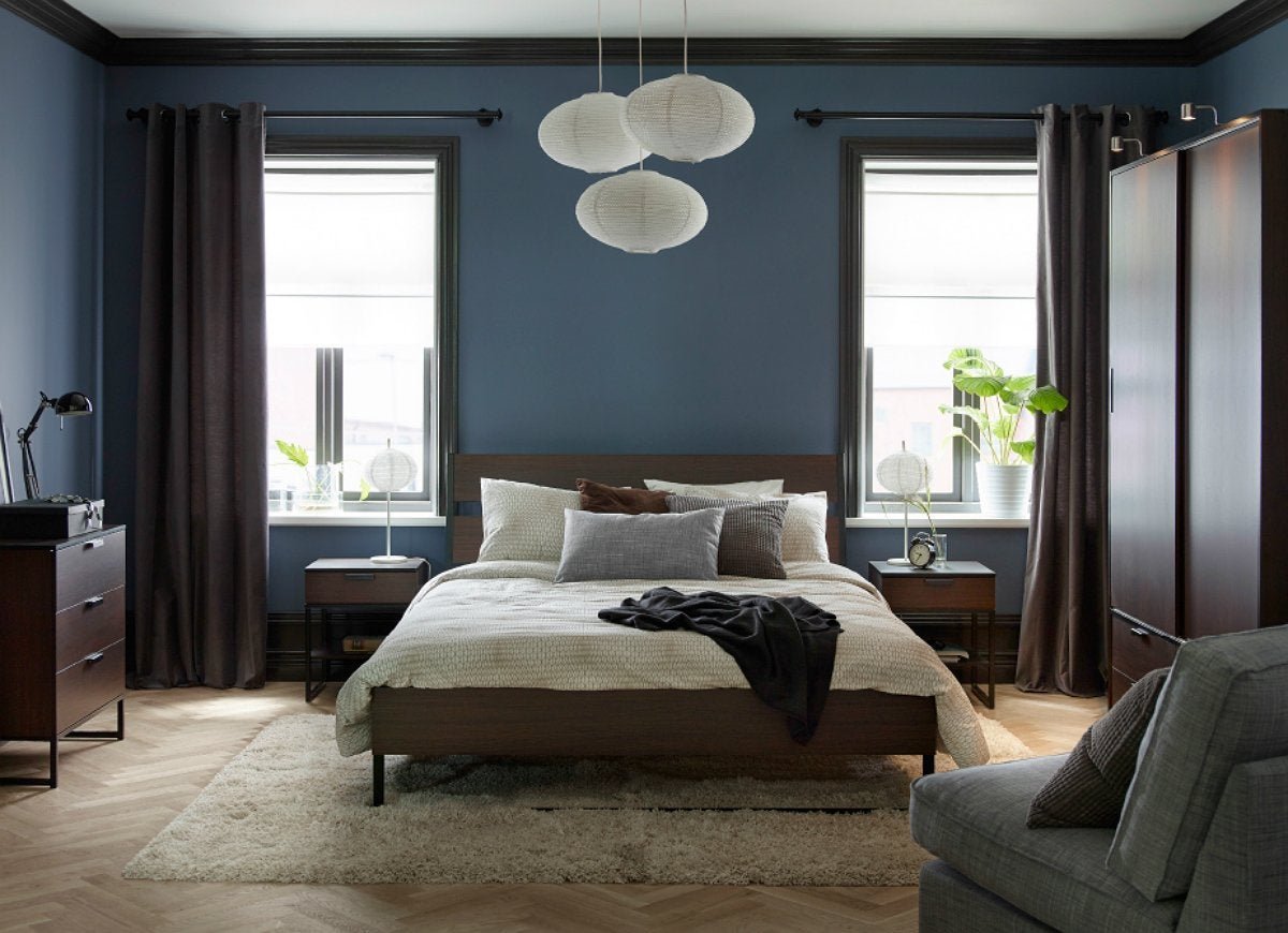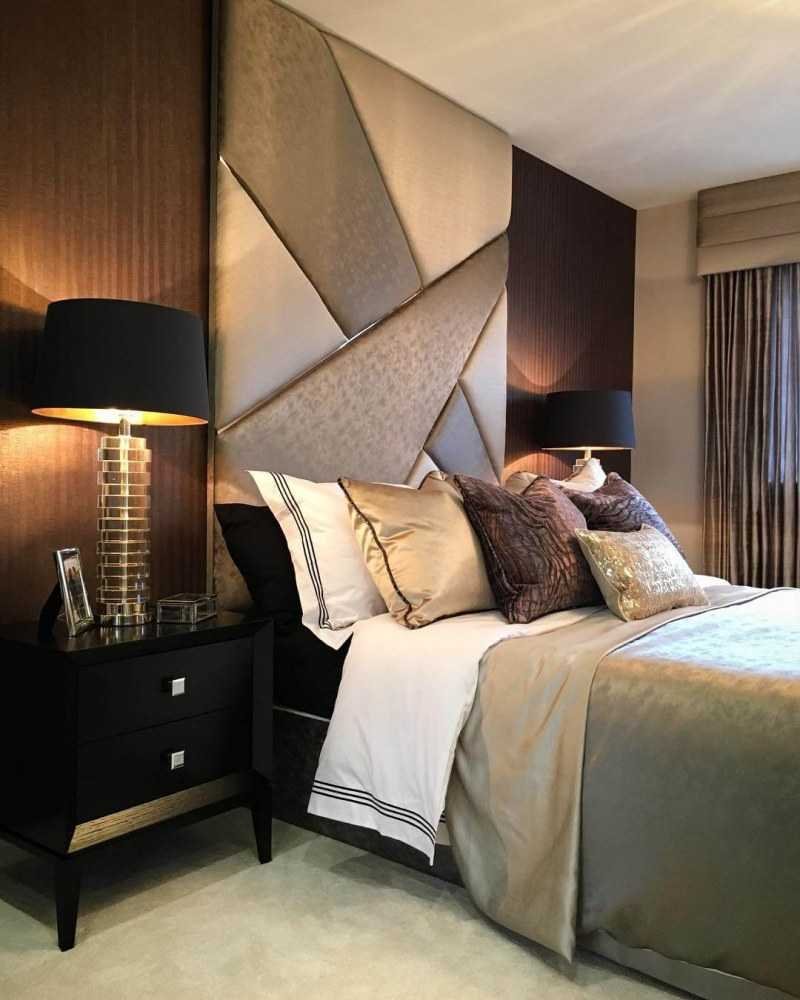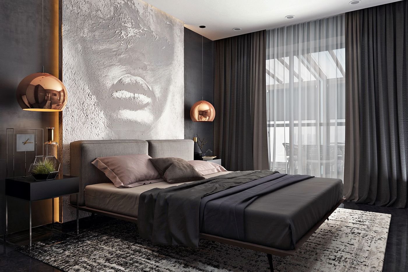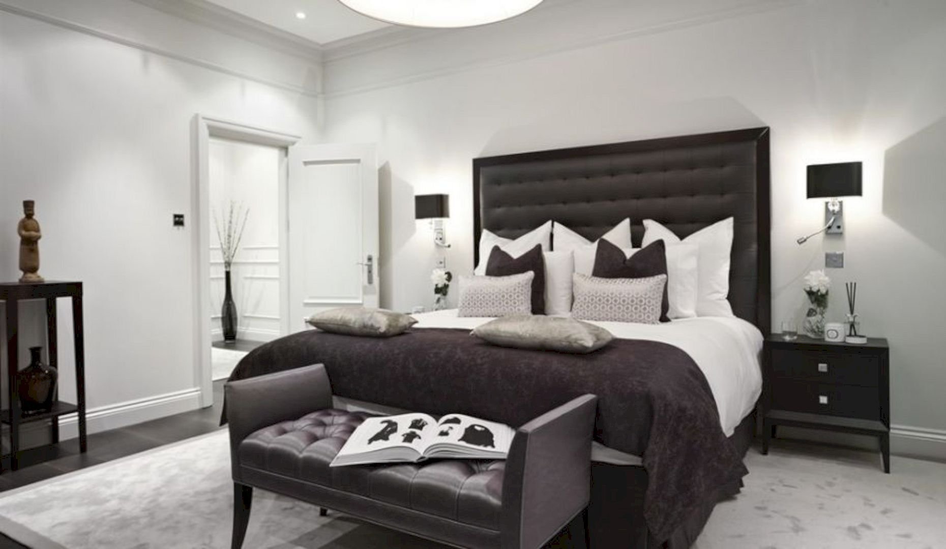 Интерьер спальни в неоклассическом стиле с темной мебелью