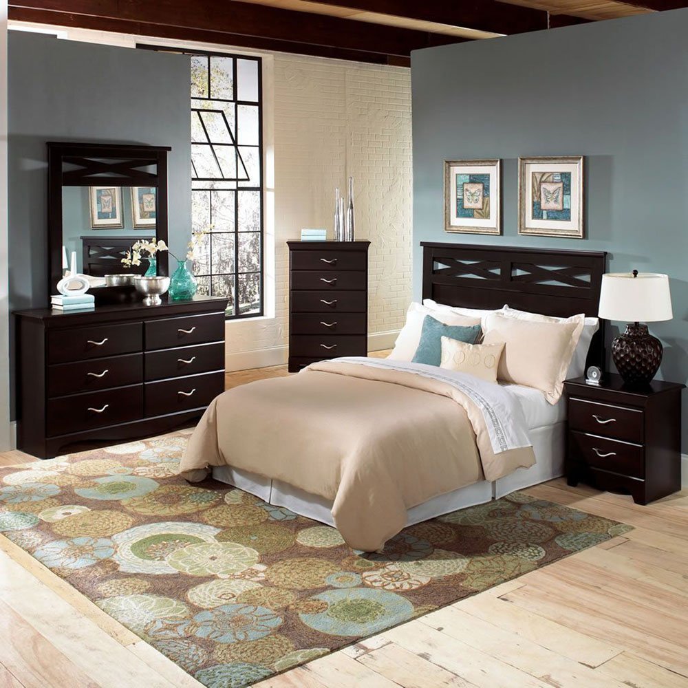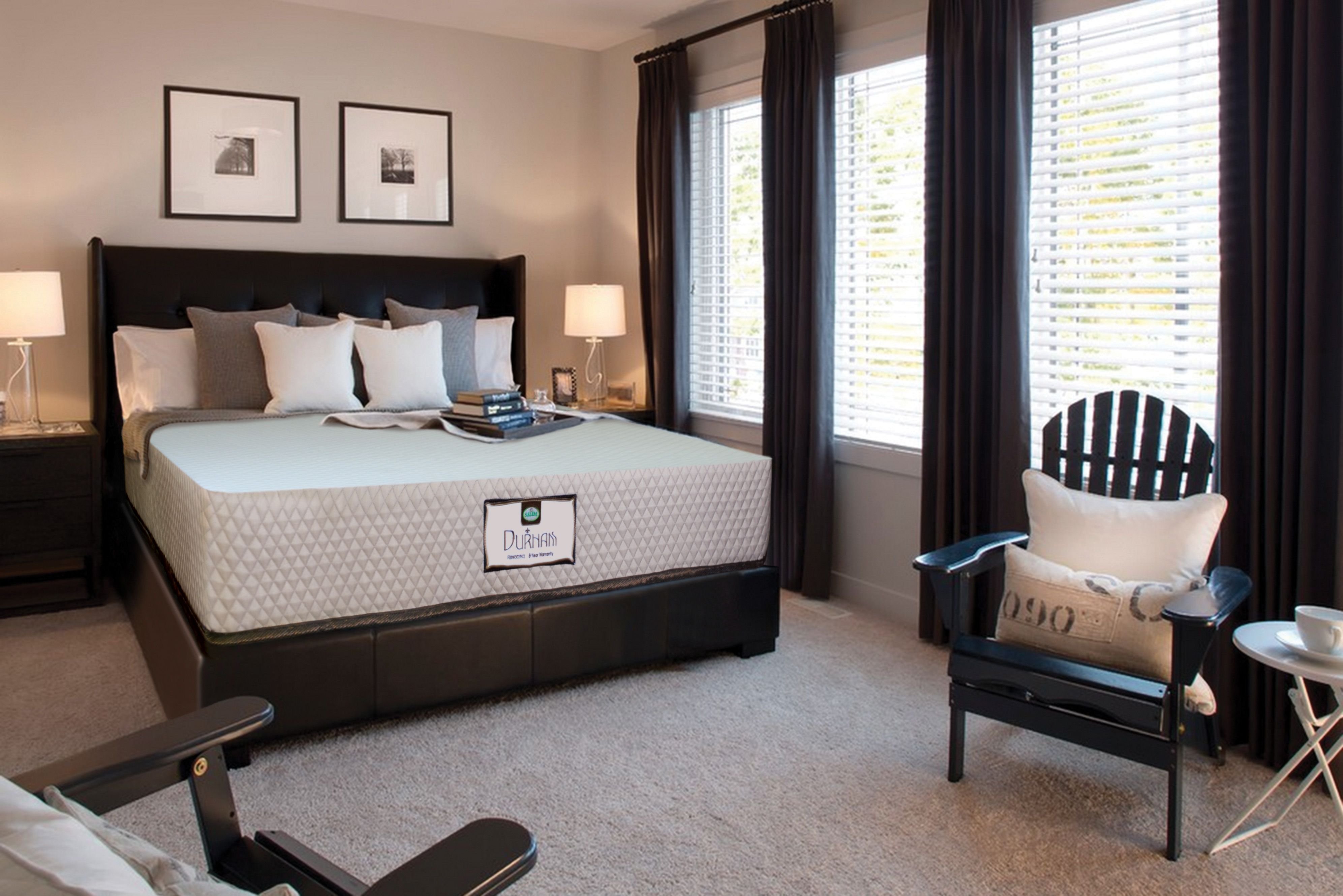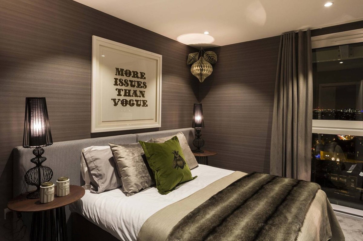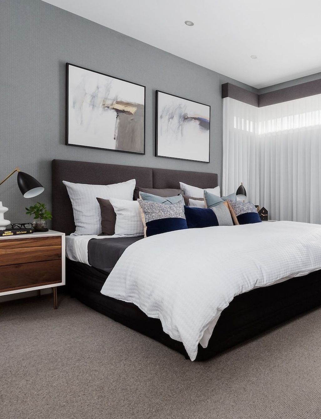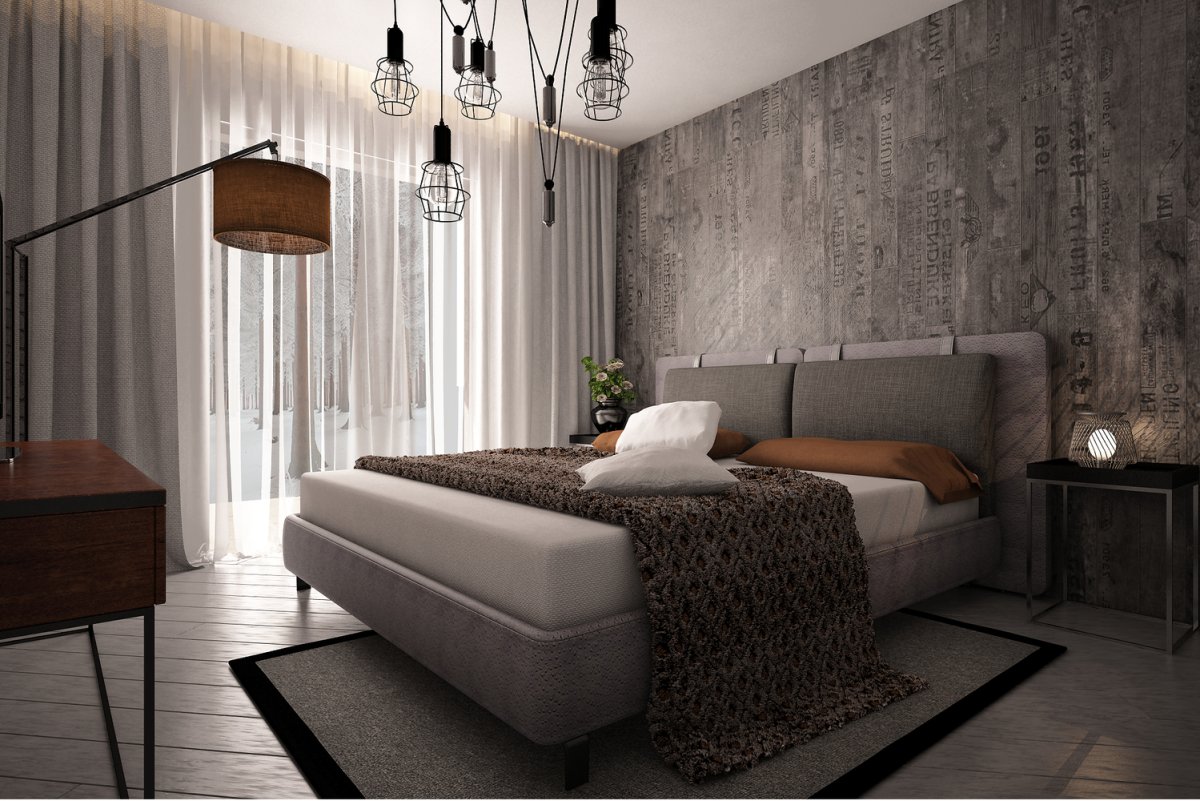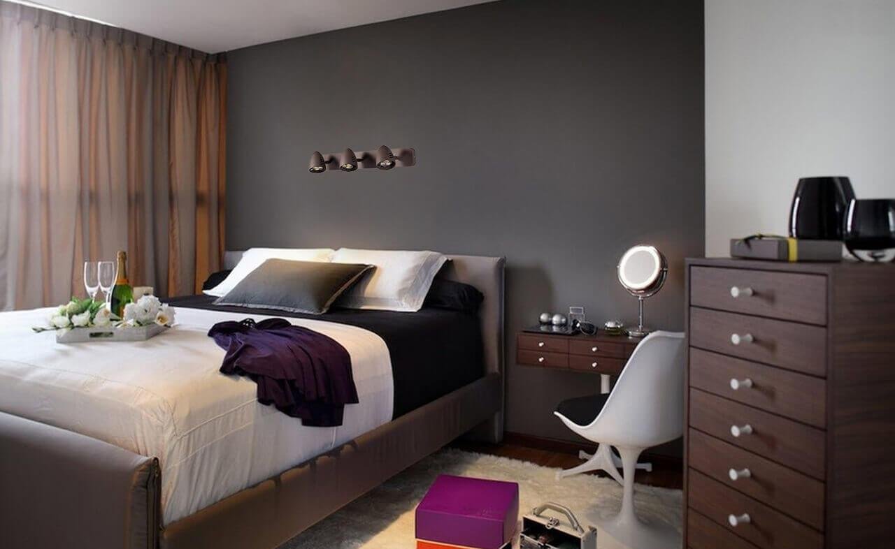 Интерьер спальни в неоклассическом стиле с темной мебелью